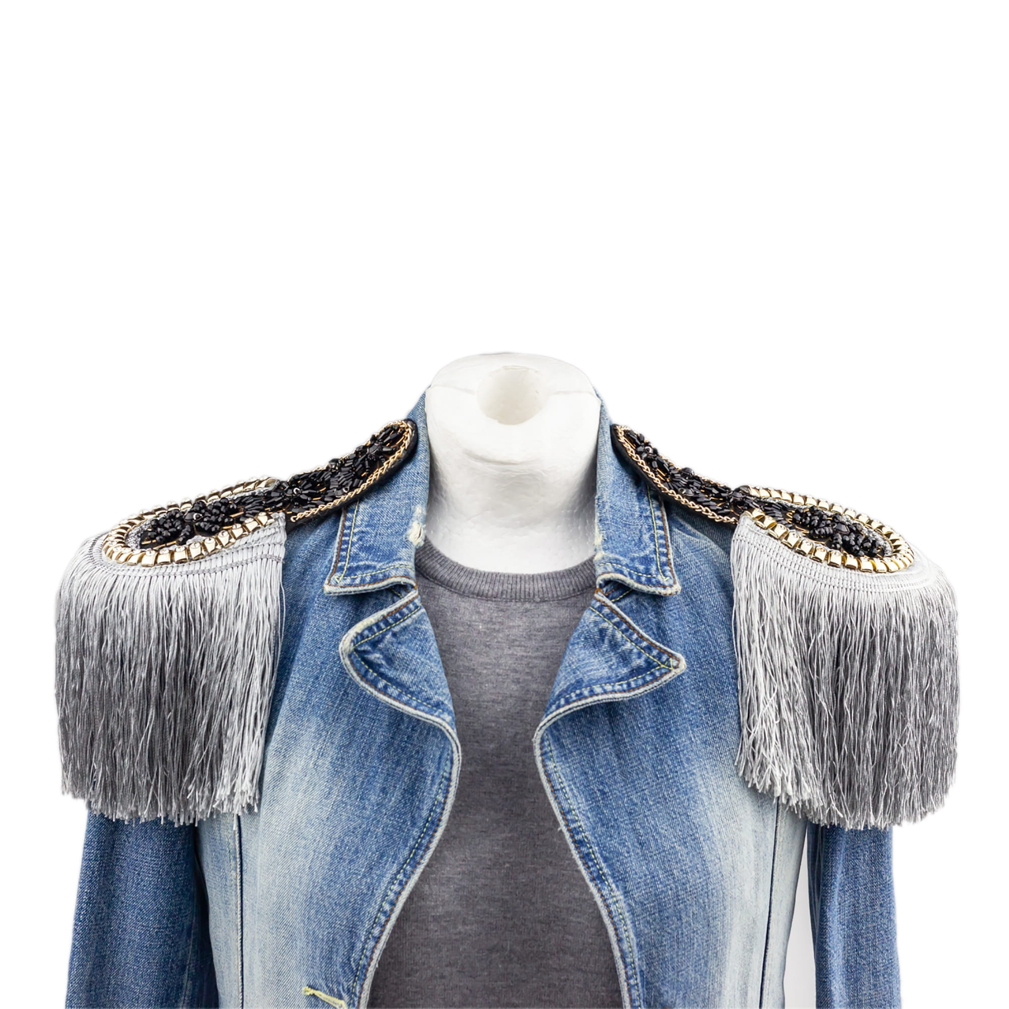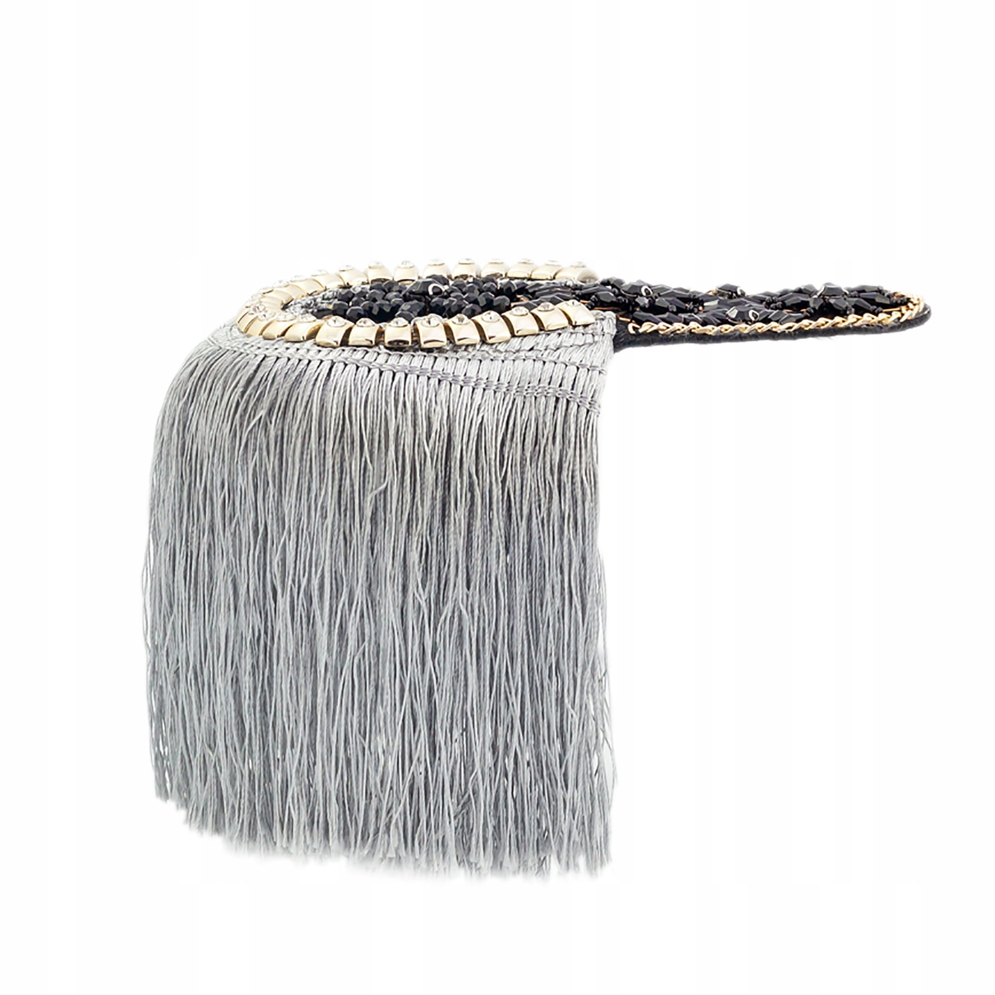 Naszywka na ramiona ozdobiona łańcuszkiem, kwiatami z cyrkoniami, zakończona szarymi sznureczkami