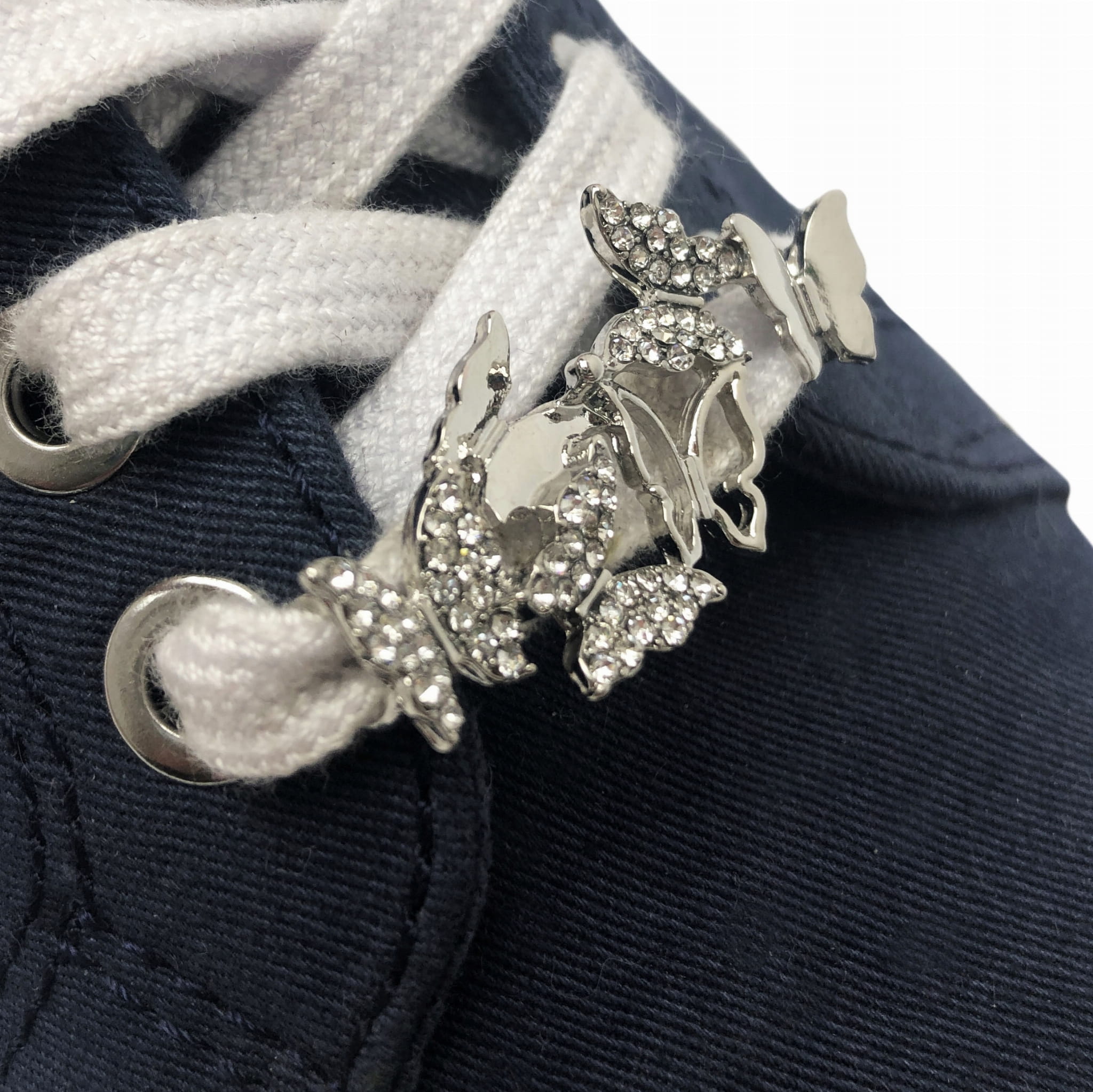 2 OZDOBY do butów Sznurówek Spinki Motyle cyrkonie