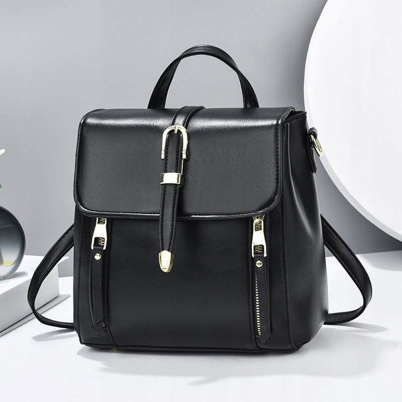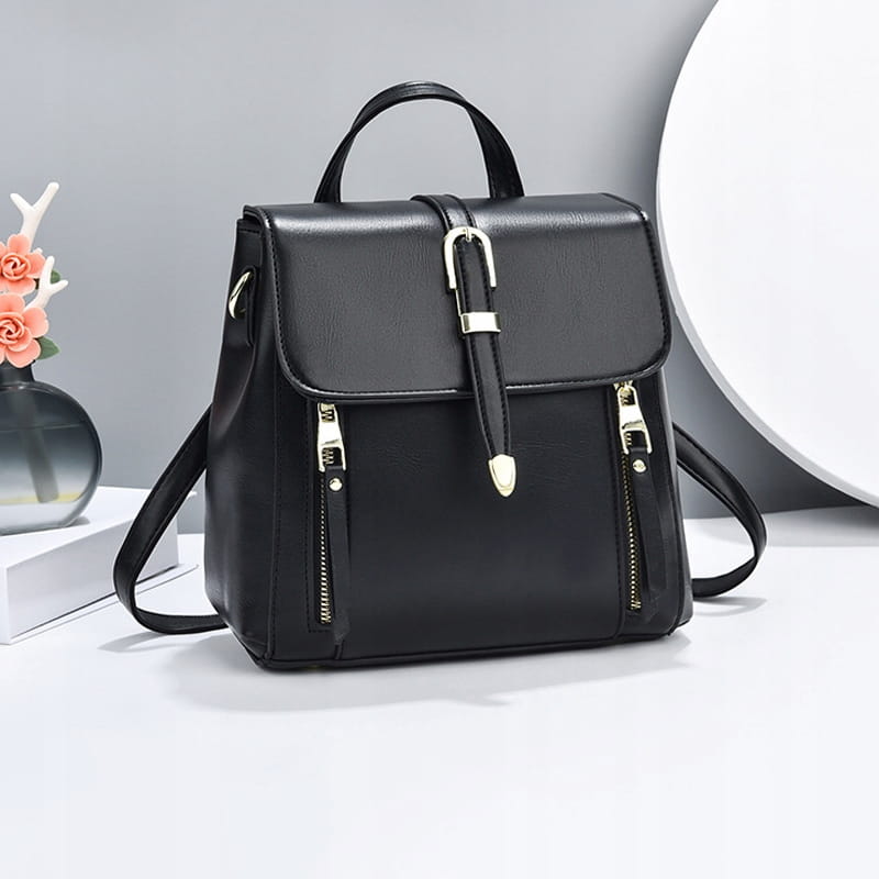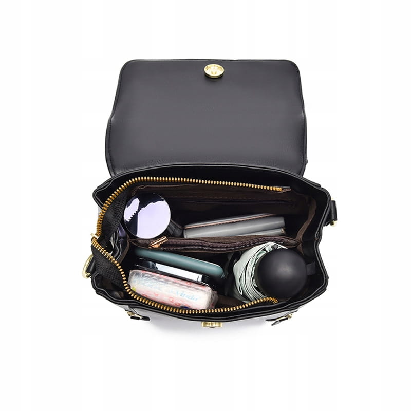 3w1 TOREBKA damska KUFEREK PLECAK skórzany czarny