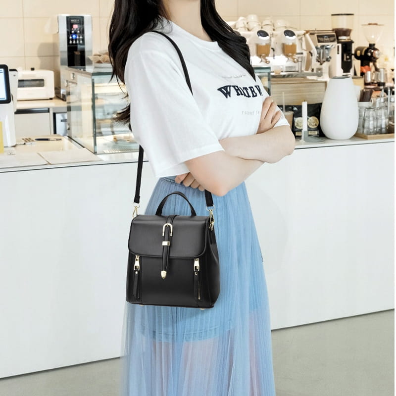Wyjątkowa torebka łącząca w sobie funkcję plecaka, torebki na ramię oraz kuferka. Wykończenie ze skóry ekologicznej sprawia, że torebka prezentuje się elegancko.
