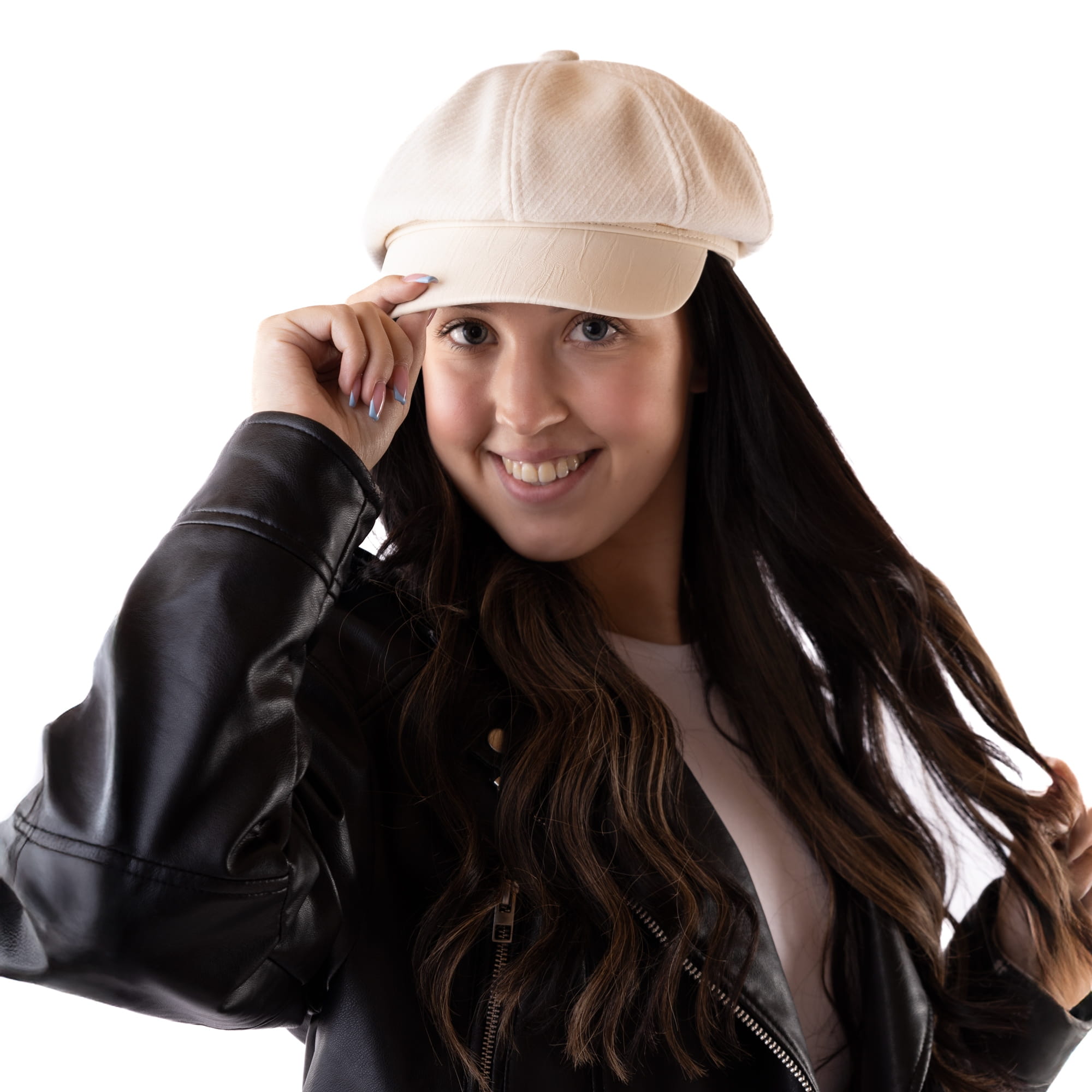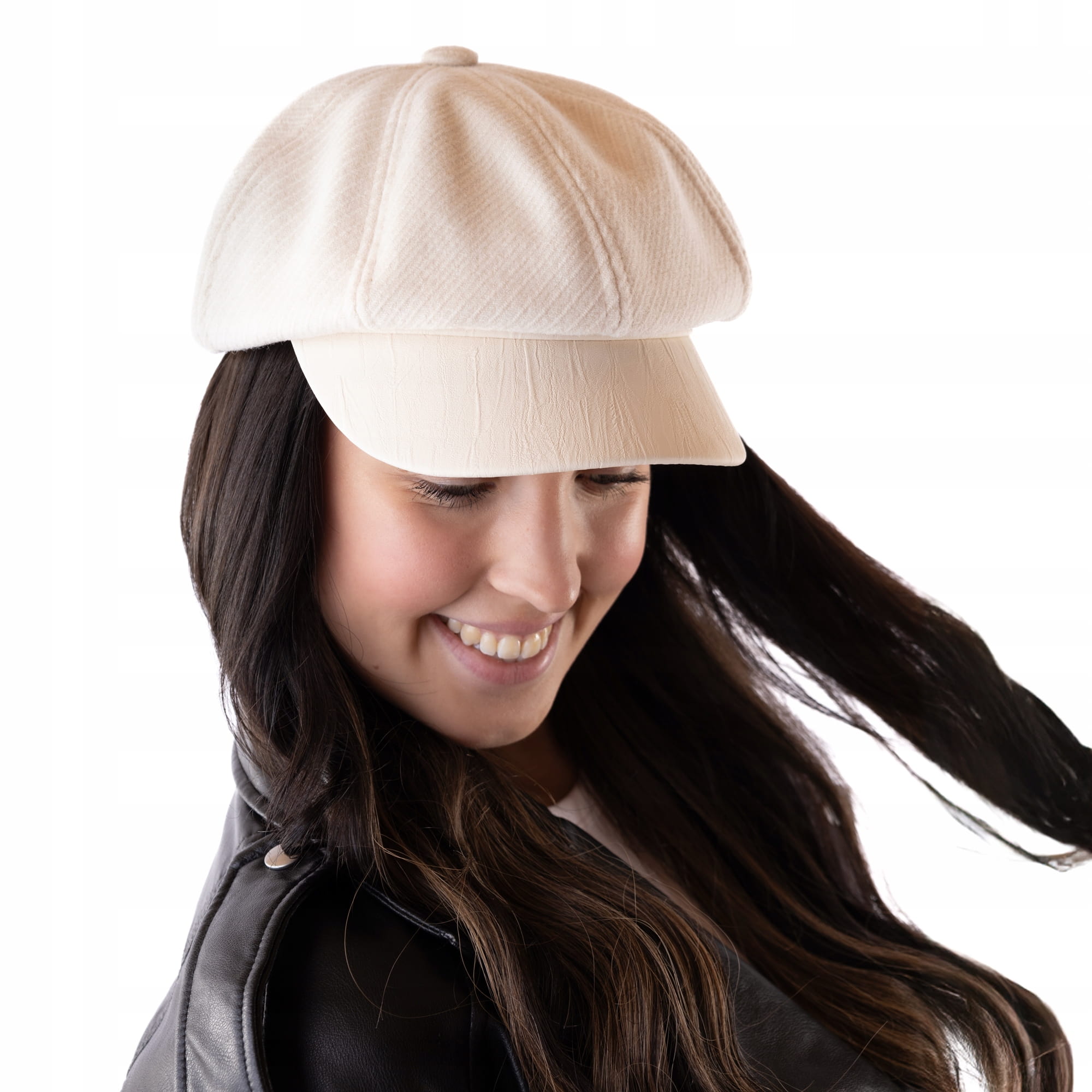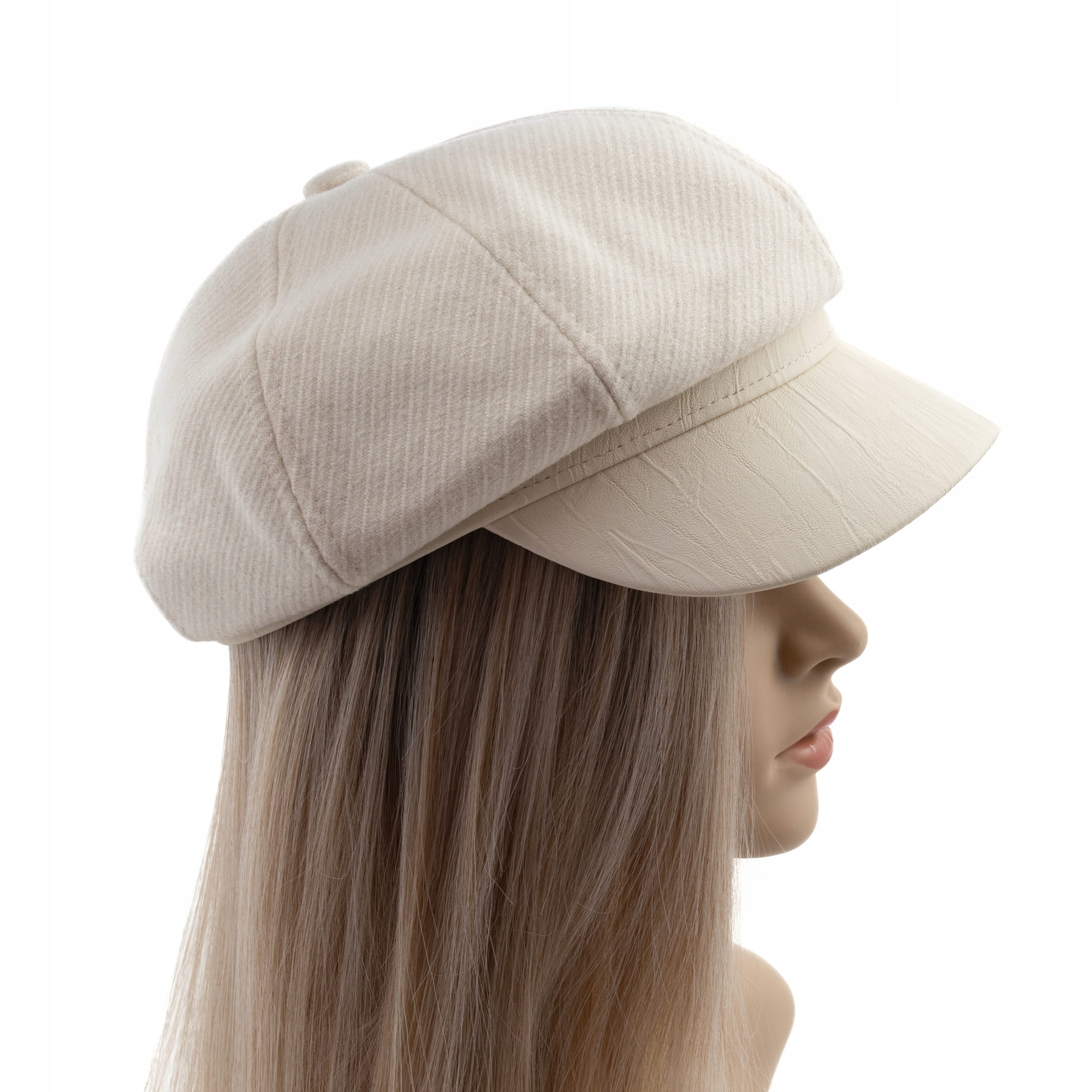 BERET Damski elegancki z daszkiem jasny Beżowy