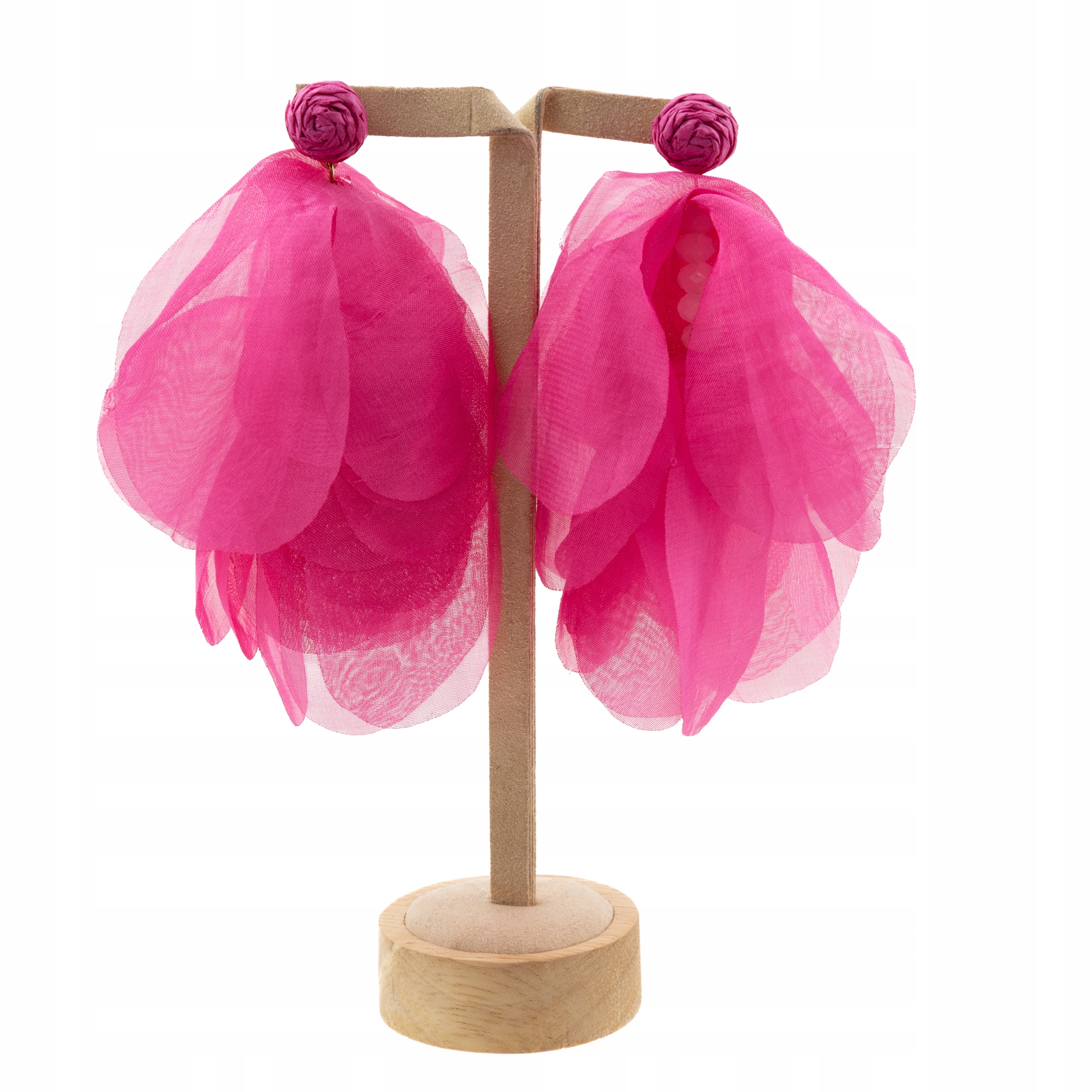 Efektowne kolczyki z materiałowymi kwiatami – Fuksja – Little Angel