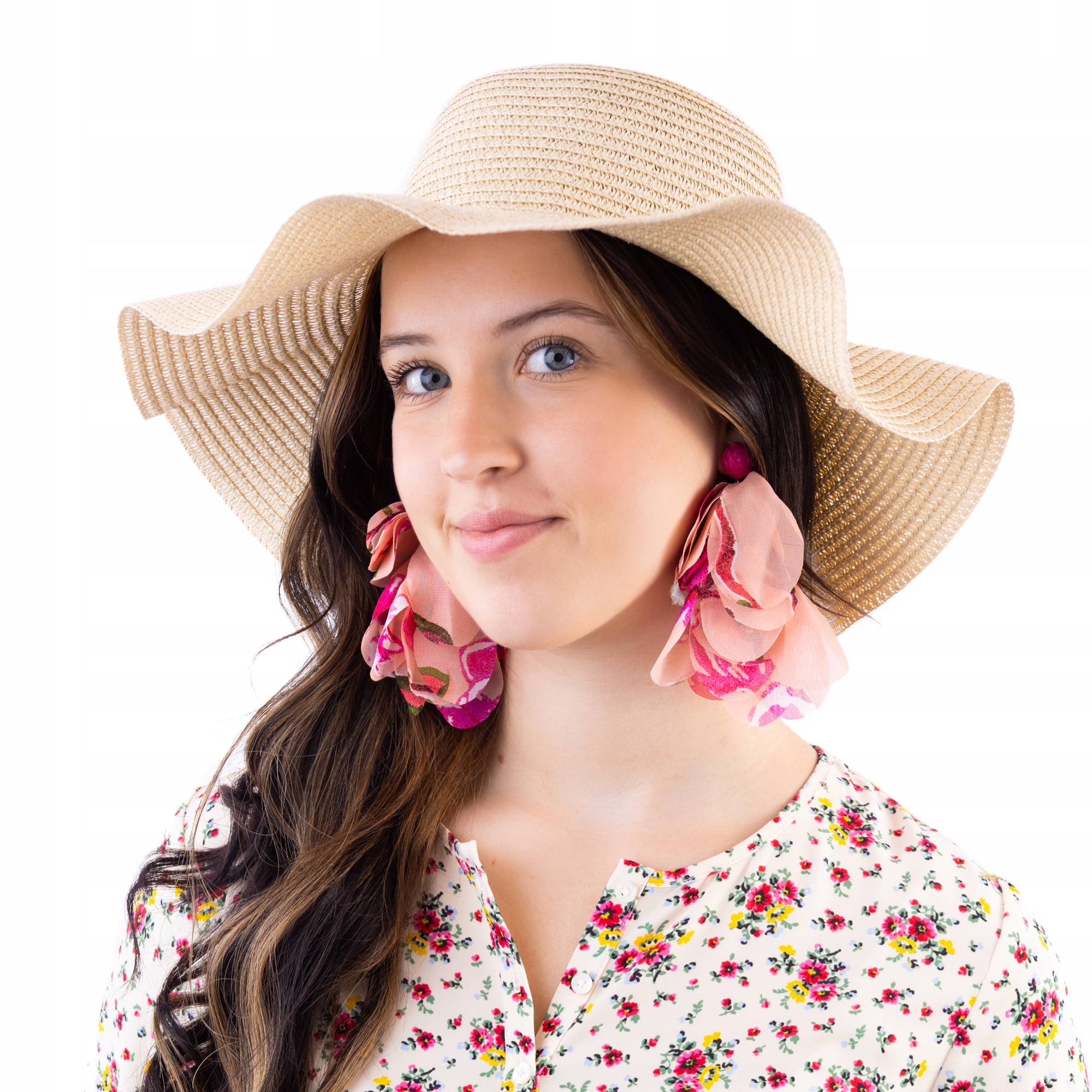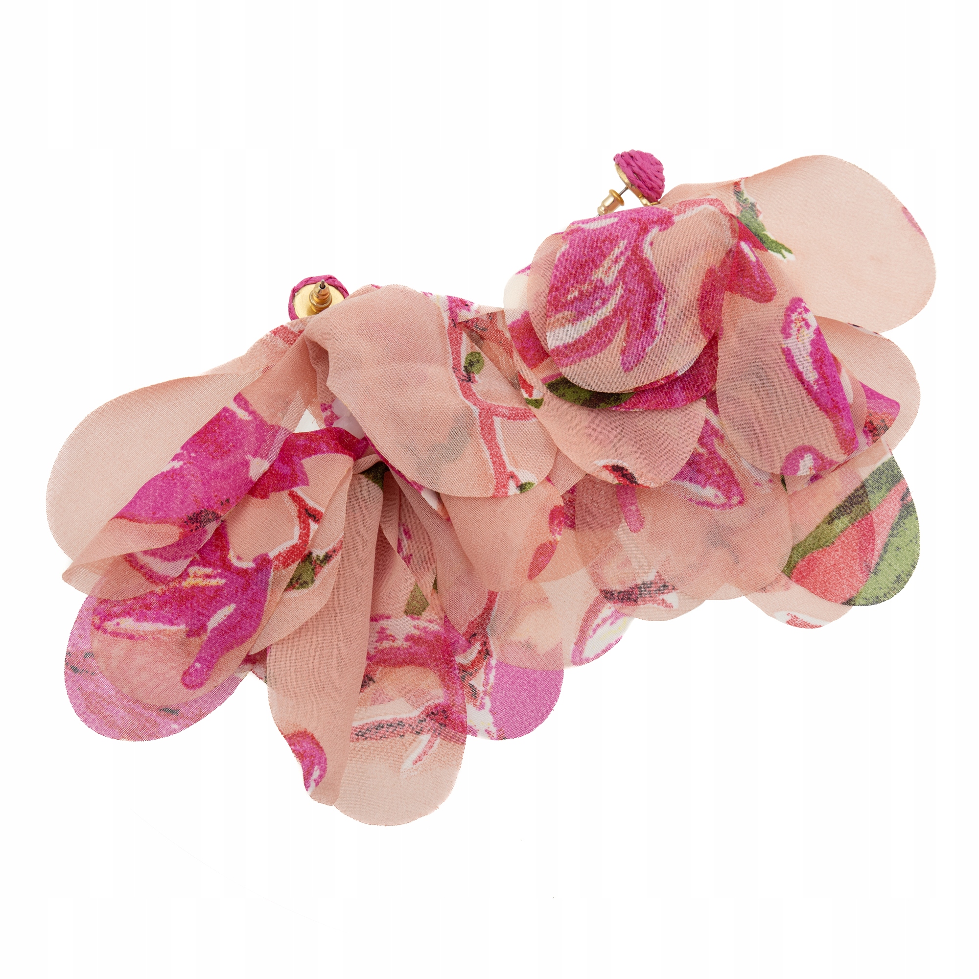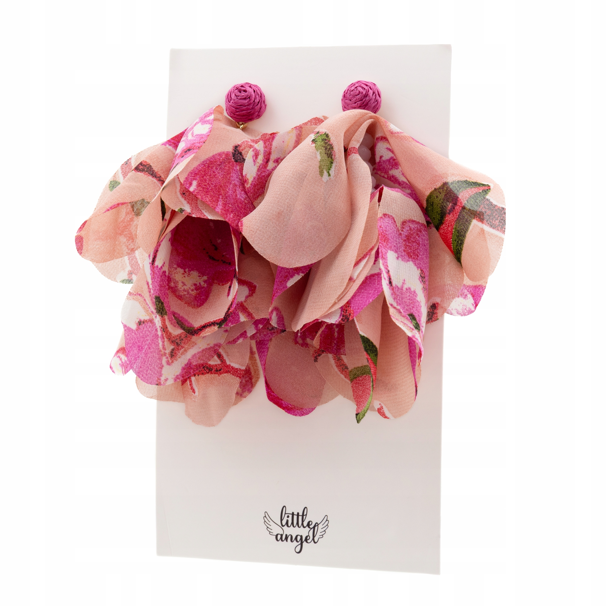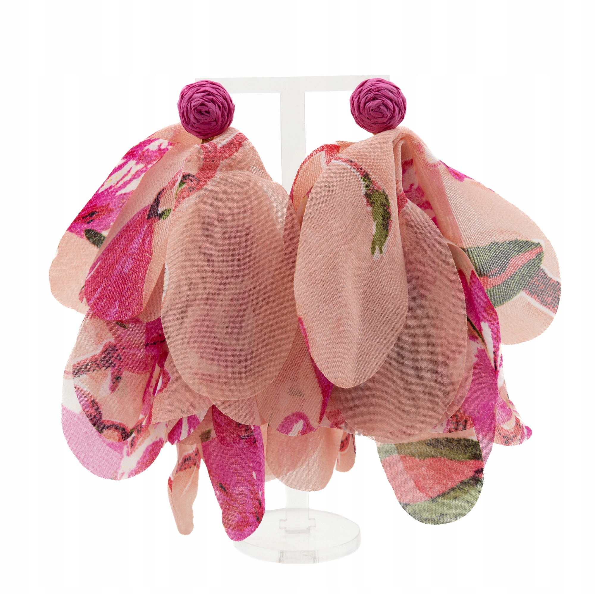 BOHO Kolczyki Kwiatowe materiałowe wiszące długie Romantyczne Różowe