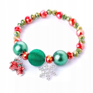 BRANSOLETKA świąteczna Śnieżynka Koraliki Bombki