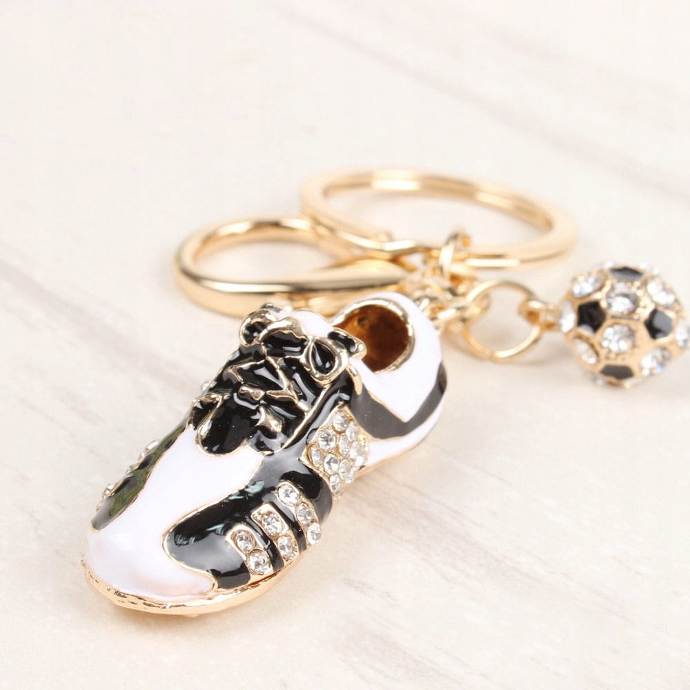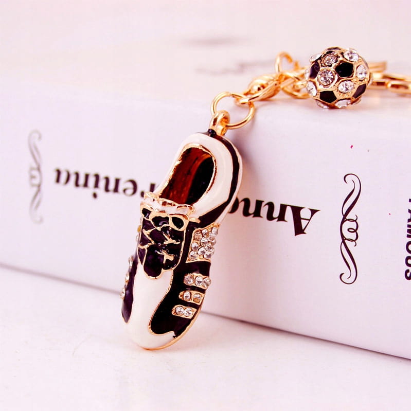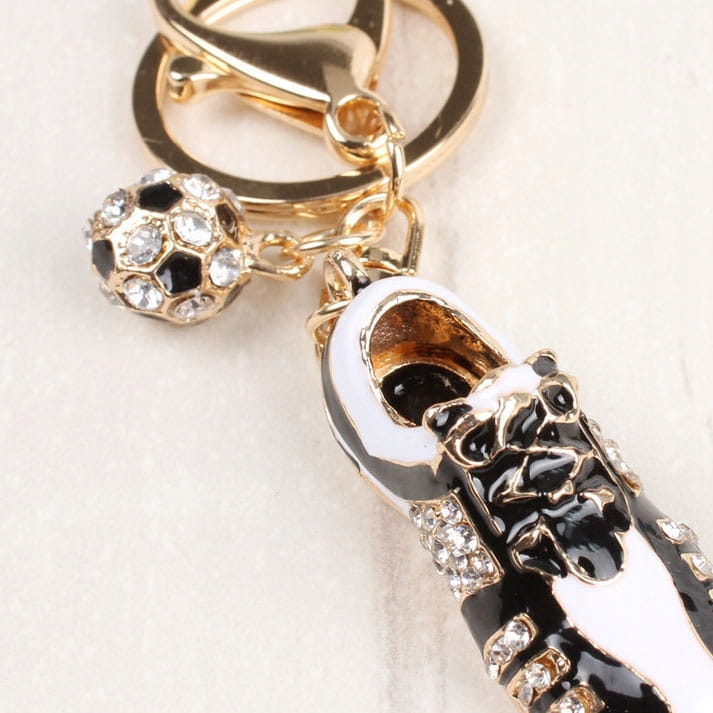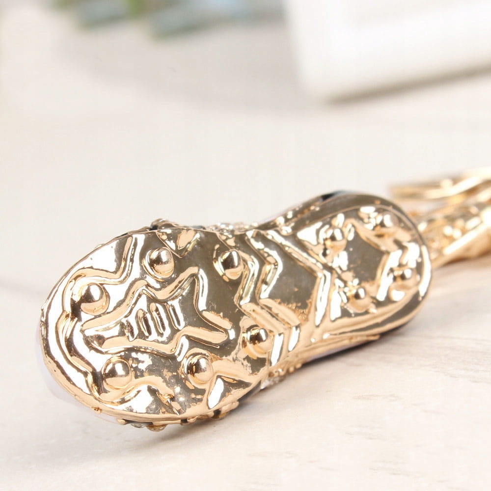 Piękny, złoty breloczek z motywem buta piłkarskiego i piłki