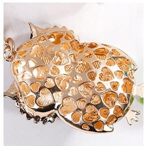 Bardzo estetyczny złoty tył breloczka w motywem kwiatuszków.