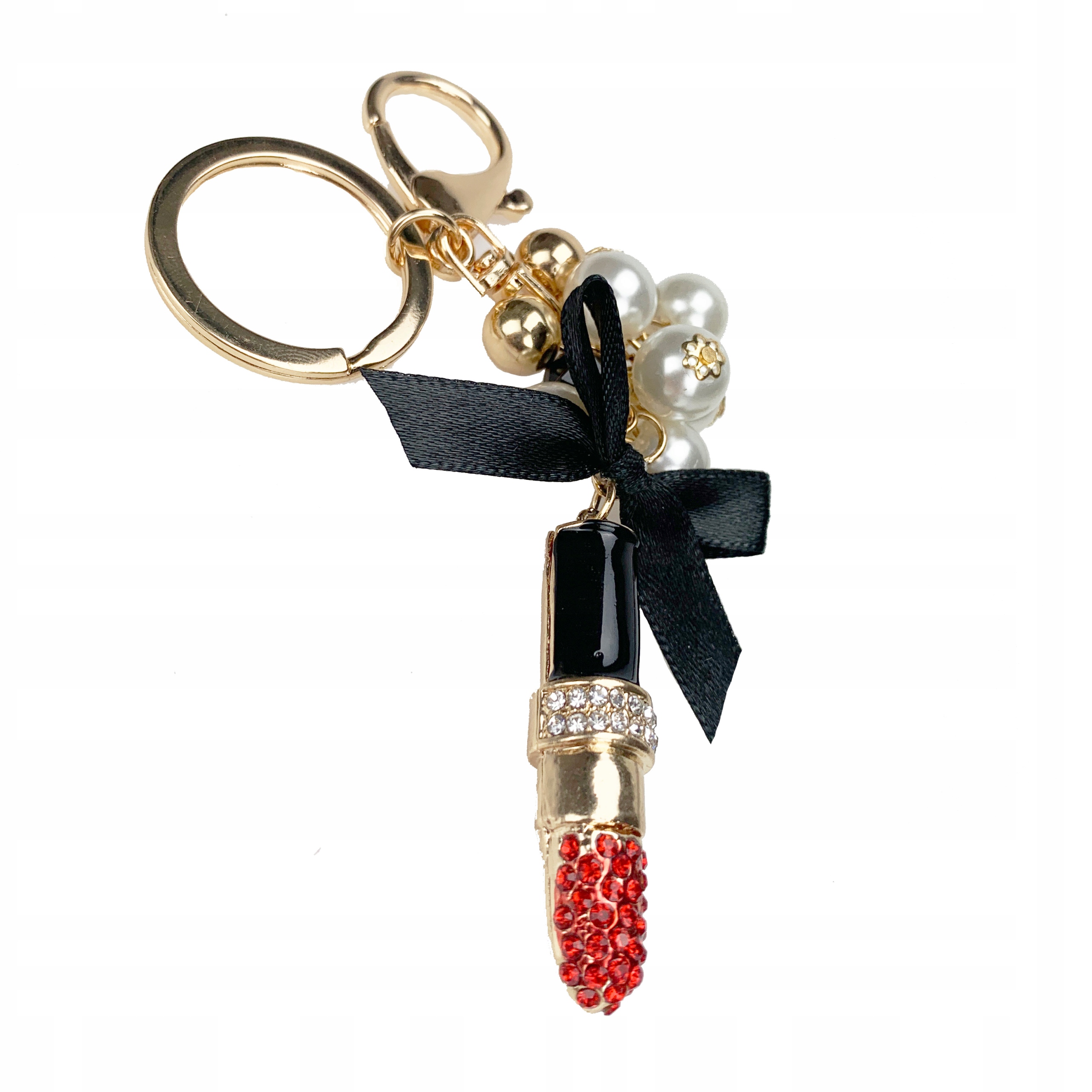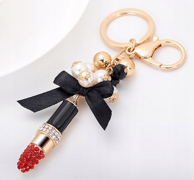 BRELOCZEK Szminka Cyrkonie Brelok do kluczy Złoty