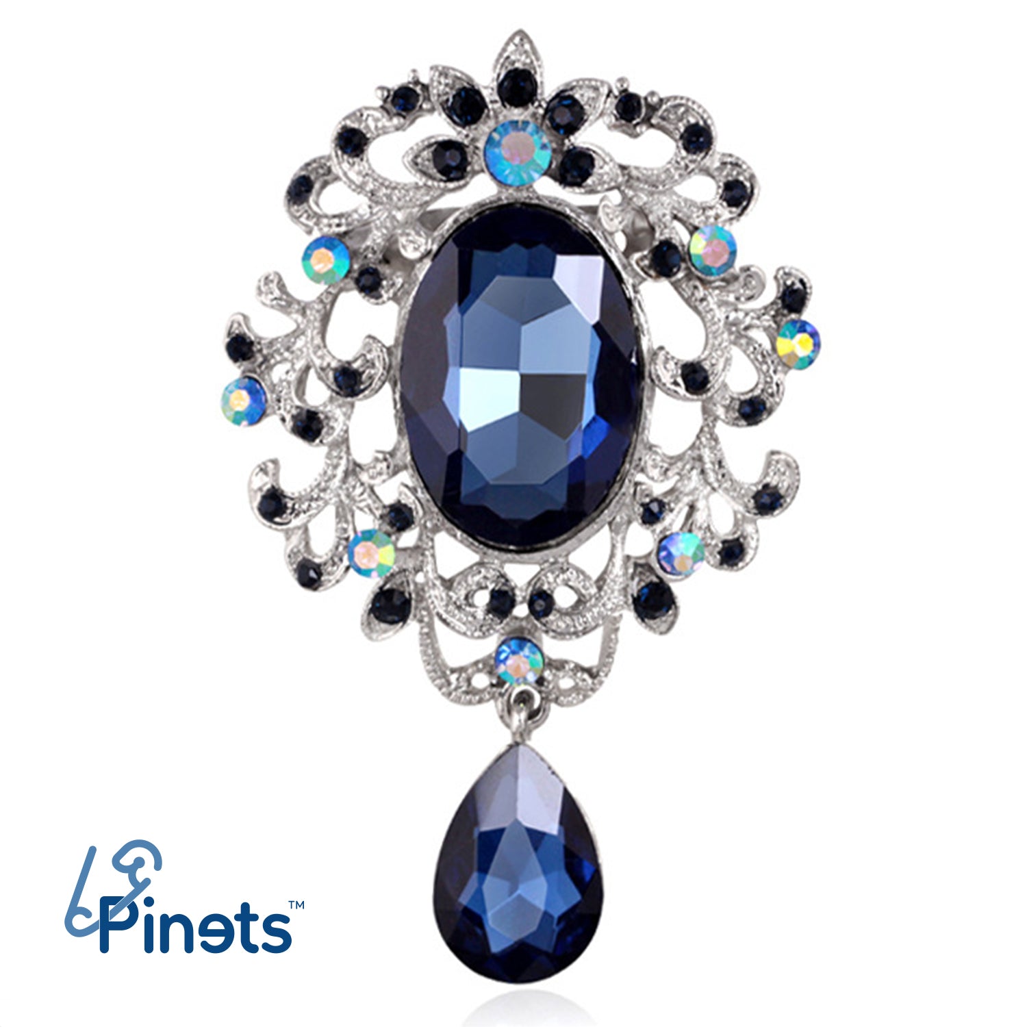 Barokowa broszka z niebieskimi cyrkoniami