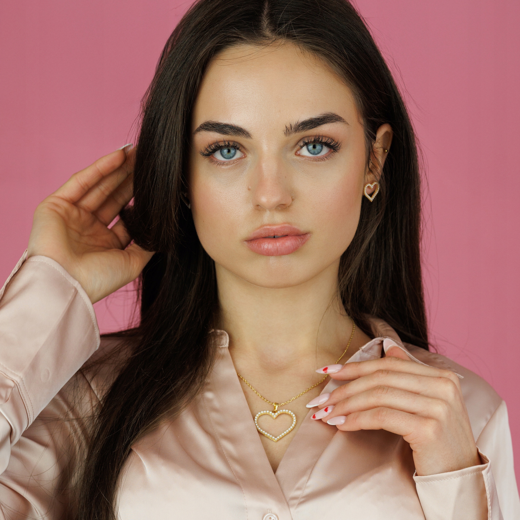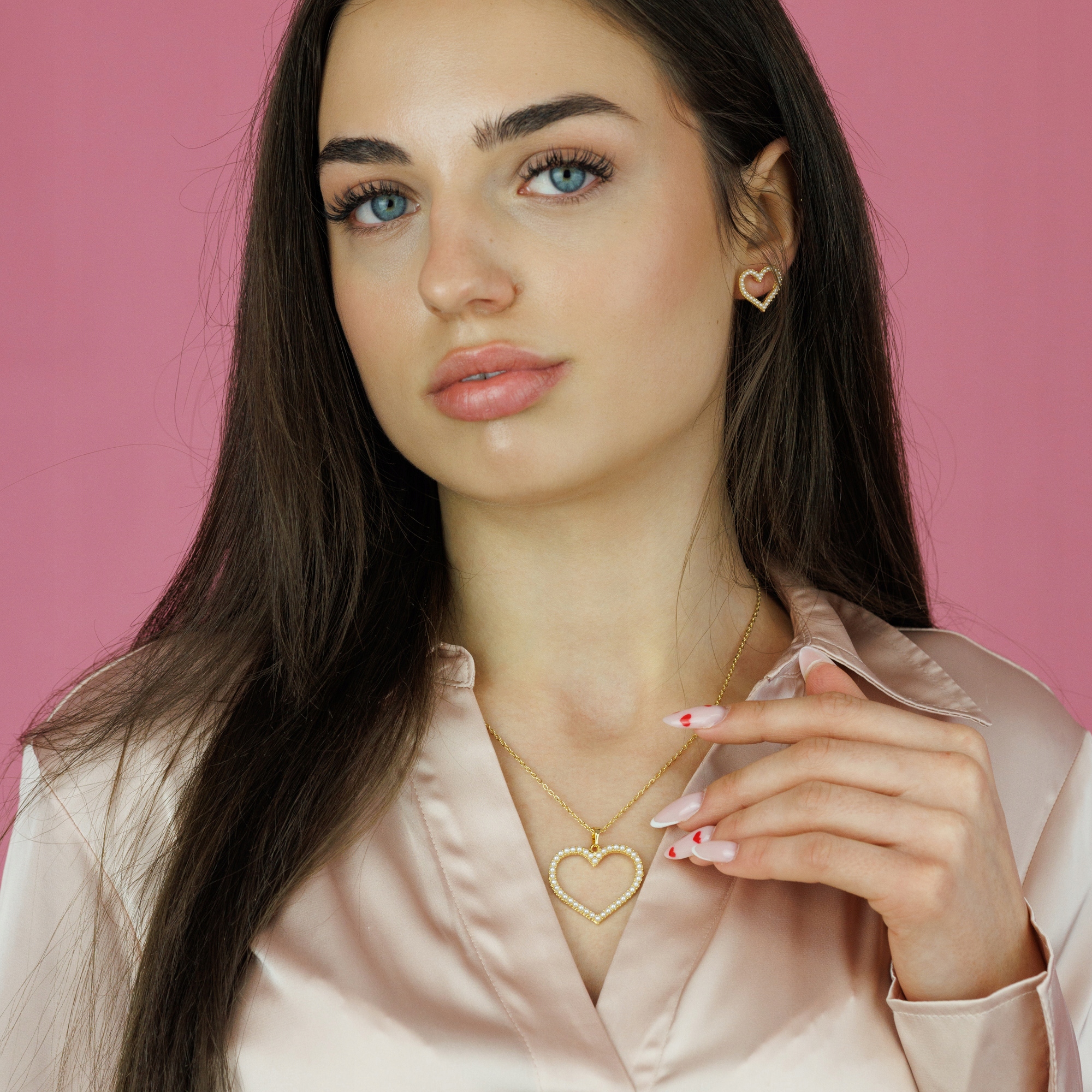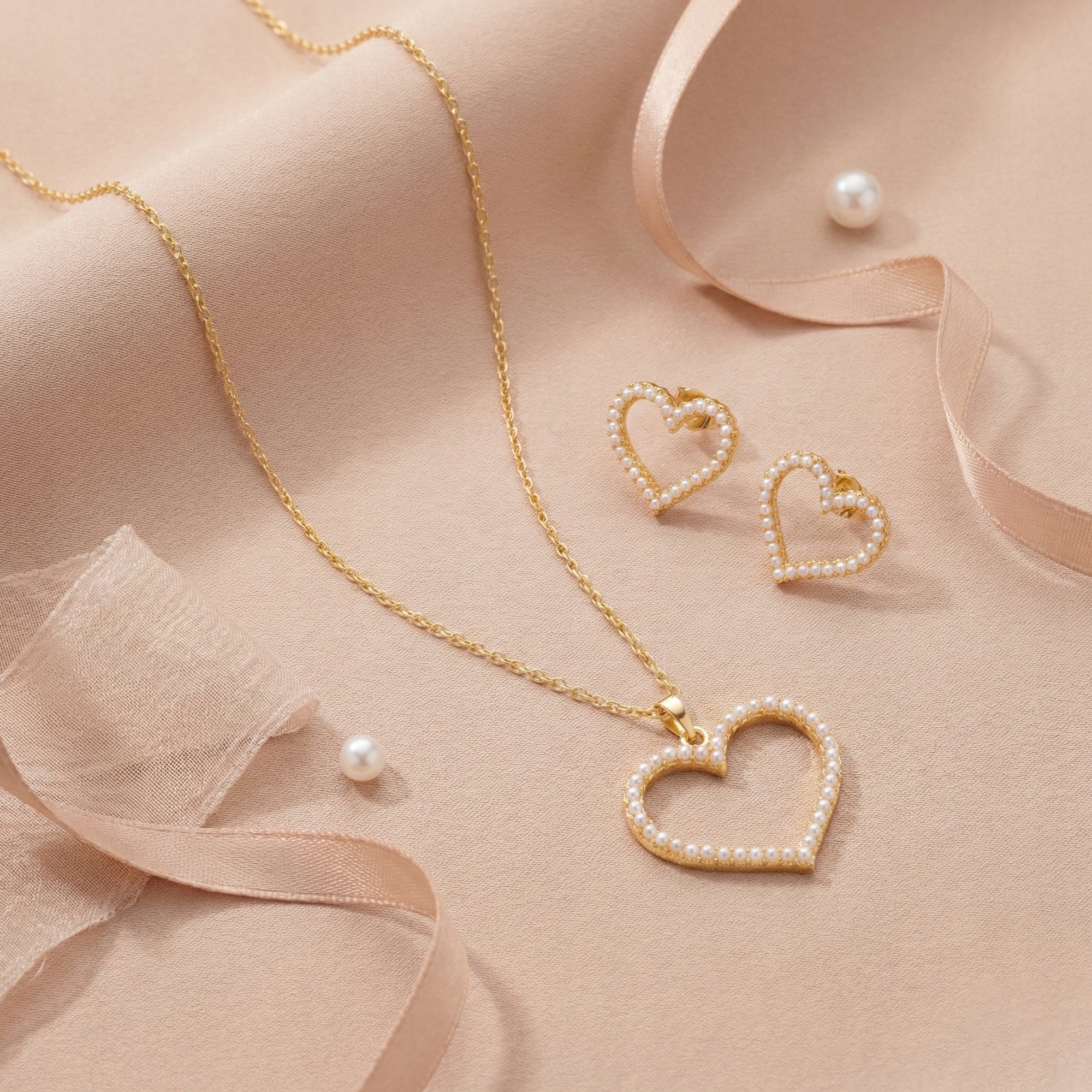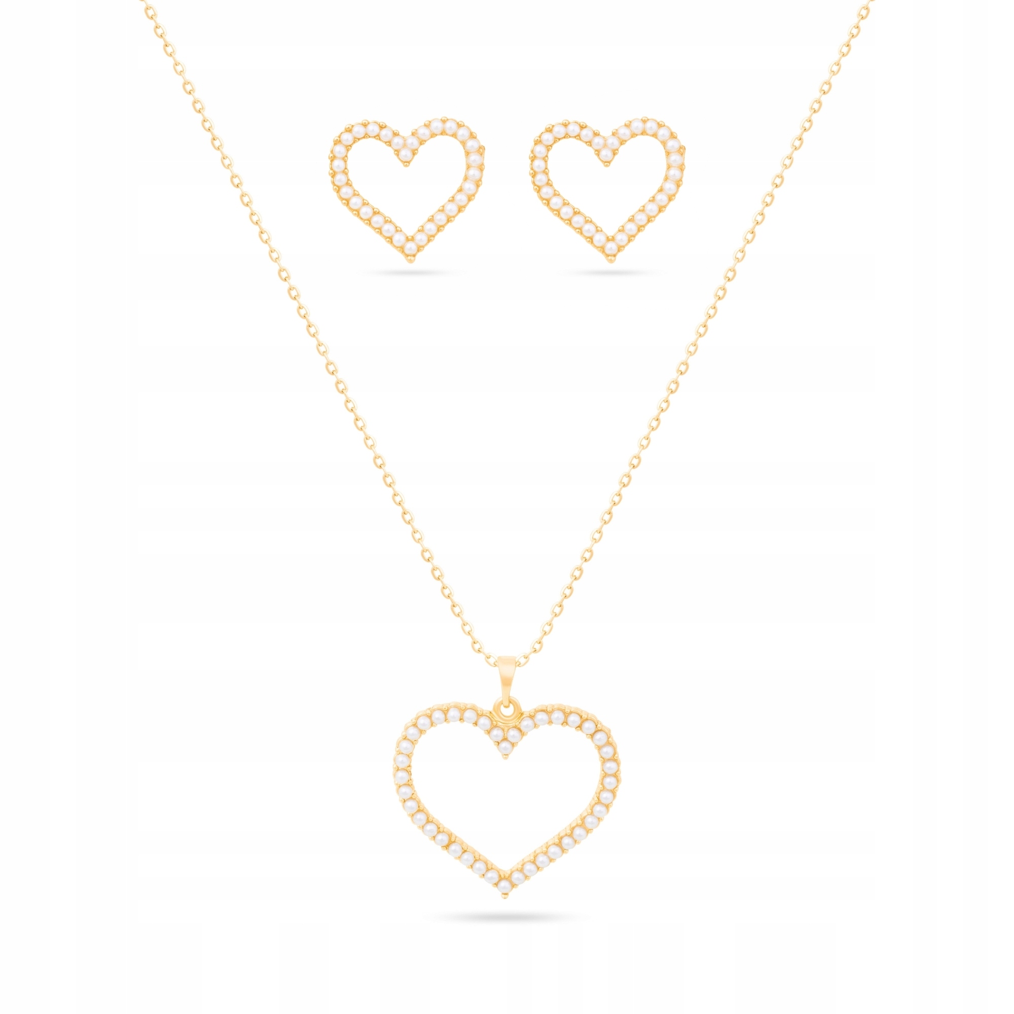 Stylowy zestaw biżuterii damskiej z motywem serca to elegancki dodatek, który podkreśli kobiecą urodę i doda blasku każdej stylizacji. Delikatne perełki osadzone w złotej oprawie tworzą wyjątkowy i ponadczasowy design.