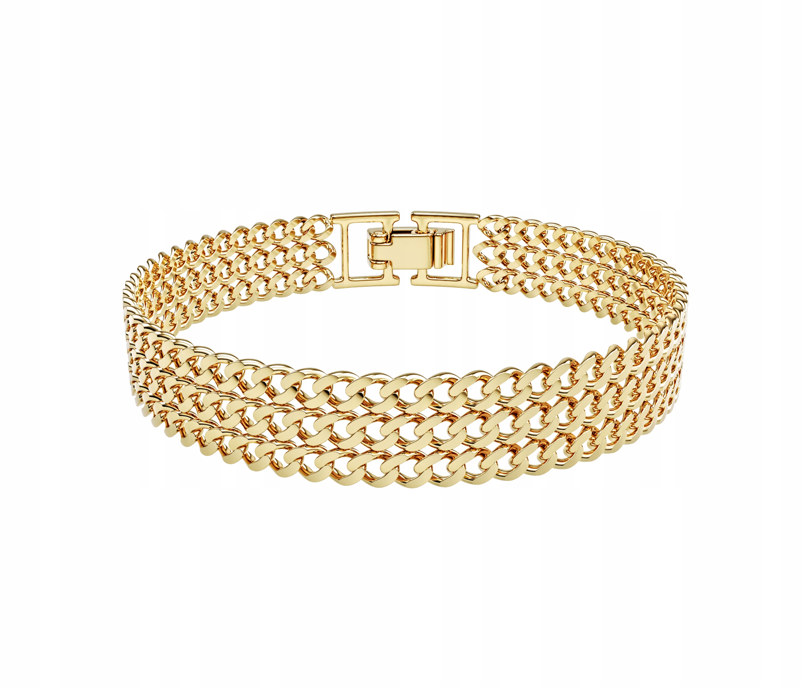- Styl: Klasyczna, szeroka bransoletka z potrójnym łańcuszkiem