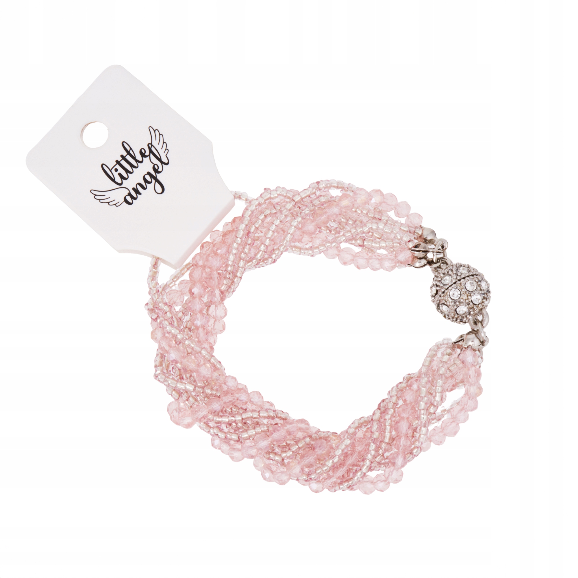 Bransoletka z różowych koralików | pleciona błyszcząca | Little Angel