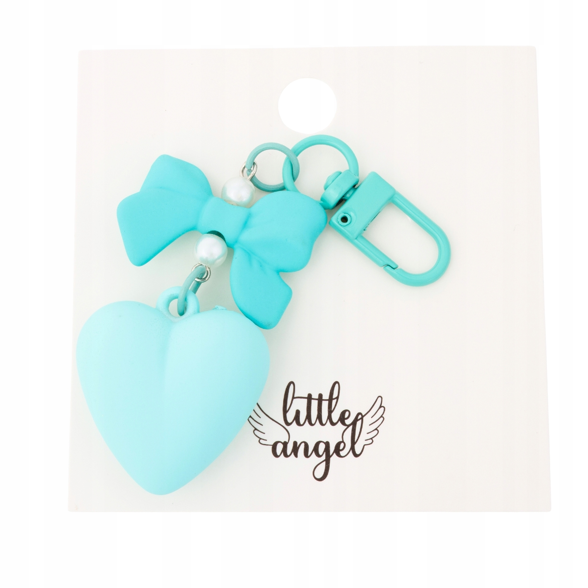 Brelok Little Angel - Seledynowe Serce z Kokardką i Perełkami