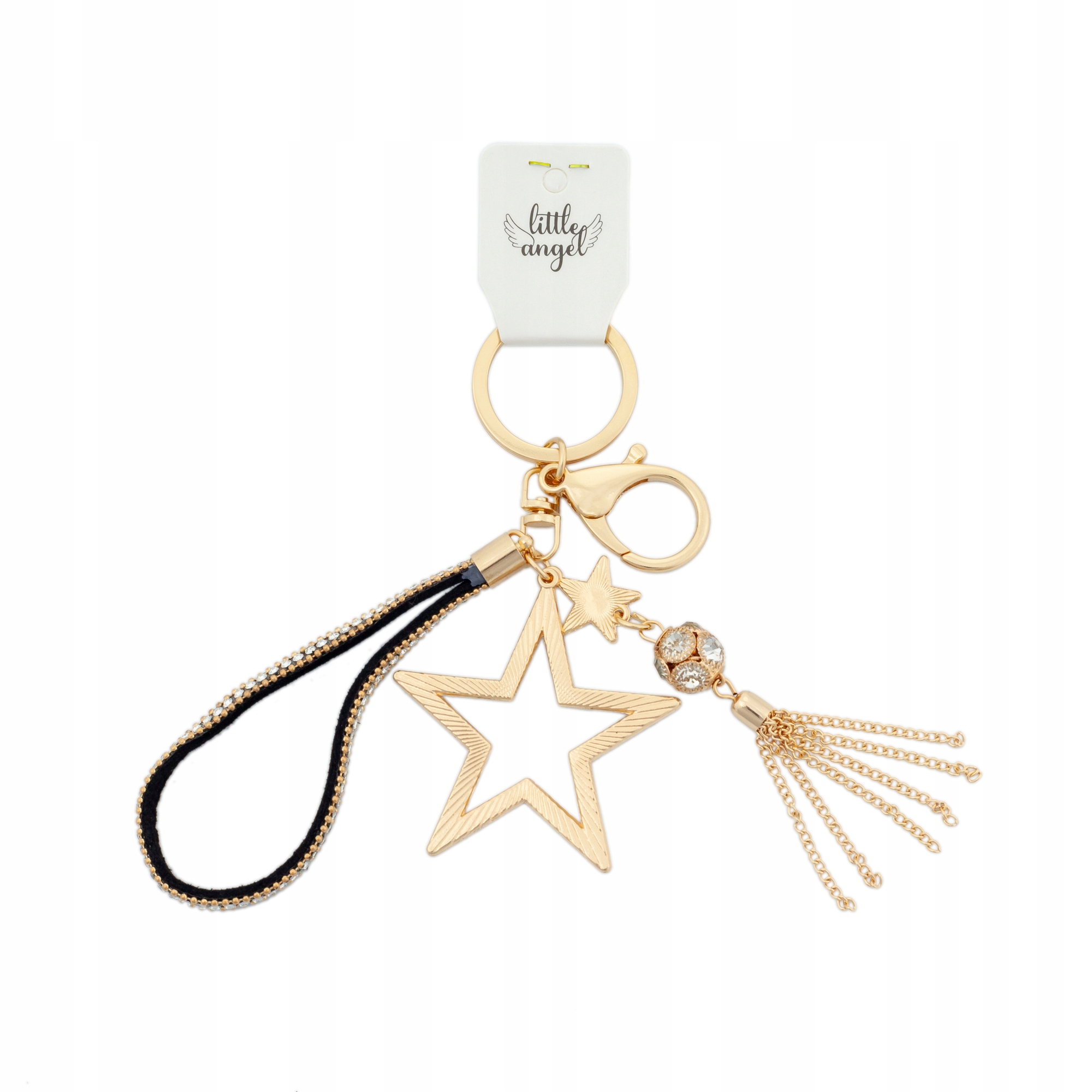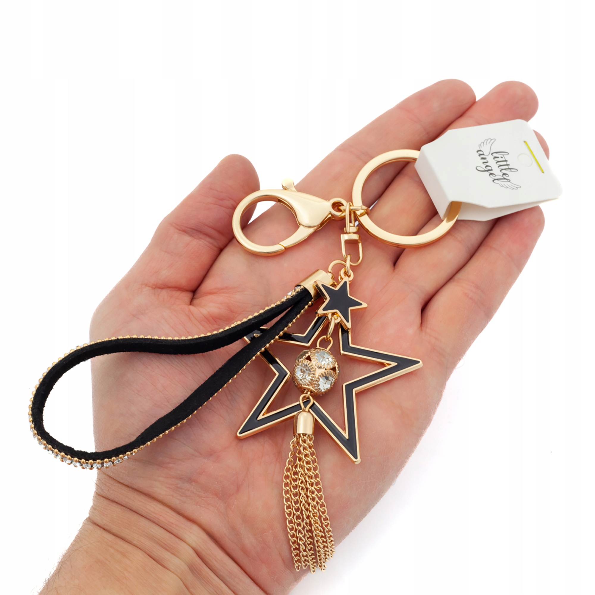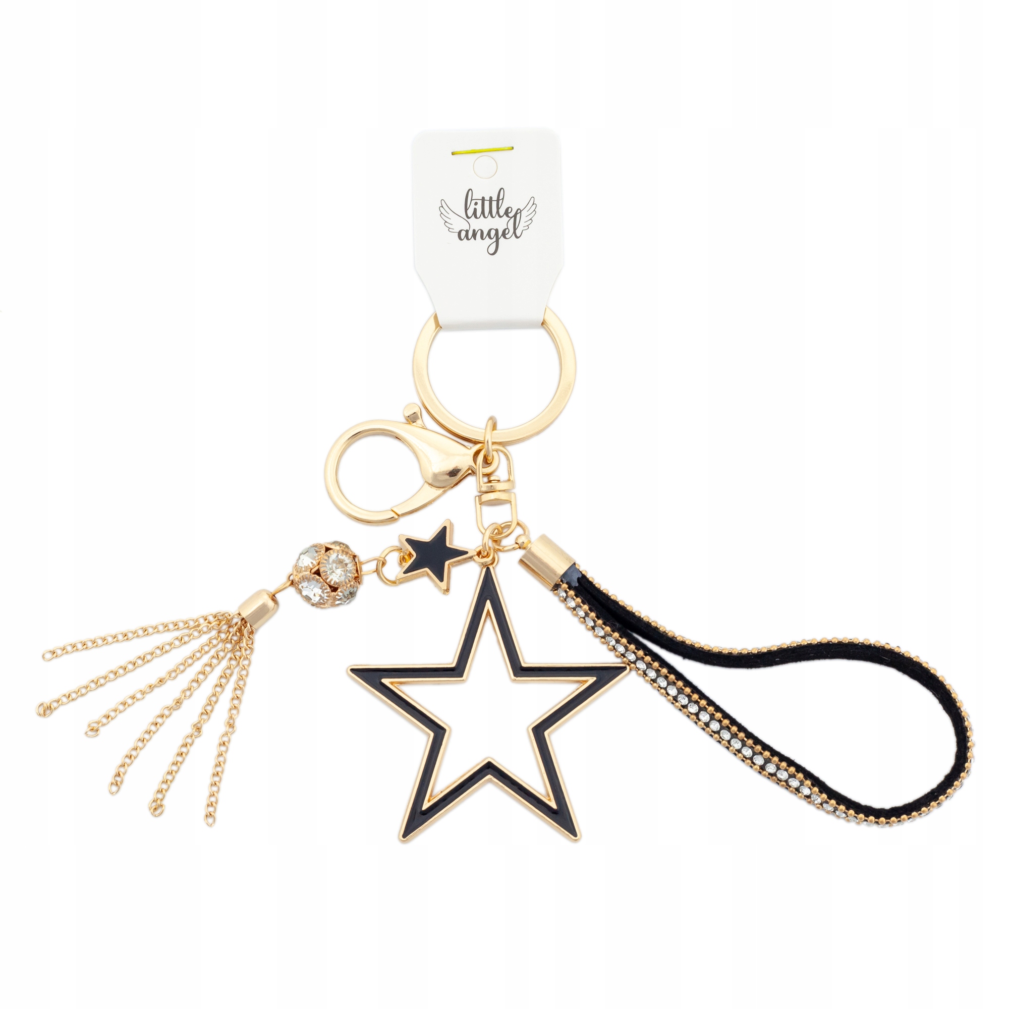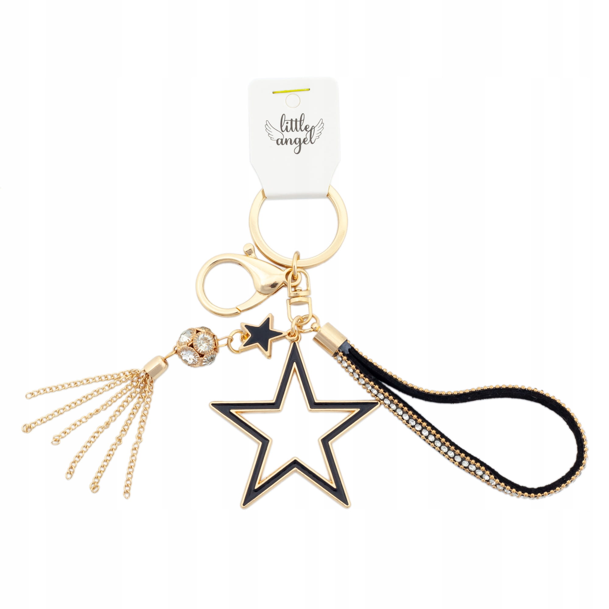 Brelok do kluczy Gwiazda i frędzle z cyrkoniami zawieszka do torebki