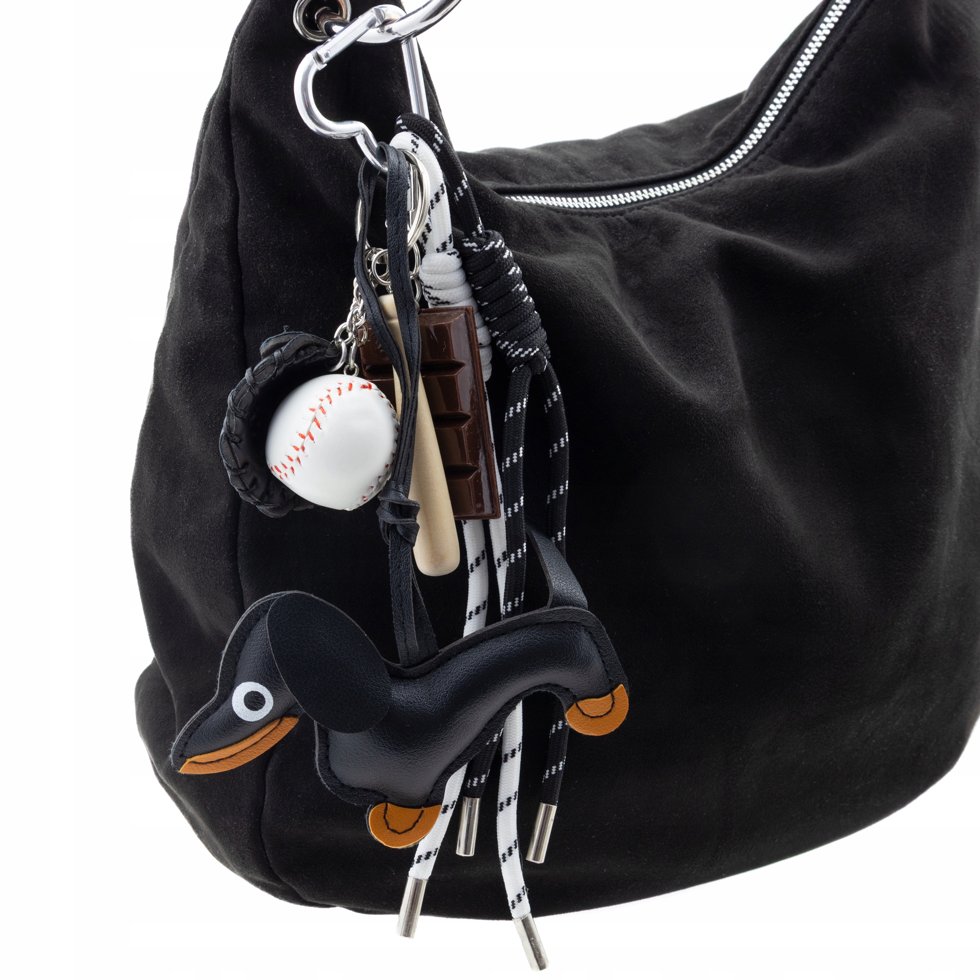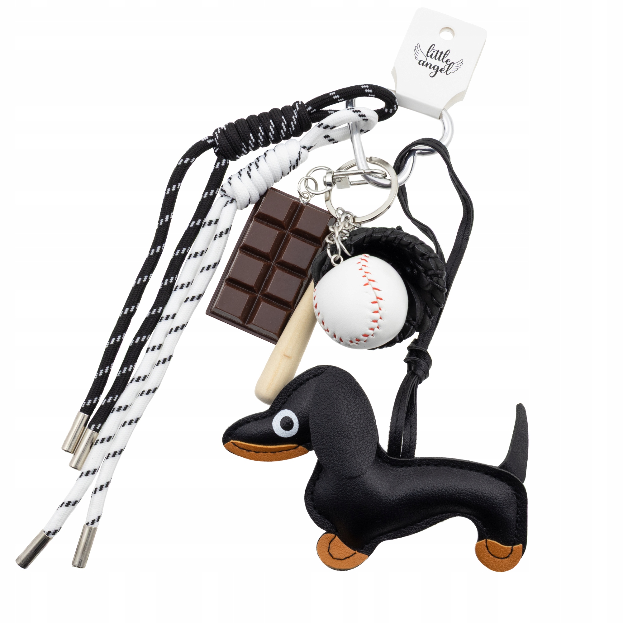 Szukasz wyjątkowego dodatku, który doda charakteru Twojej torebce lub plecakowi? Nasz brelok marki Little Angel to urocze połączenie stylu i pasji! Wyróżnia się designerskim motywem psa jamnika oraz sportowymi detalami – miniaturową rękawicą, piłką baseballową i kijem – a także zabawnym elementem przypominającym tabliczkę czekolady.