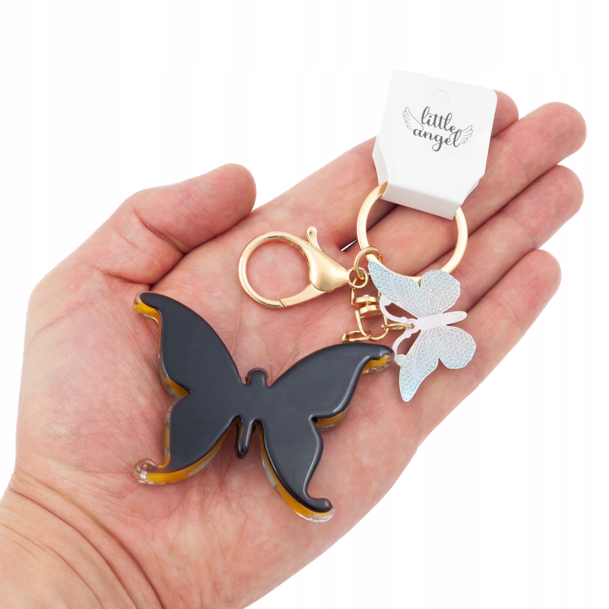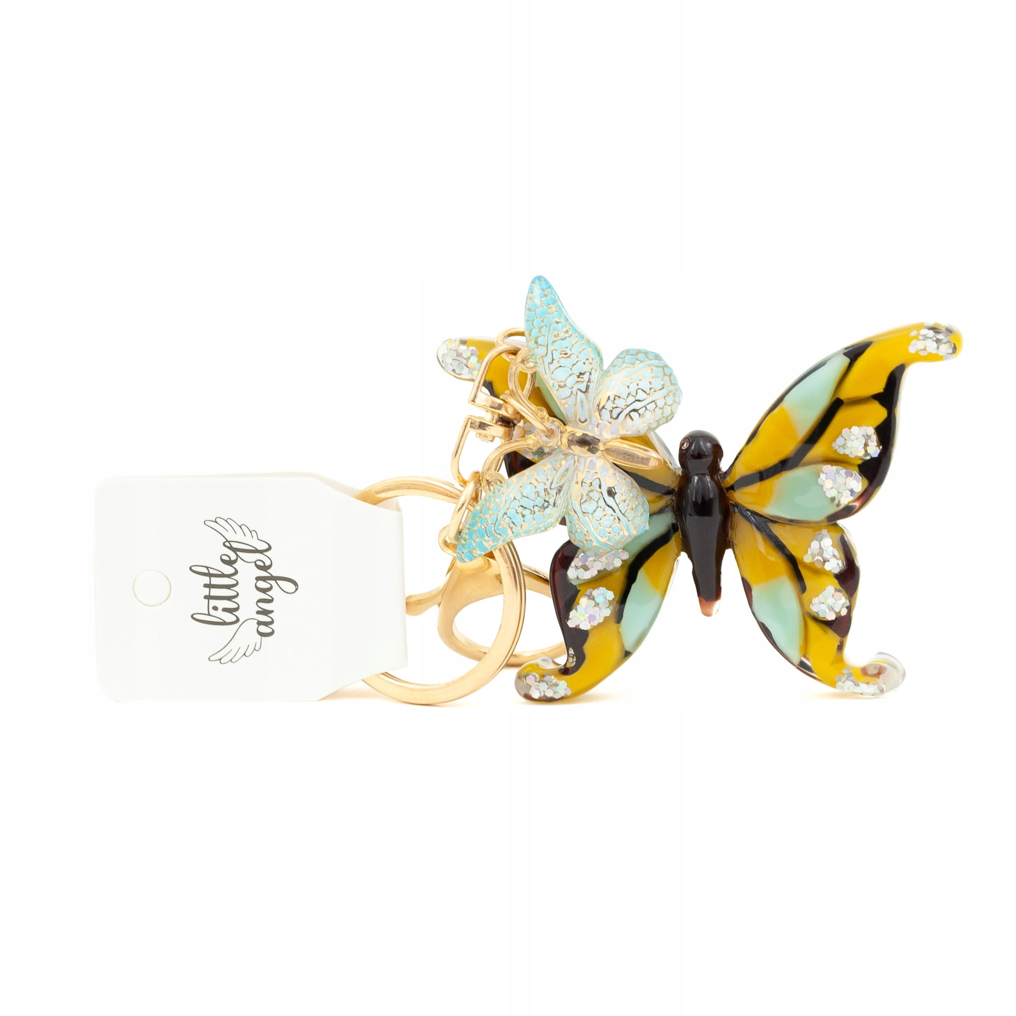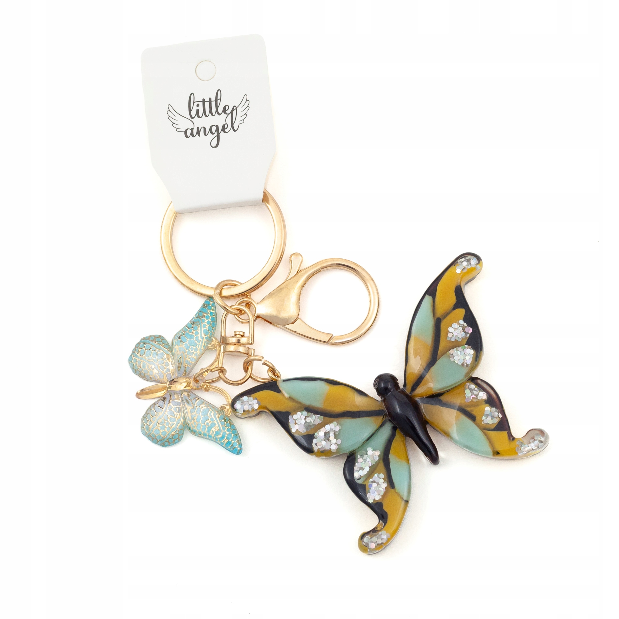 Brelok do kluczy Motyl akrylowy żółto niebieski z małą zawieszką