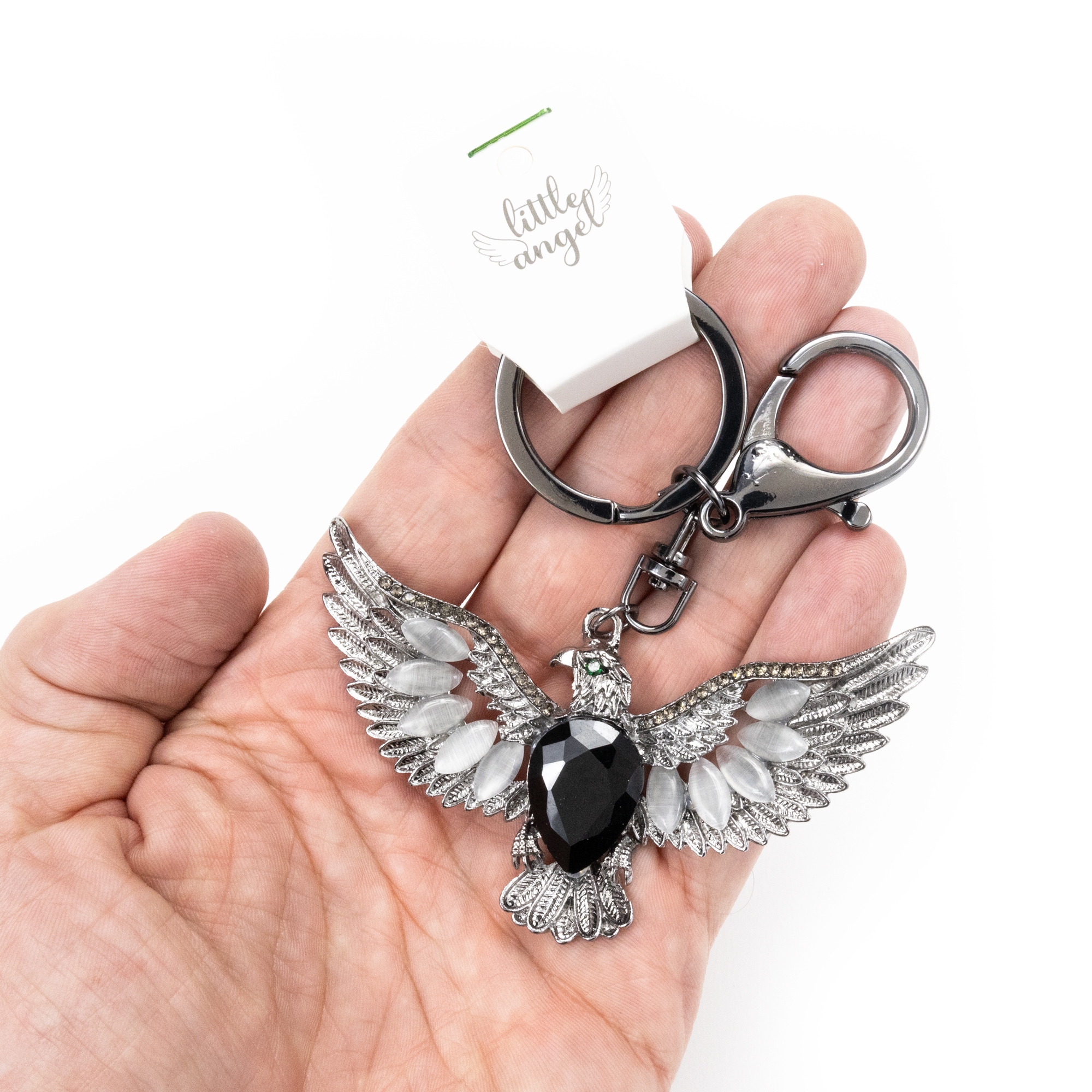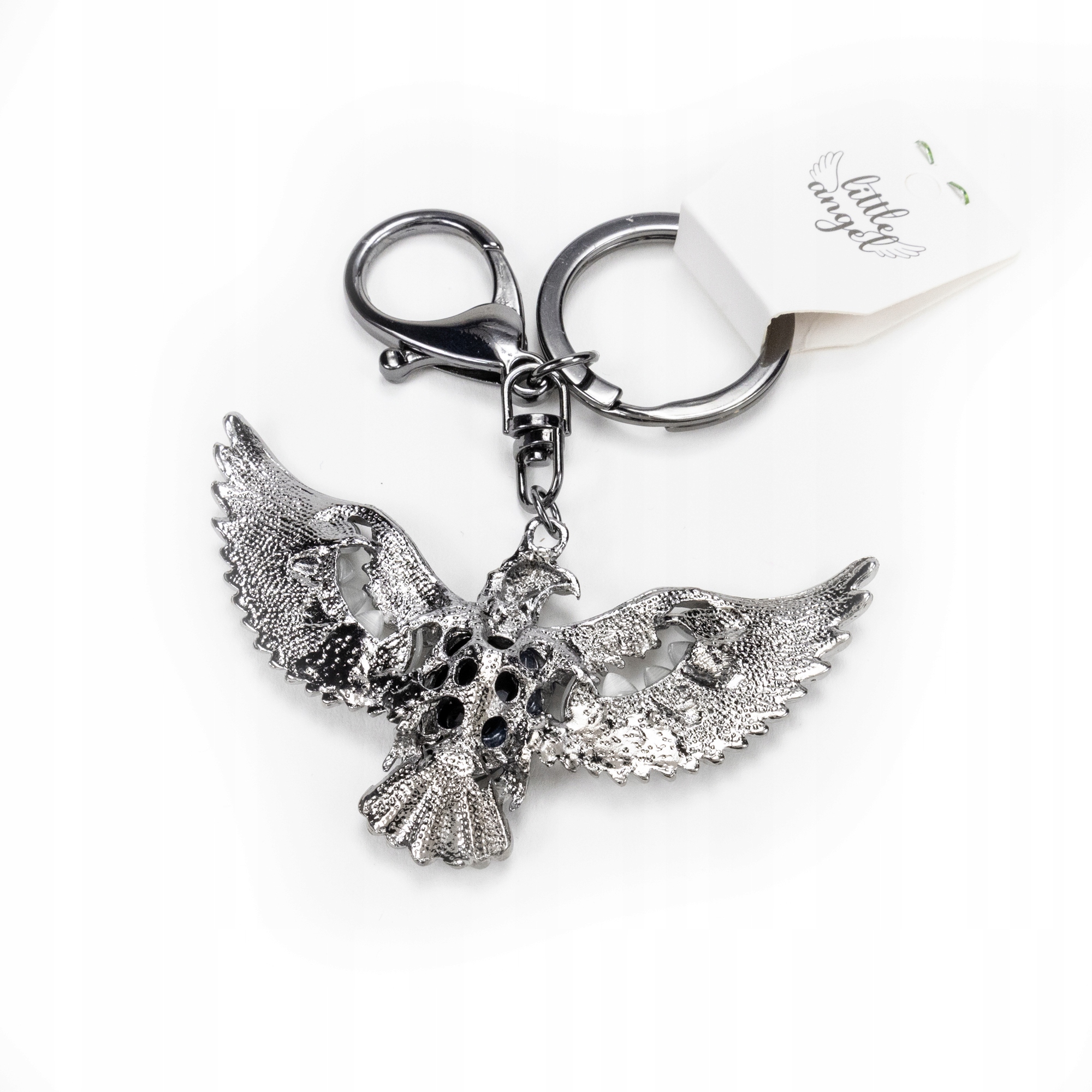 Brelok do kluczy Orzeł czarny z cyrkoniami do torebki