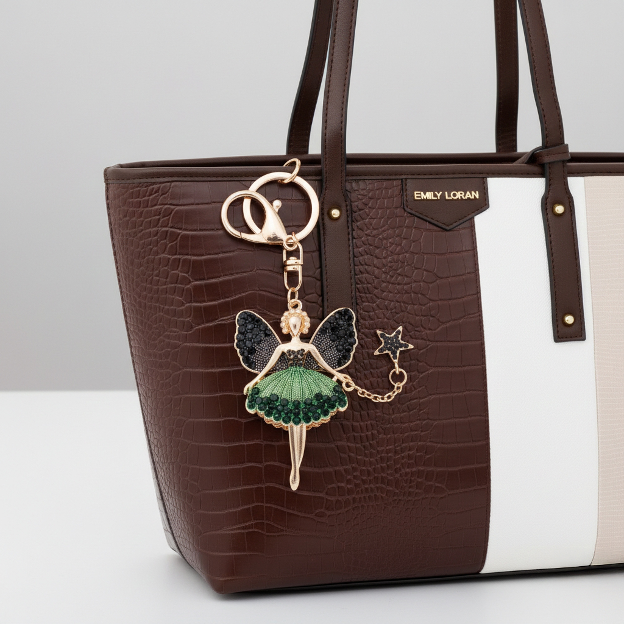 Brelok do kluczy Zawieszka do torebki Wróżka zielona z cyrkoniami