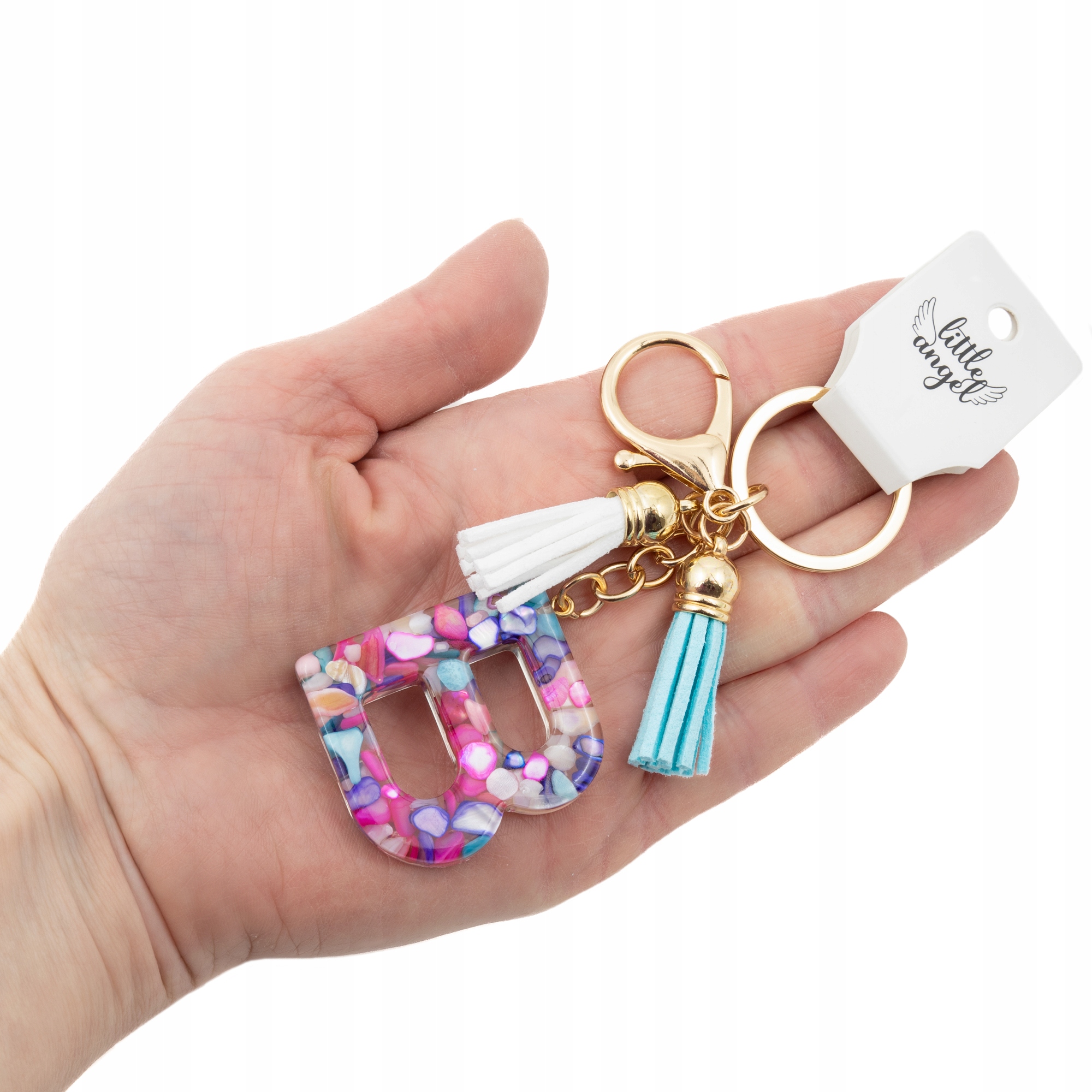 ✨Stylowy i oryginalny – brelok w kształcie litery „B” wykonany z barwionej żywicy z efektem mozaiki. Doskonały dodatek dla osób ceniących unikalne akcesoria.