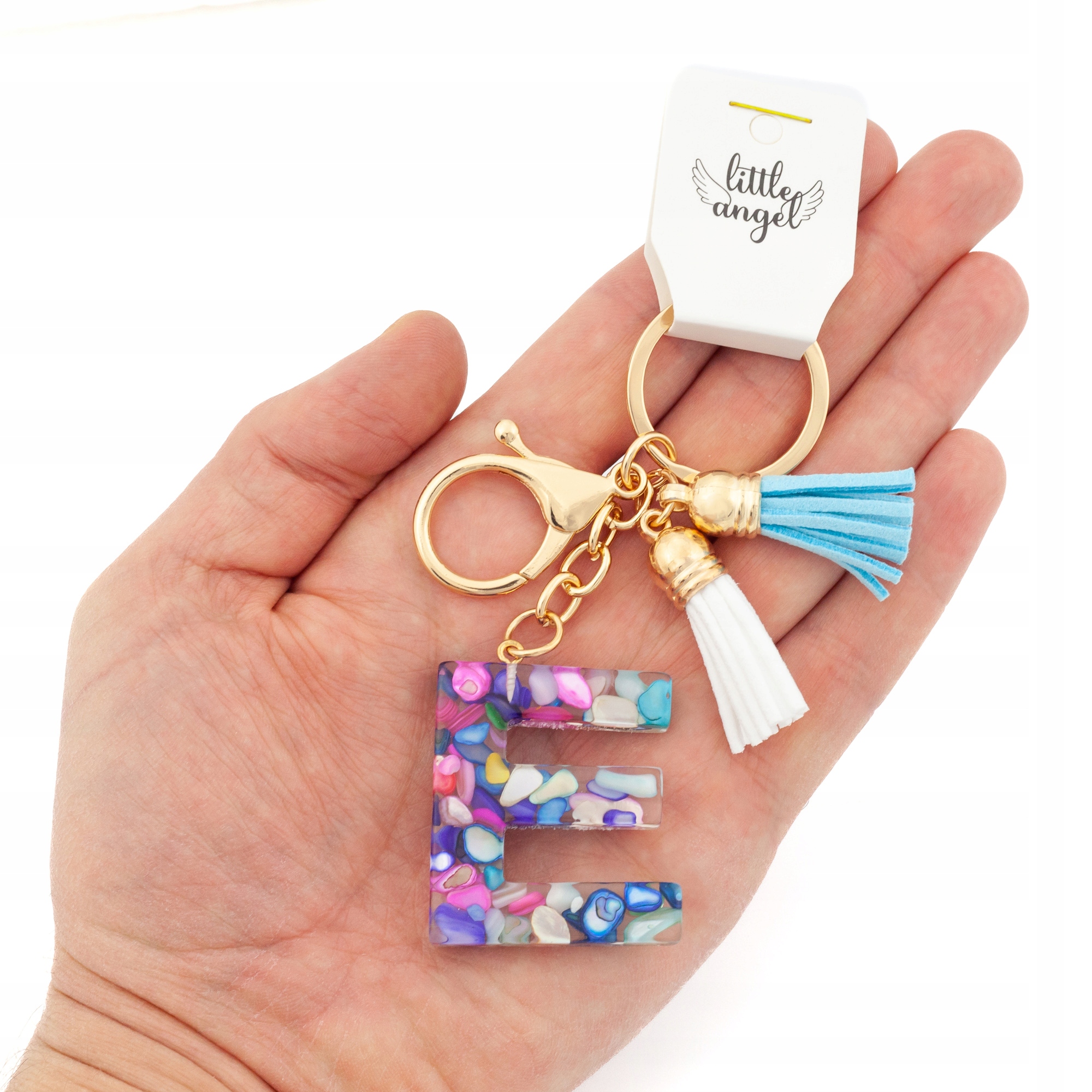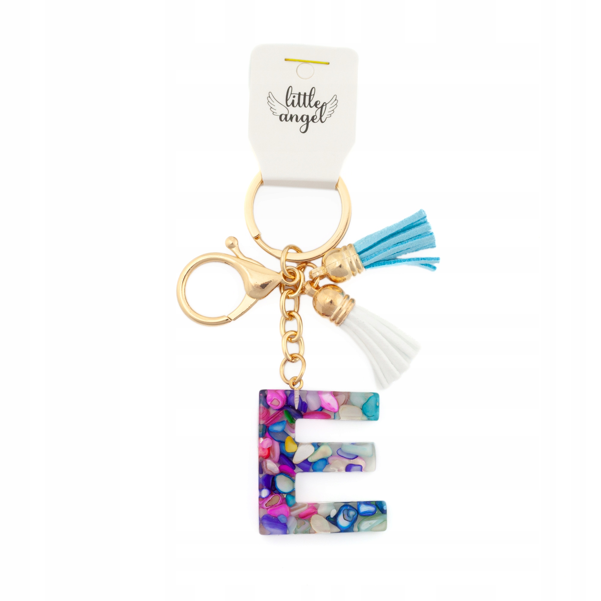 Brelok do kluczy literka E akrylowa z kolorowymi kamyczkami
