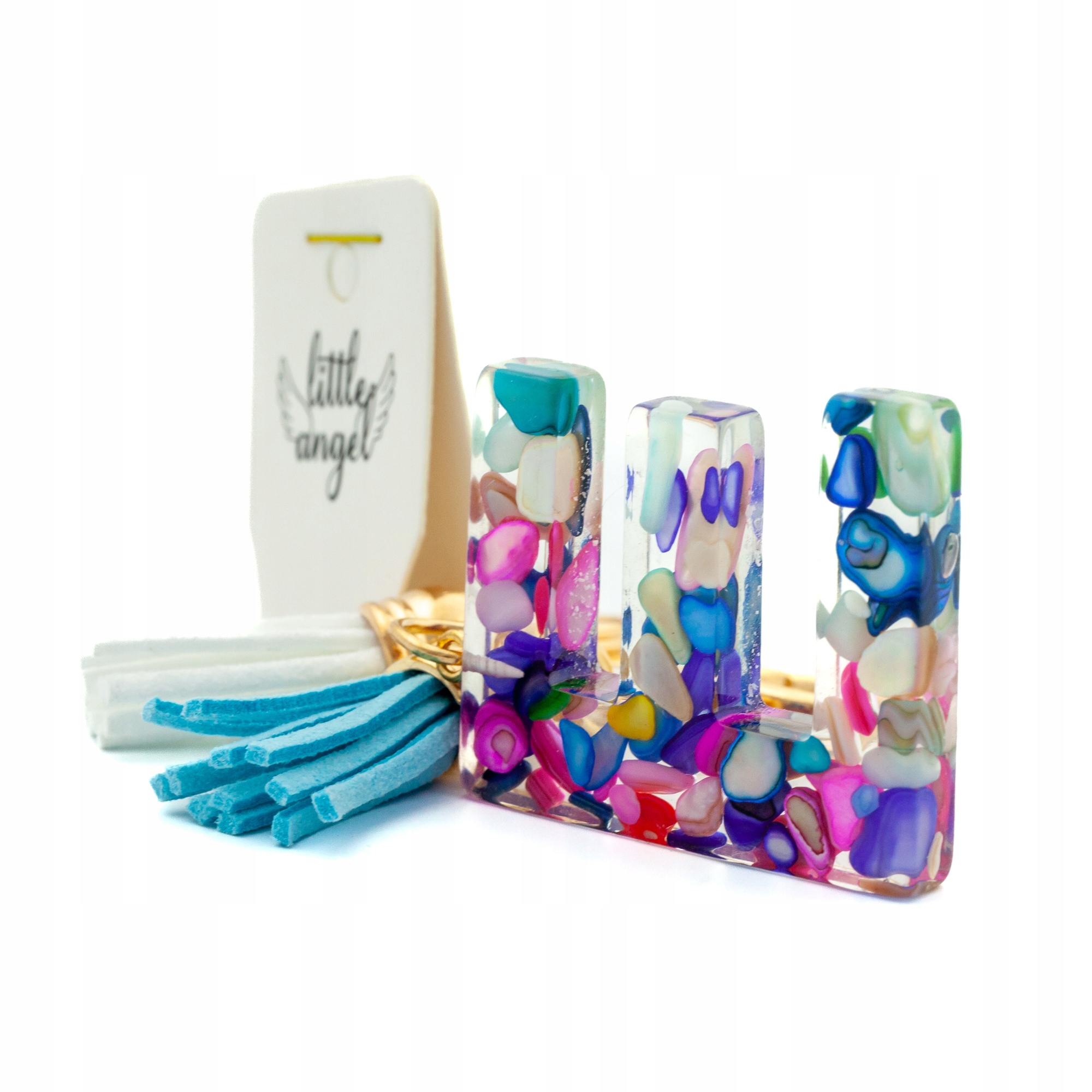 Brelok z akrylową literą i zatopionymi kolorowymi kamyczkami