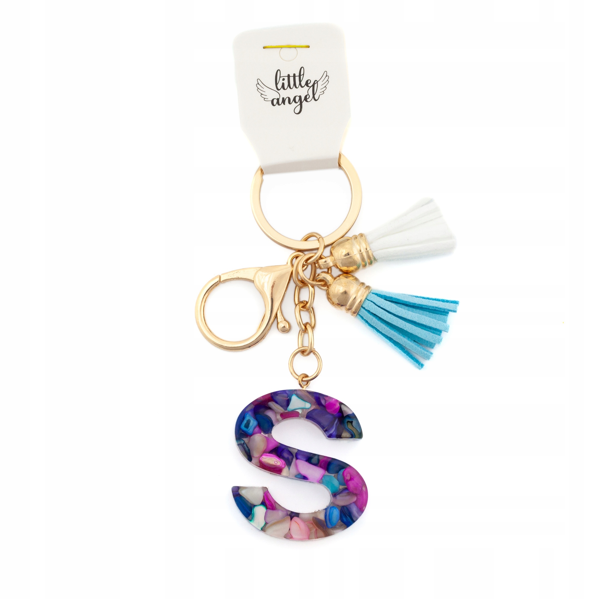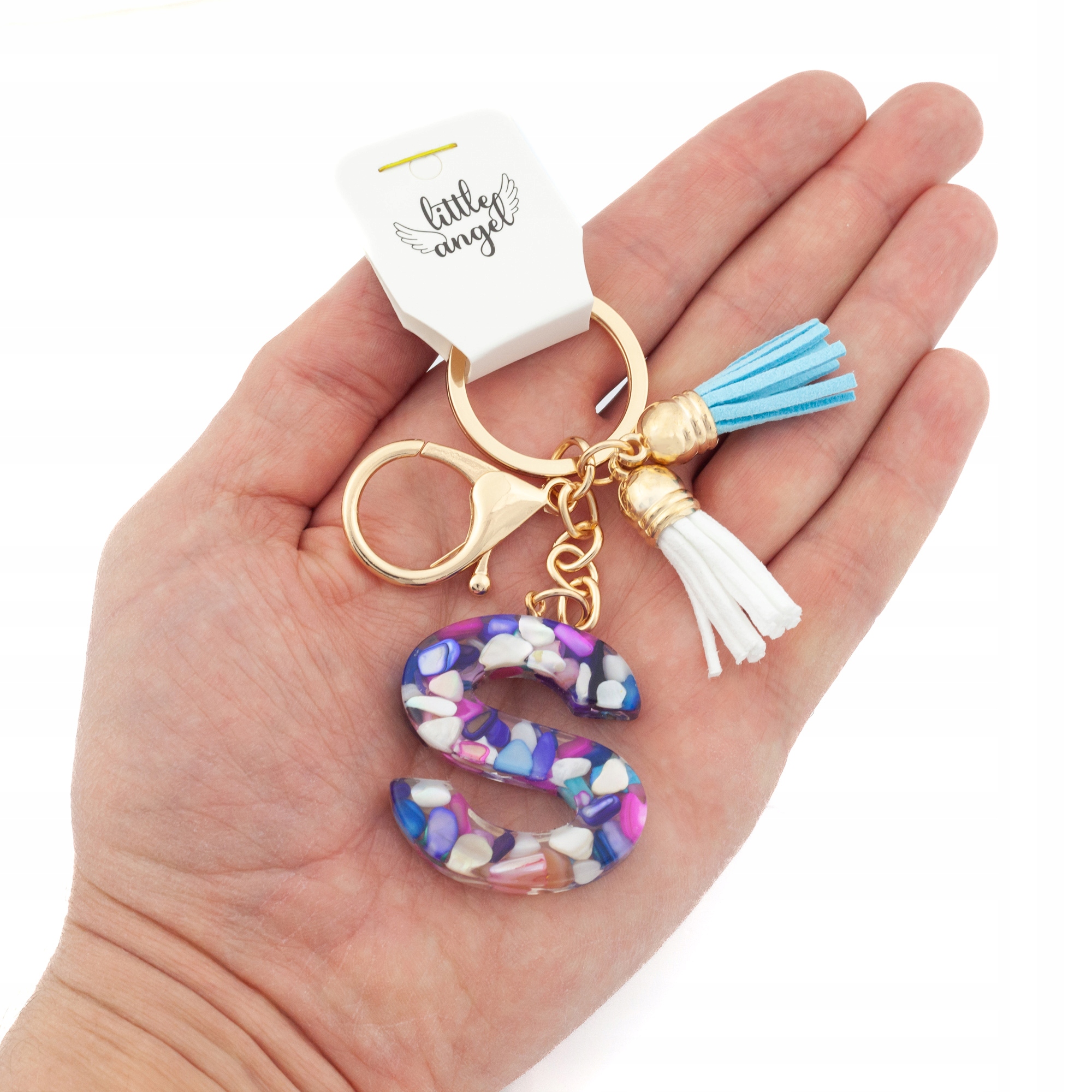 Brelok do kluczy literka S akrylowa z kolorowymi kamyczkami