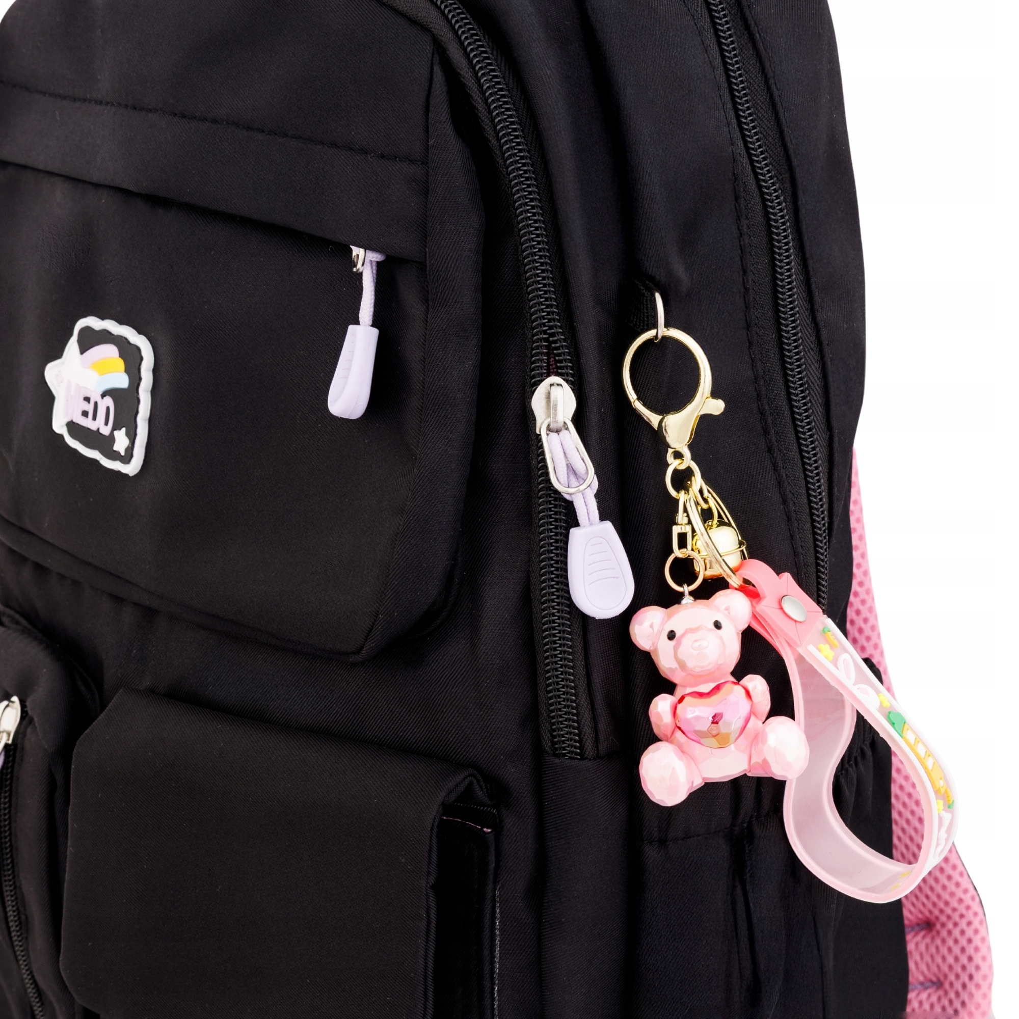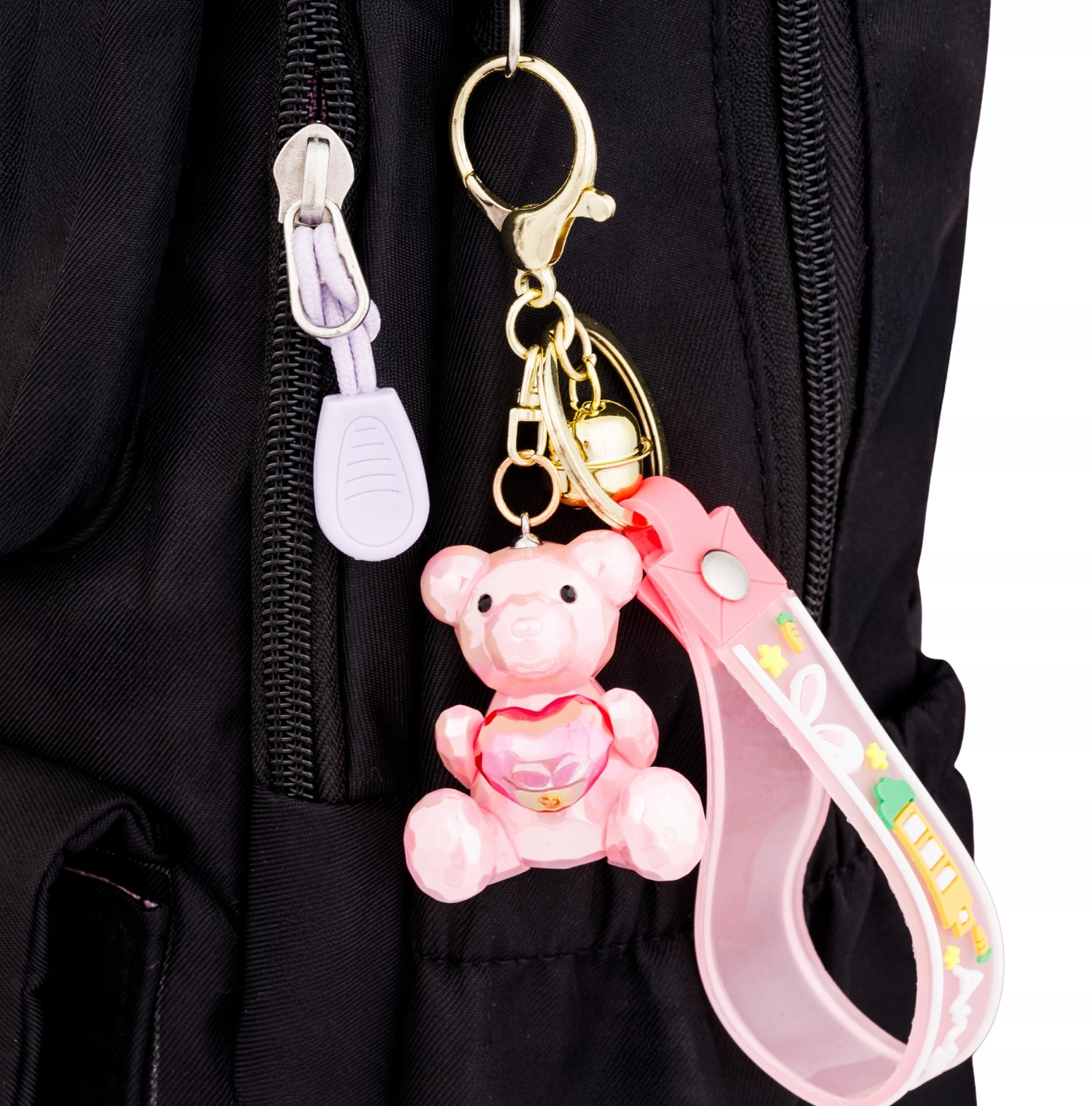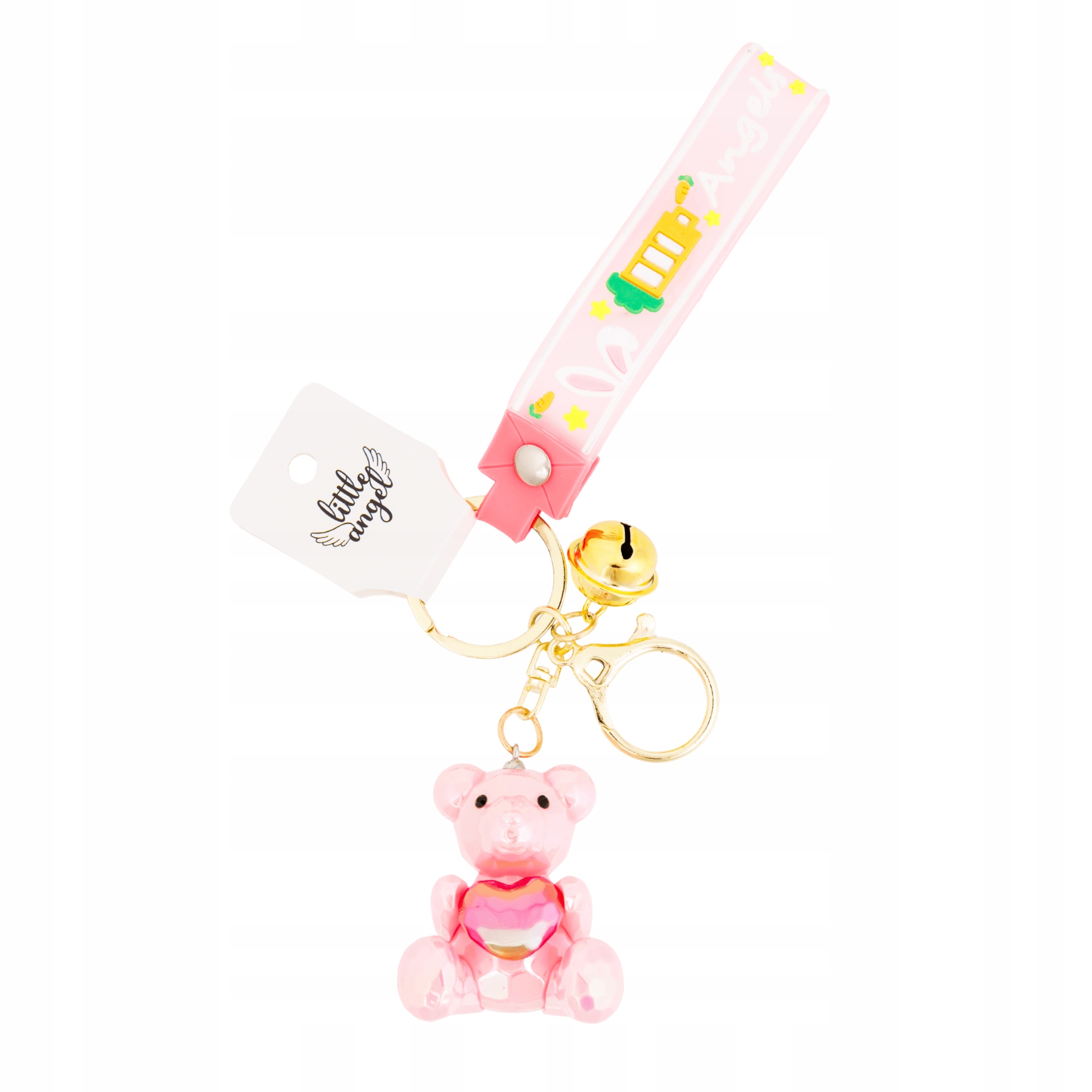 Uroczy brelok Little Angel z różowym misiem to idealny dodatek dla miłośników słodkich, pastelowych akcentów. Miś trzymający serduszko symbolizuje ciepło, przyjaźń i pozytywne emocje – sprawdzi się doskonale jako ozdoba do plecaka, torebki, kluczy czy piórnika.