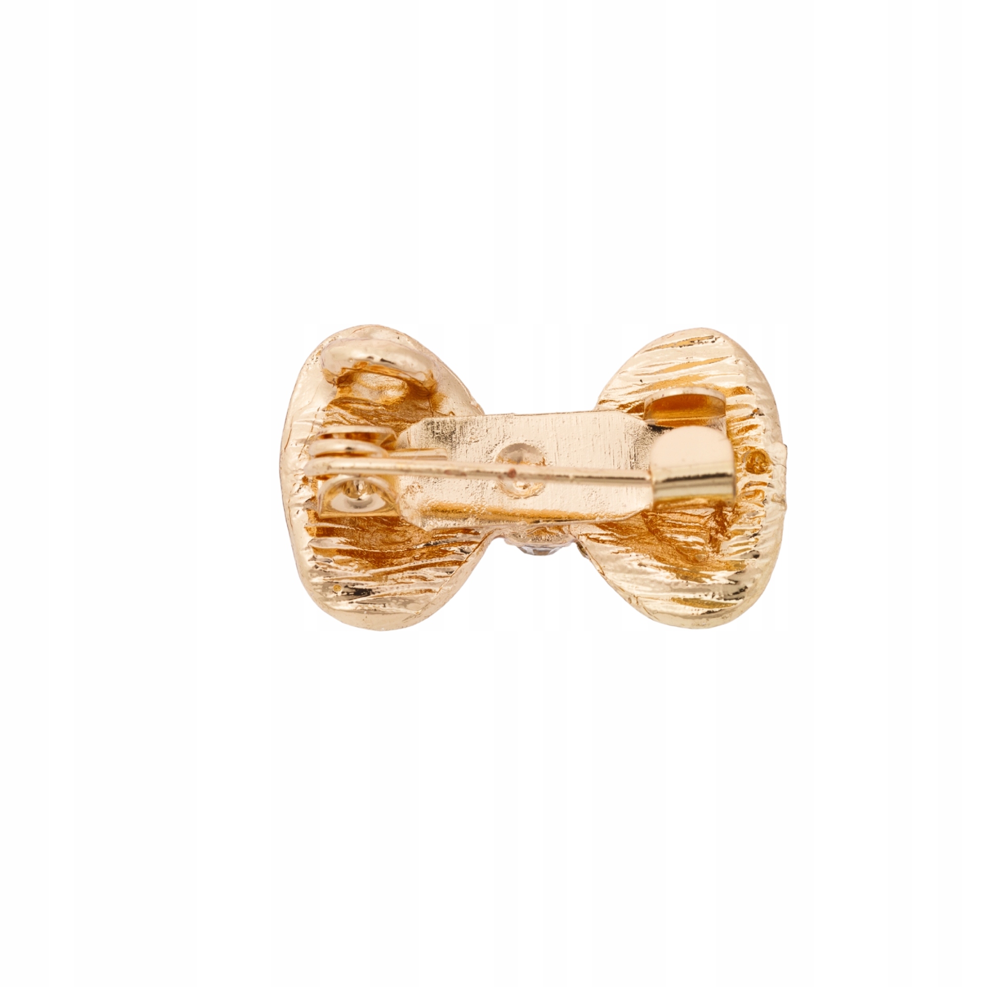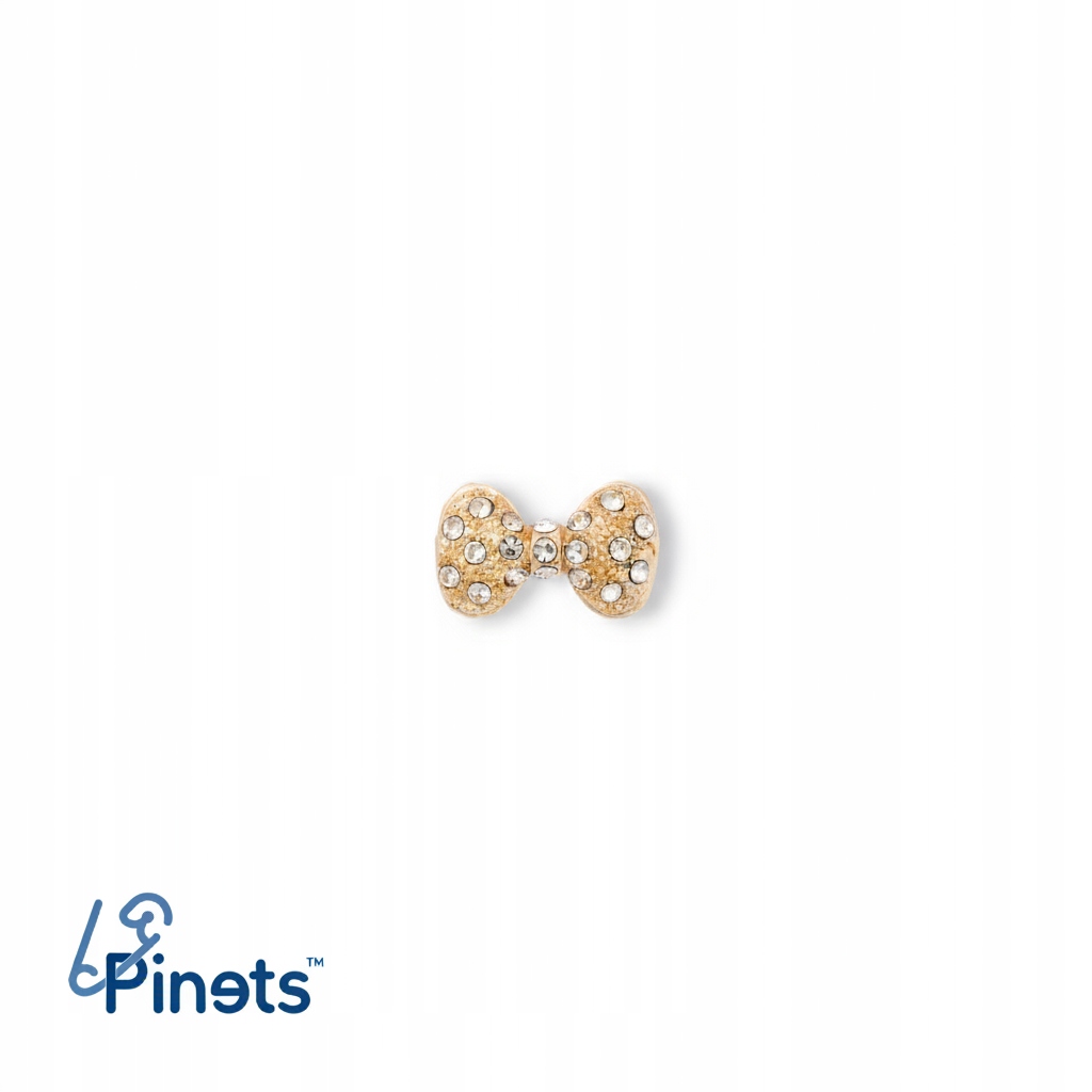 Elegancka broszka w kształcie kokardki ozdobiona błyszczącymi cyrkoniami to subtelny dodatek, który pięknie podkreśli każdą stylizację. Delikatny złoty kolor i drobne kamienie nadają biżuterii eleganckiego, kobiecego charakteru.