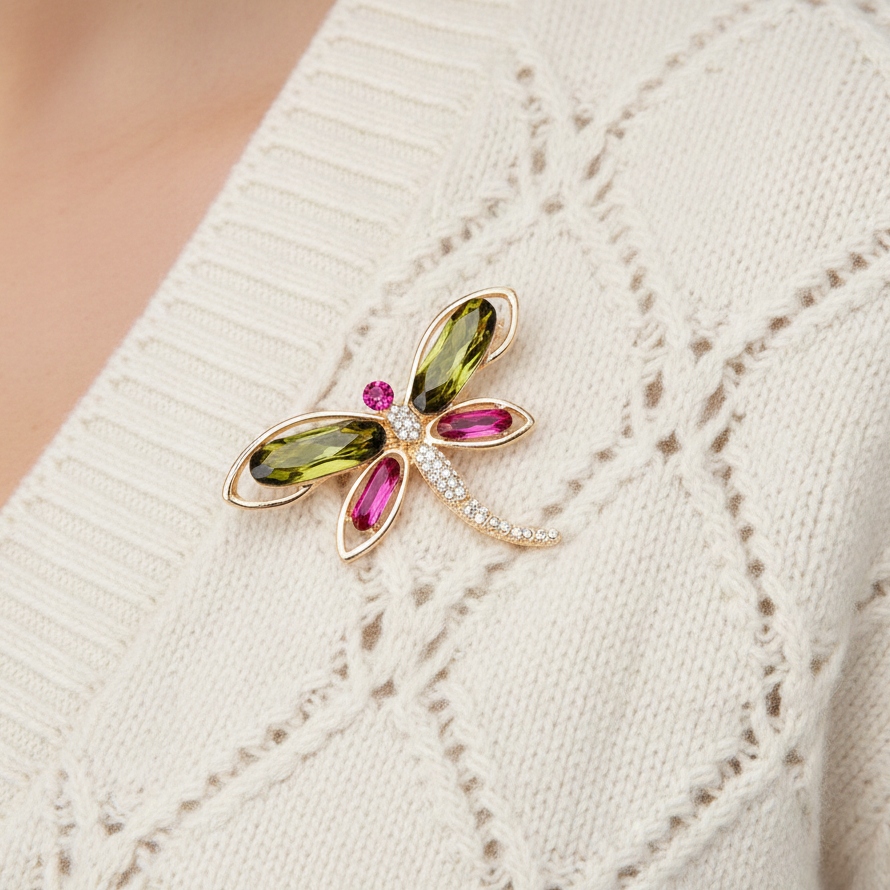 Elegancka broszka ważka z kryształami – wyjątkowa biżuteria damska
