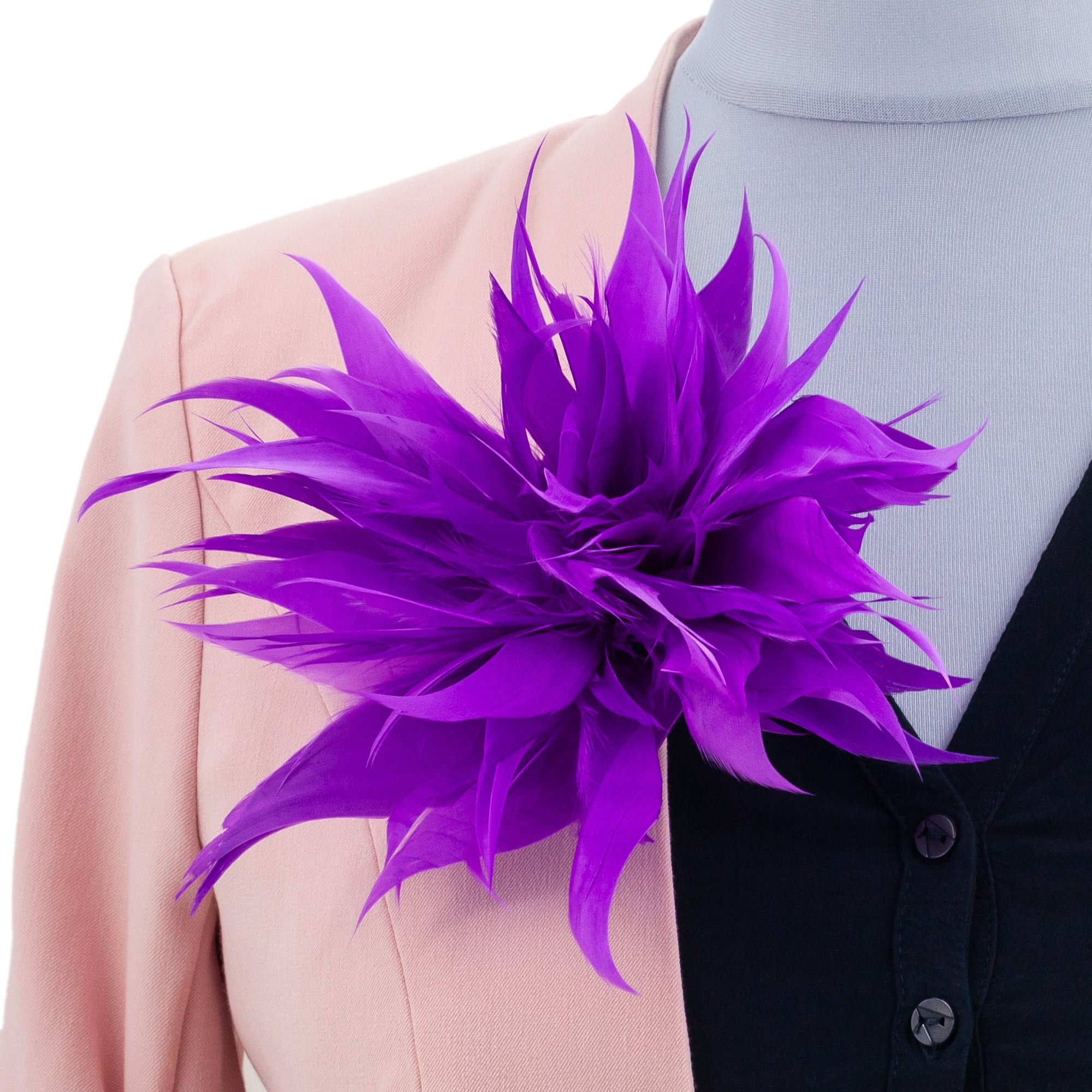 Broszka fioletowe Pióra gęsie Zapinka do kapelusza żakietu