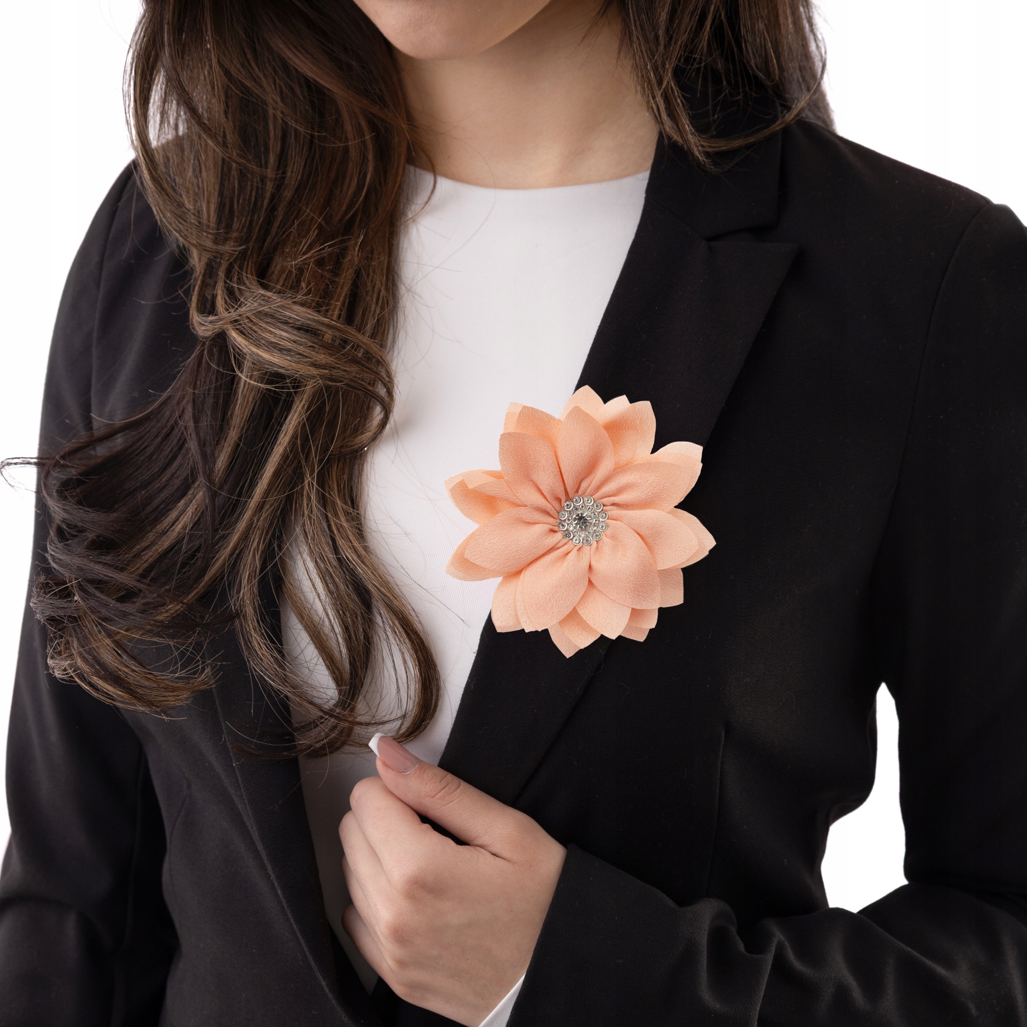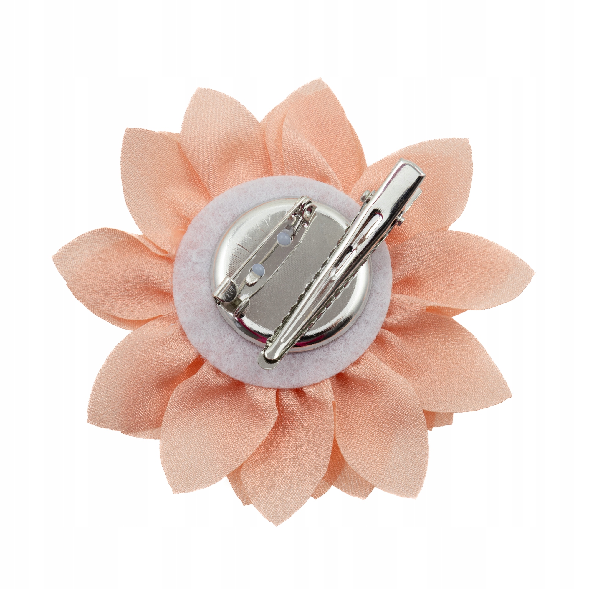 Broszka posiada uniwersalne zapięcie 2w1 – klasyczną agrafkę oraz klips typu krokodylek. Dzięki temu możesz ją z łatwością przypiąć zarówno do odzieży (np. marynarki, sukienki, bluzki), jak i wykorzystać jako ozdobę do włosów. Solidne mocowanie zapewnia stabilność i komfort noszenia, a metalowe elementy są trwałe i estetycznie wykończone.