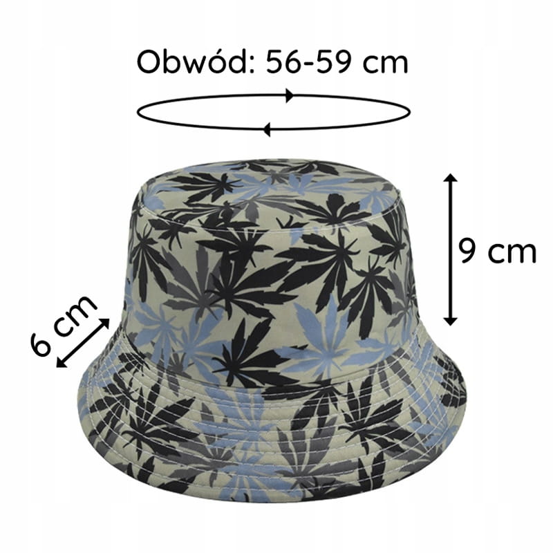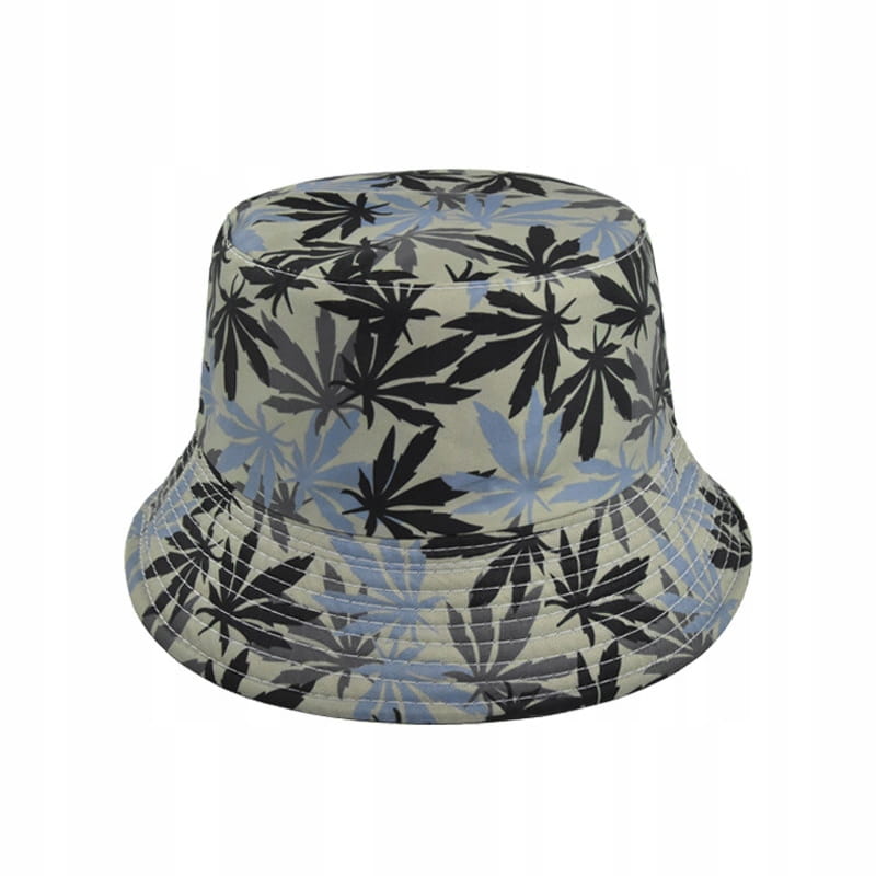 Kapelusz na lato typu Bucket Hat z roślinnym motywem