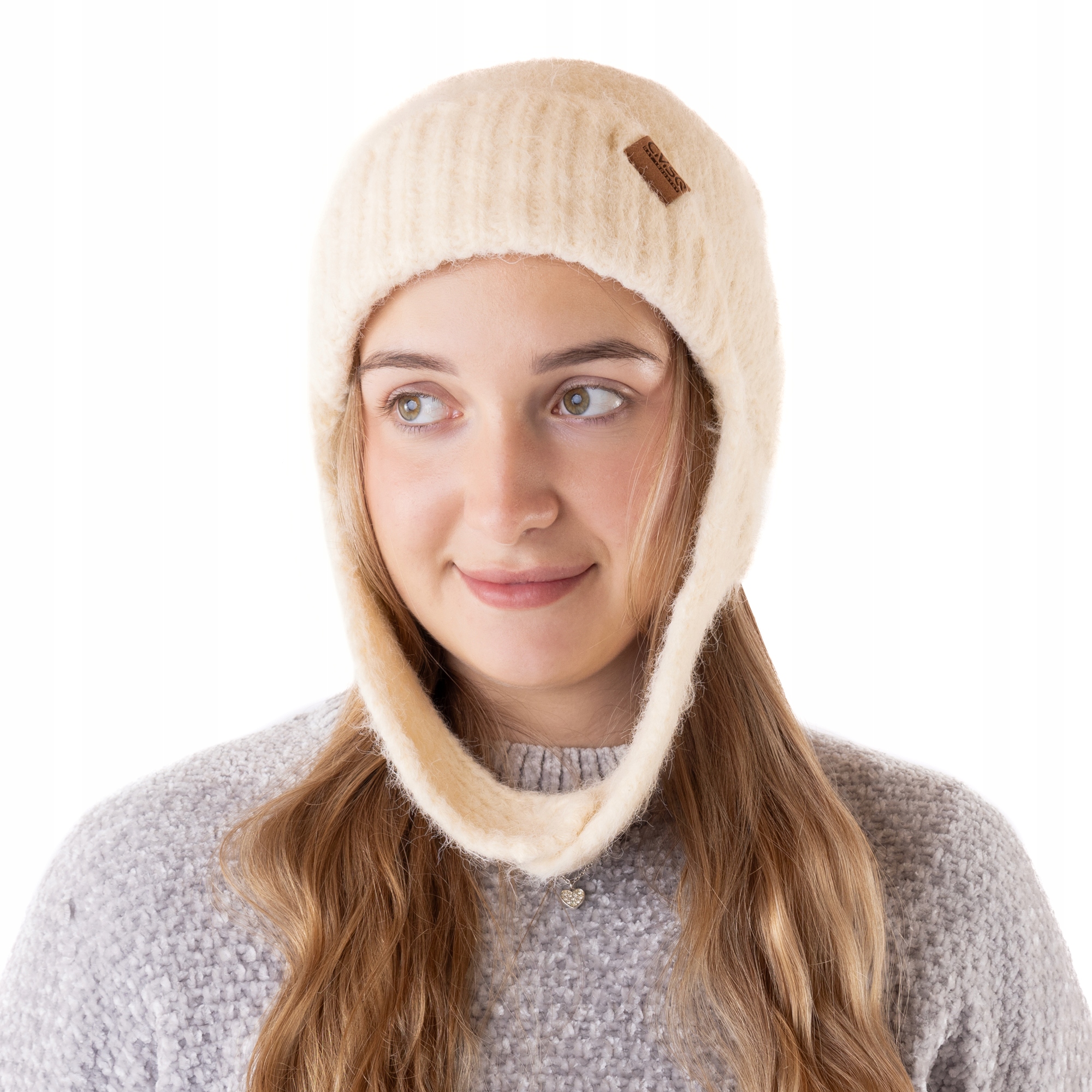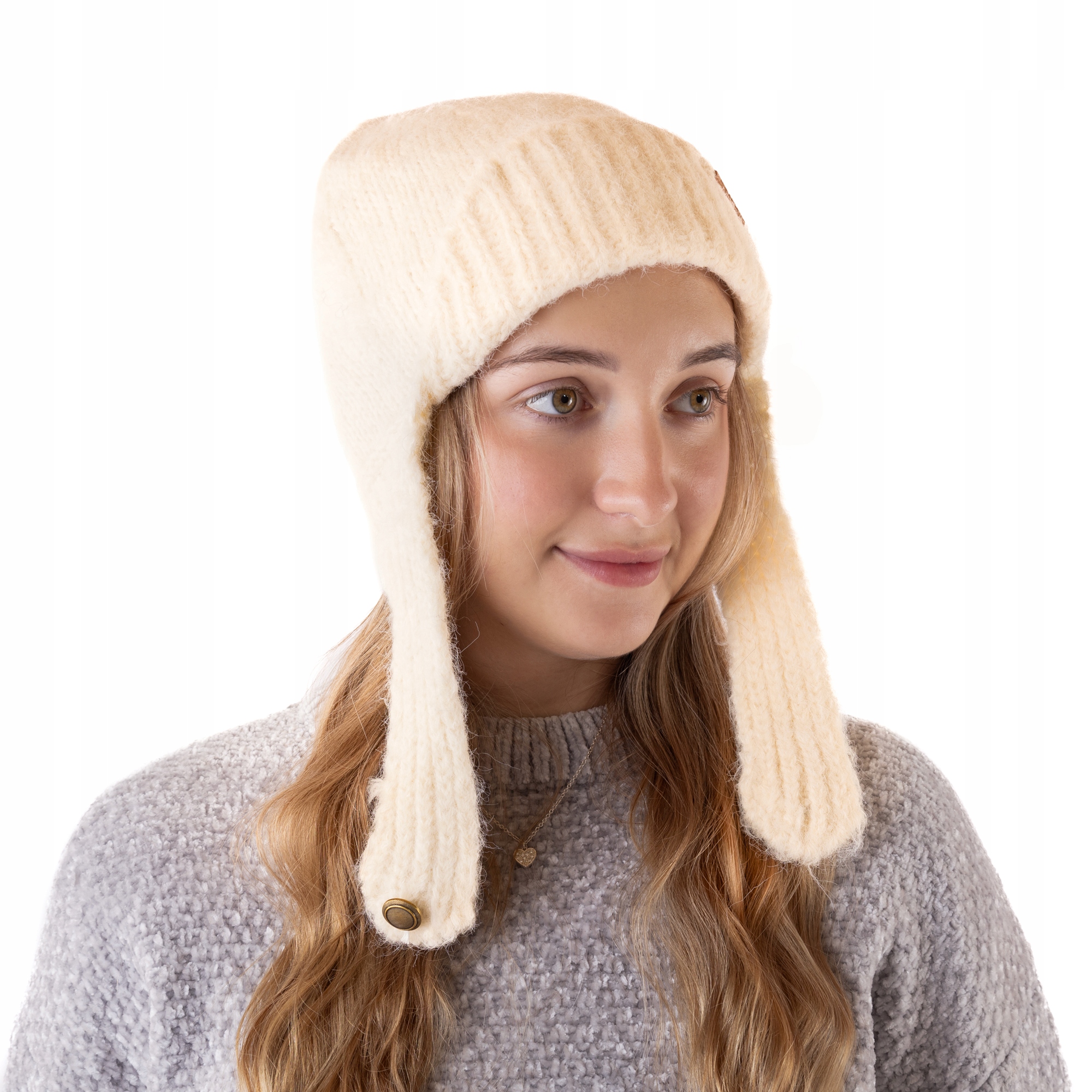 CZAPKA zimowa ciepła uszatka damska ecru