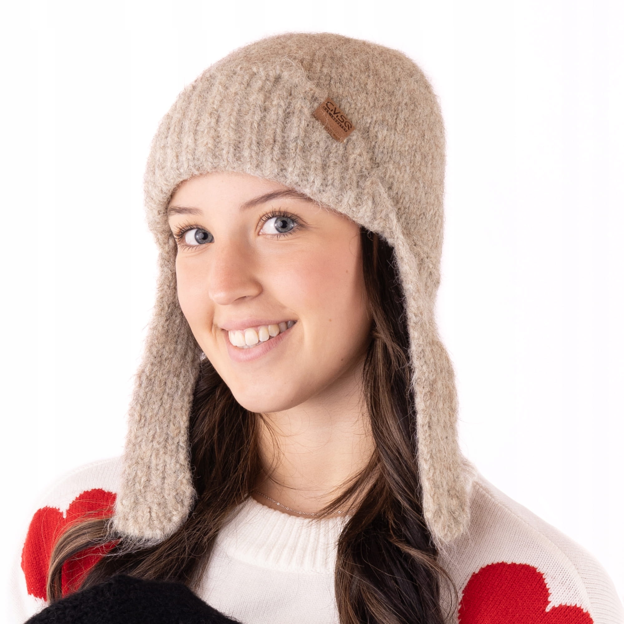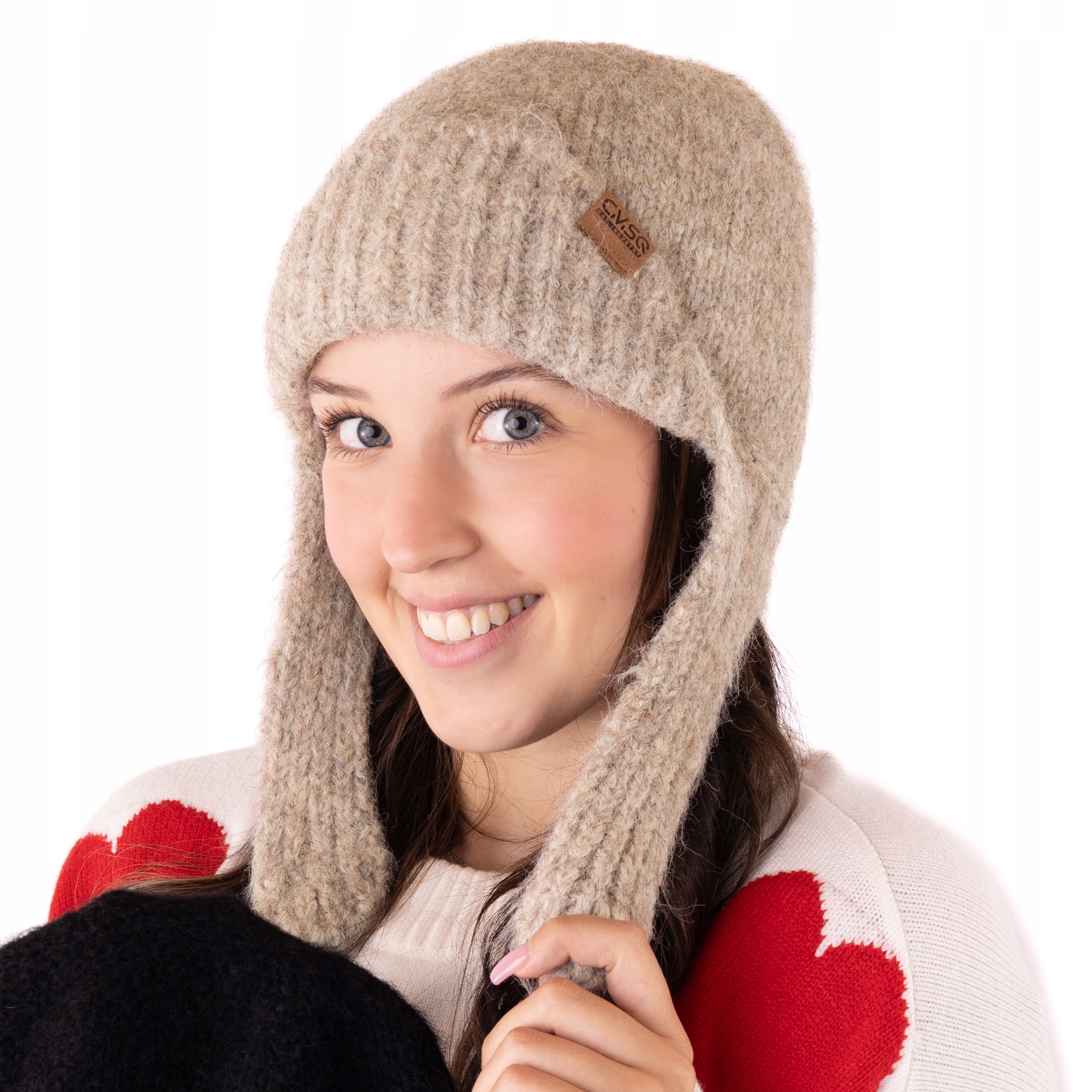 CZAPKA zimowa ciepła uszatka damska jasny brąz cappuccino