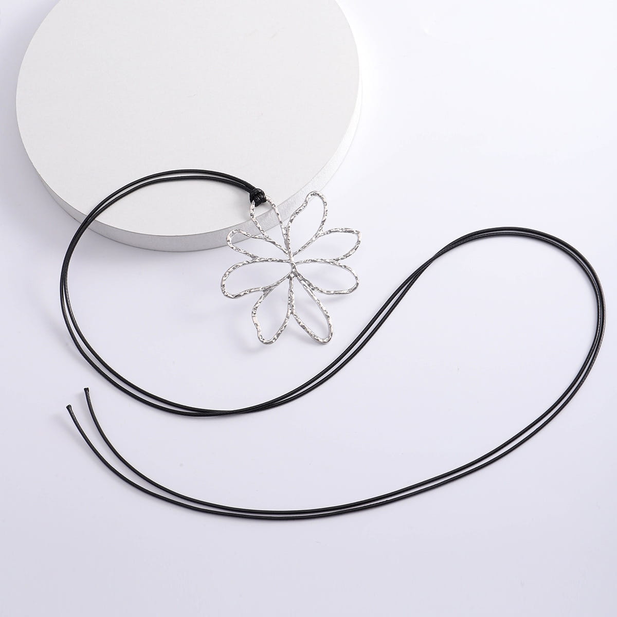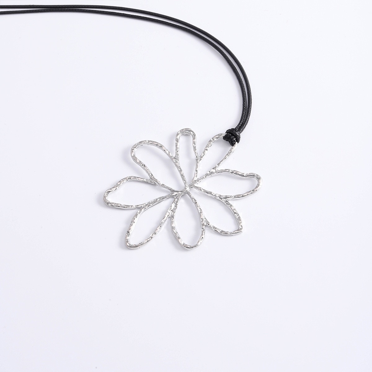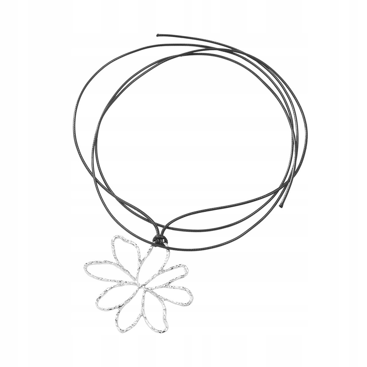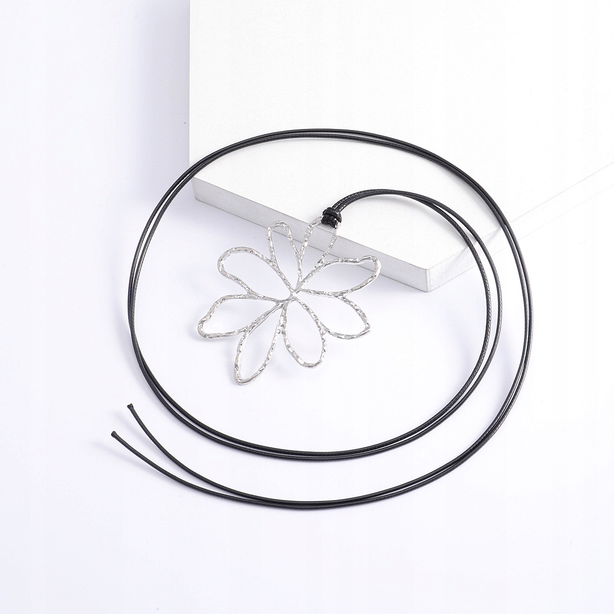 Rzemień w kolorze czarnym z zawieszką w kolorze srebrnym.