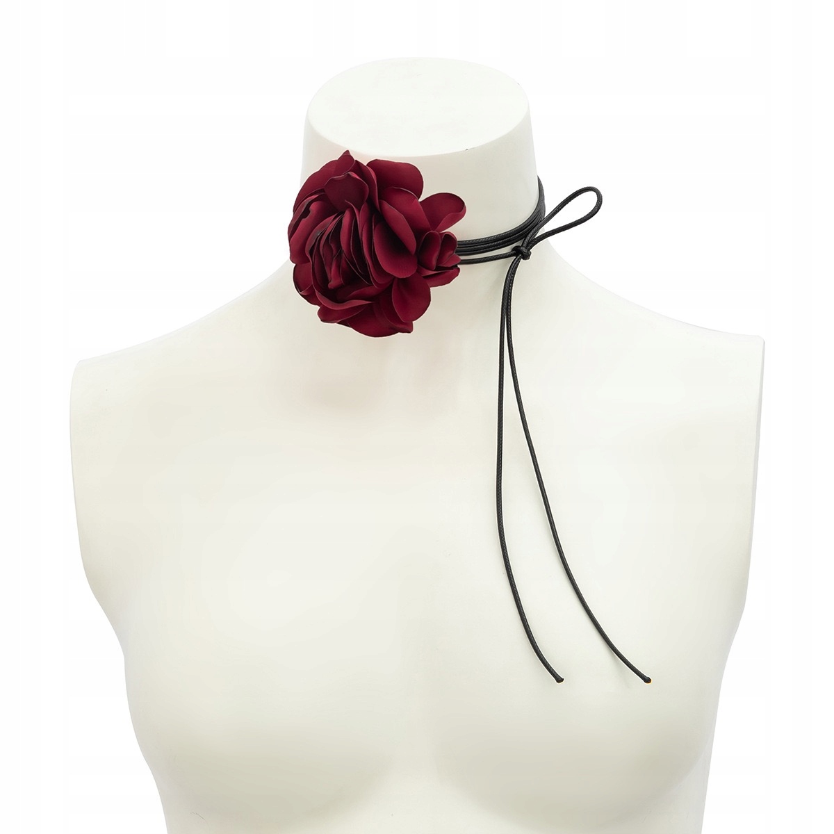 Choker naszyjnik kwiat na rzemieniu róża piwonia na szyję bordowa