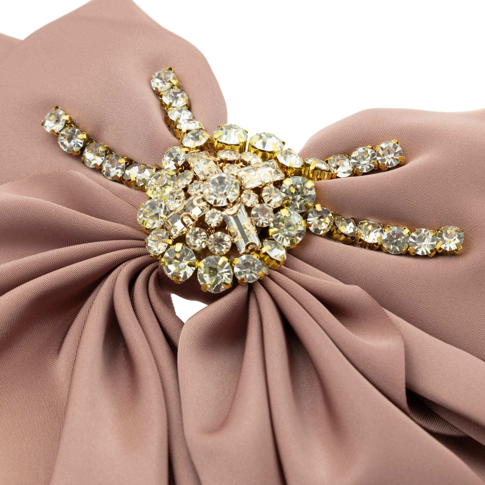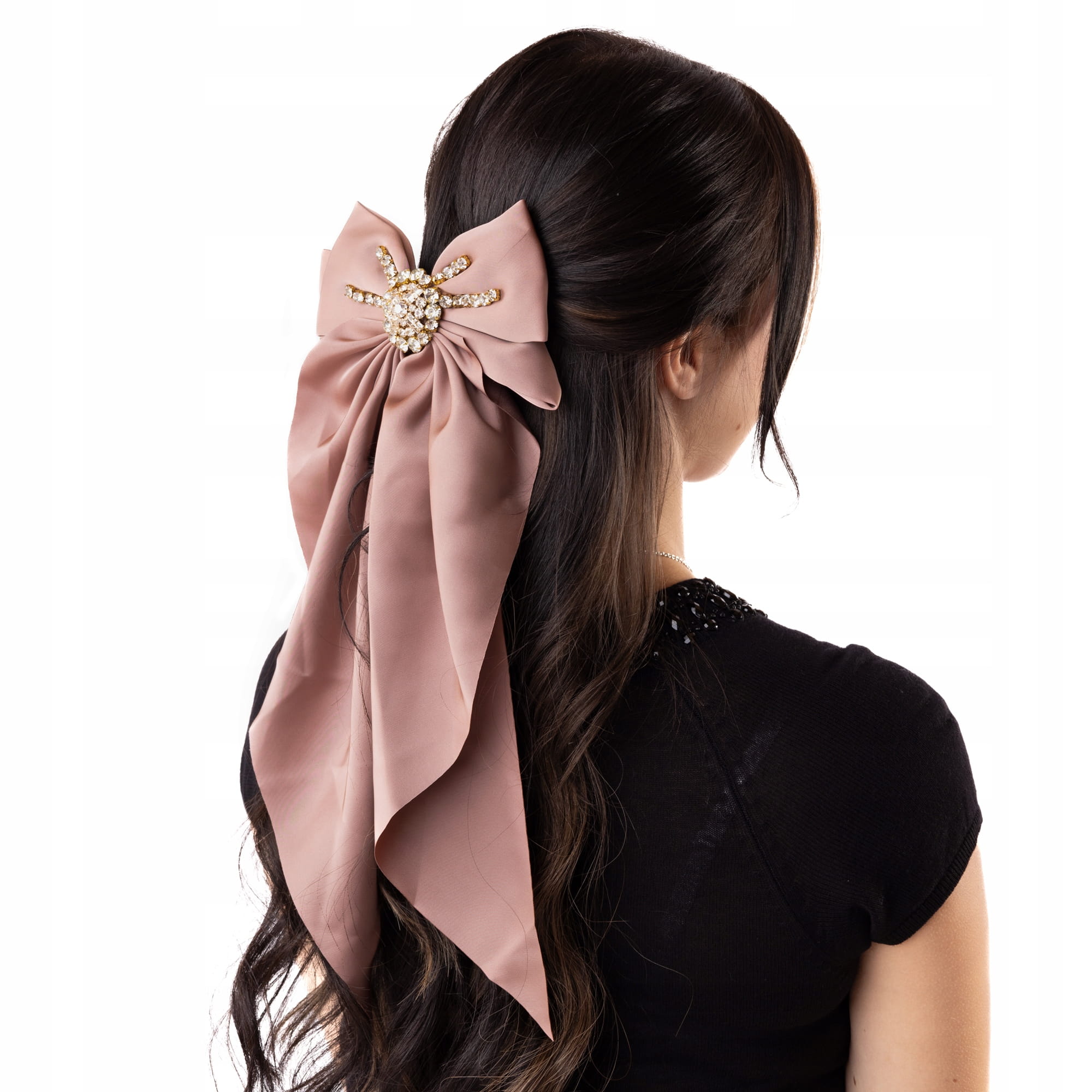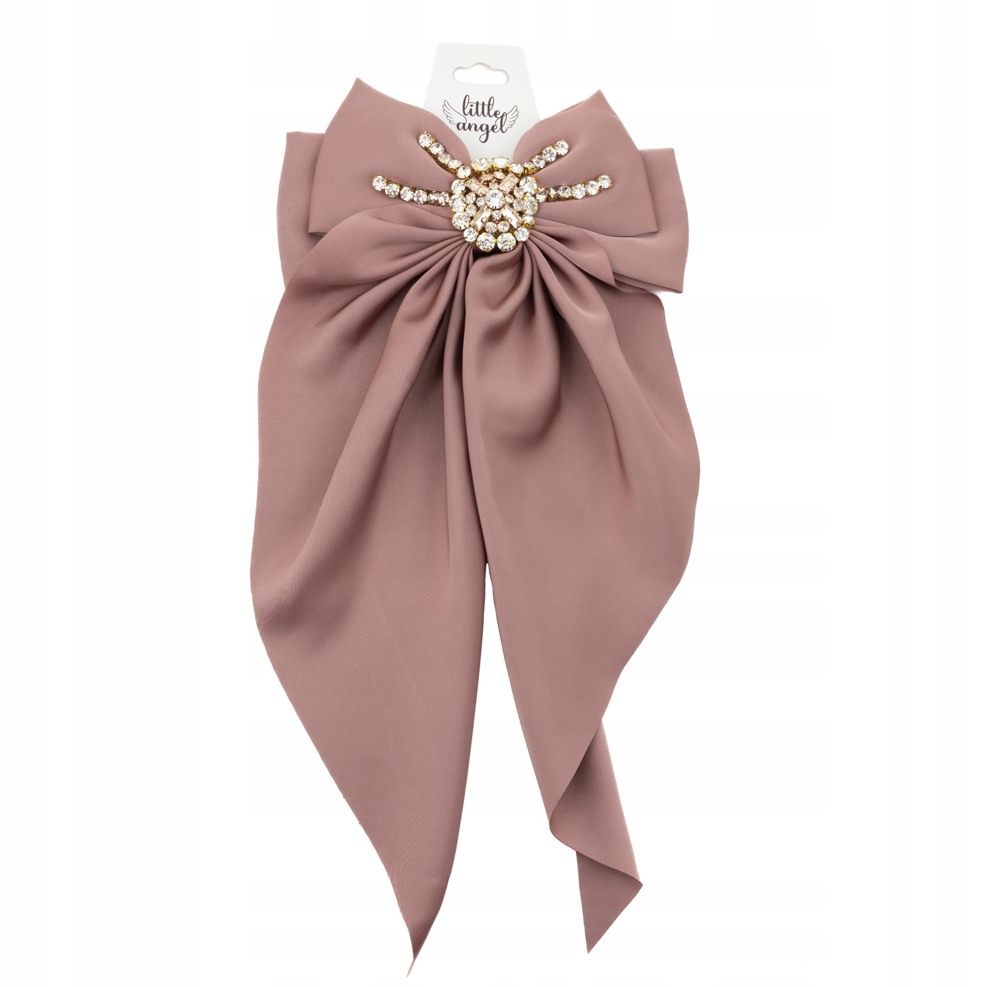 Duża DŁUGA kokarda Satynowa z cyrkoniami Brudny Róż