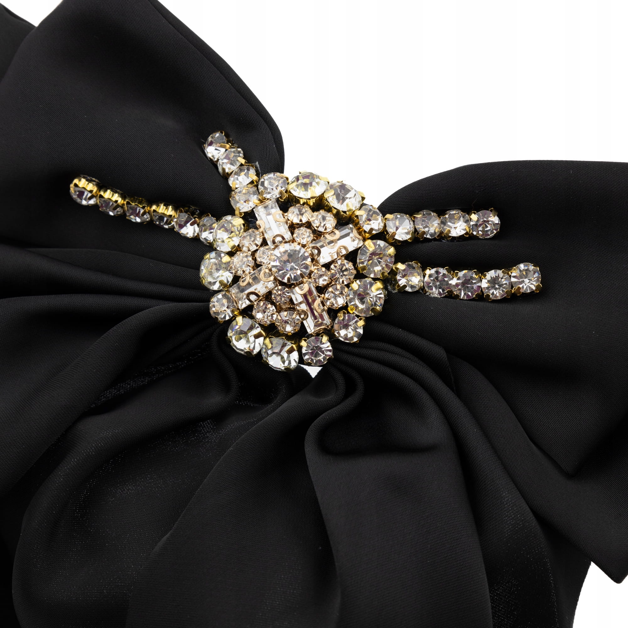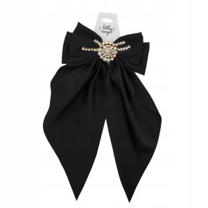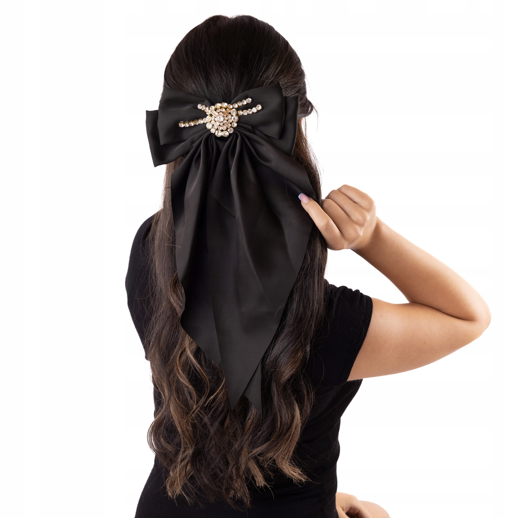 Duża DŁUGA kokarda Satynowa z cyrkoniami Czarna