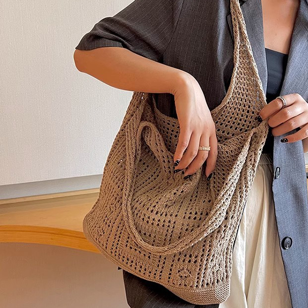 Naturalna elegancja w stylu boho! Ta wyjątkowa torba dziergana w kolorze ciepłego brązu to idealny wybór dla osób ceniących styl, wygodę i oryginalność. Wykonana z miękkiej, a zarazem wytrzymałej przędzy, świetnie sprawdzi się zarówno na zakupy, plażę, jak i na co dzień jako dodatek do letnich stylizacji.
