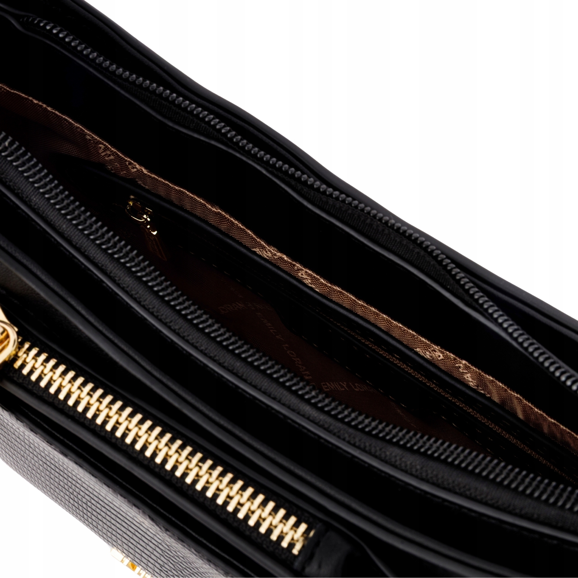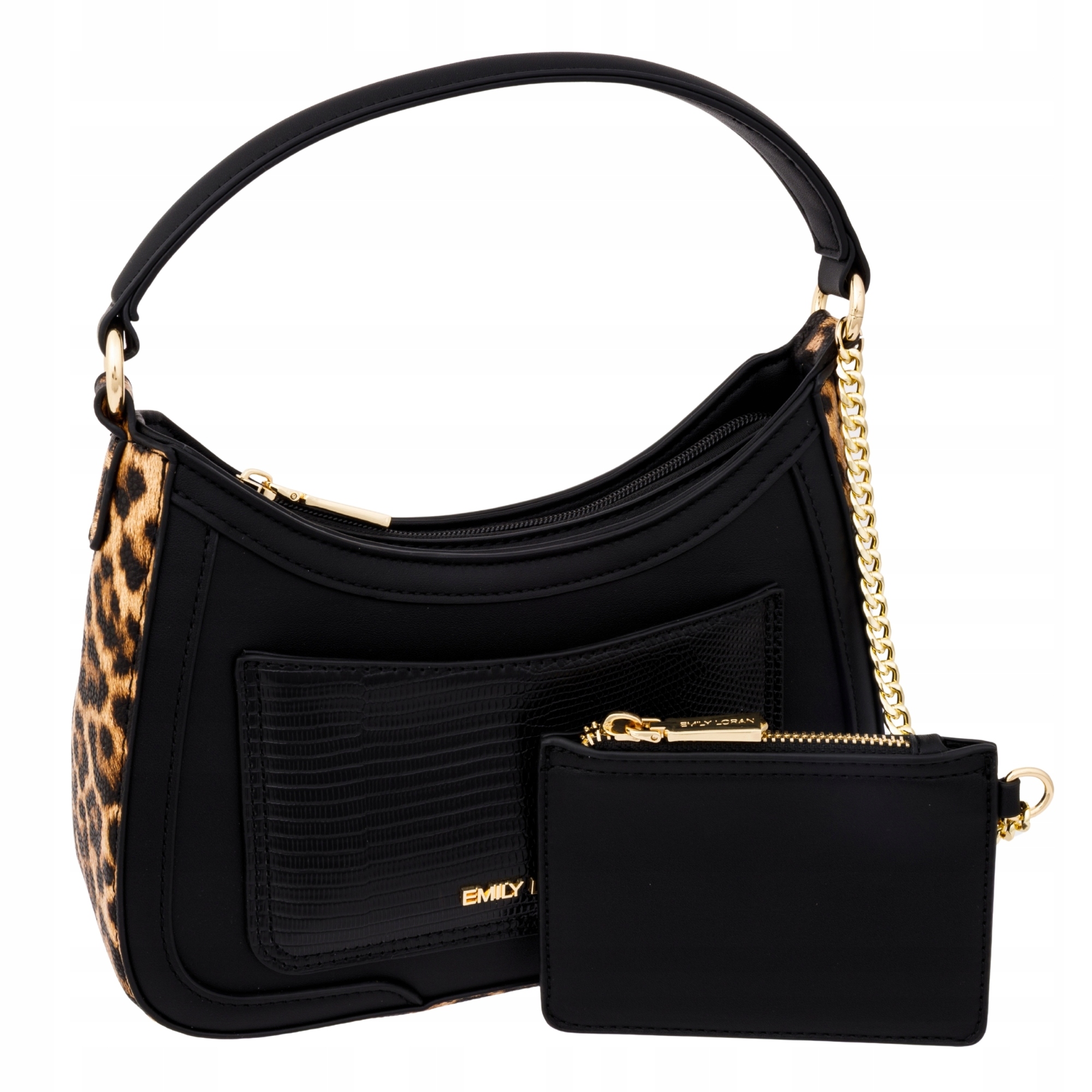 Ekskluzywna czarna torebka damska Emily Loran z panterką i portmonetką