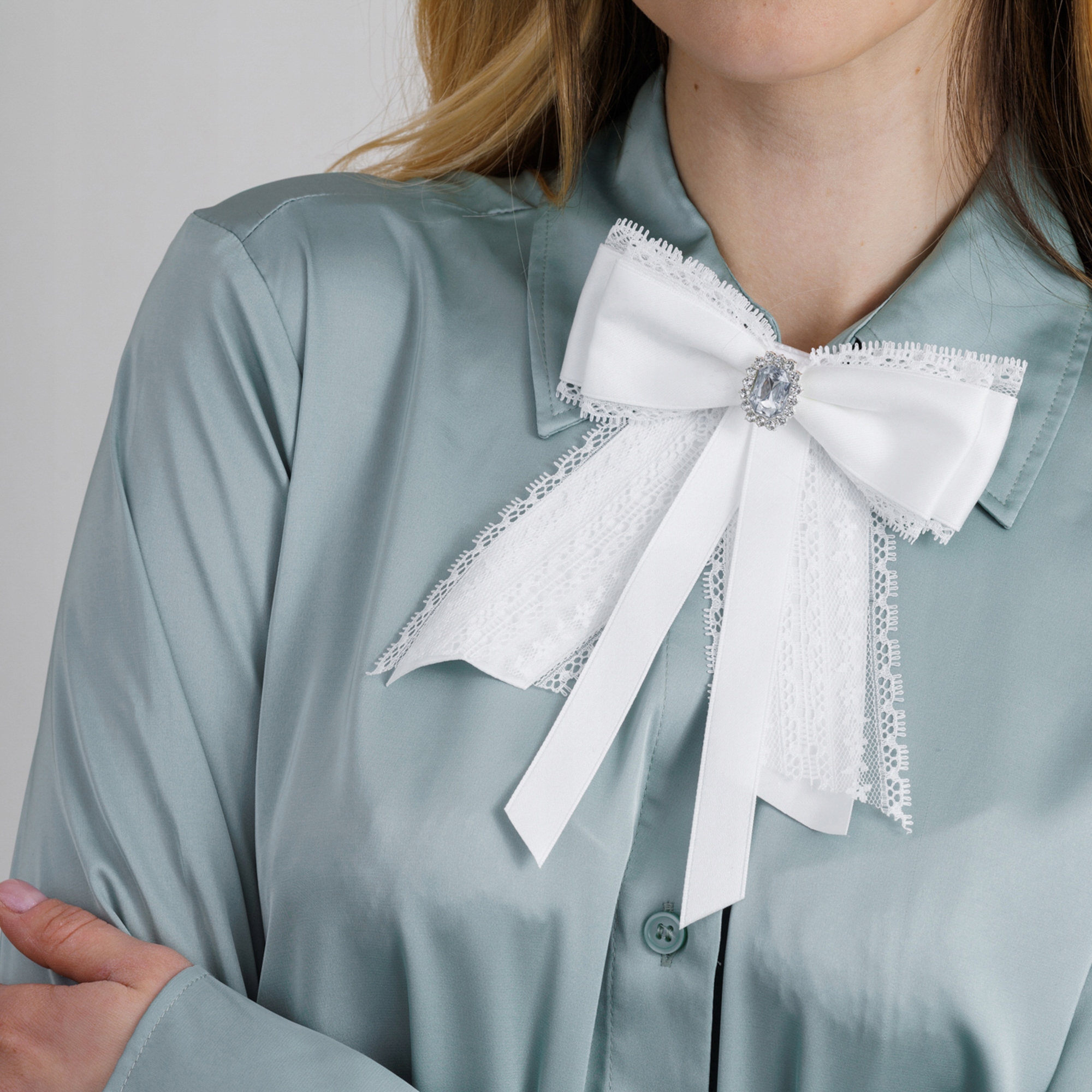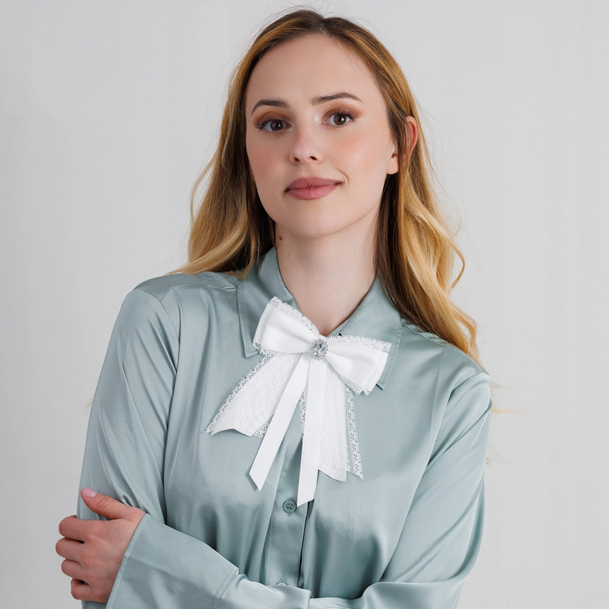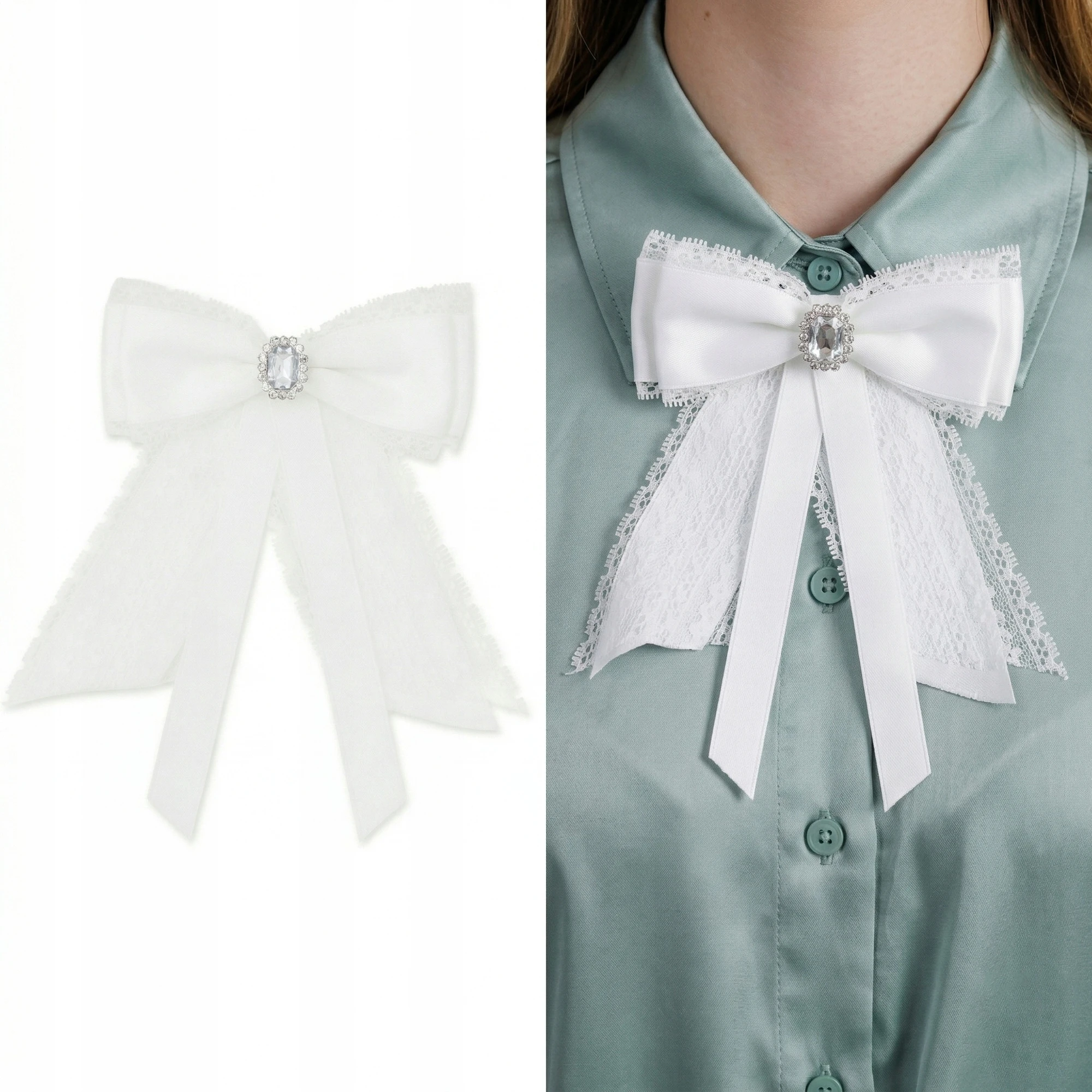 Elegancka Kokarda Damska z Koronką Biała Broszka Vintage Styl Prezent
