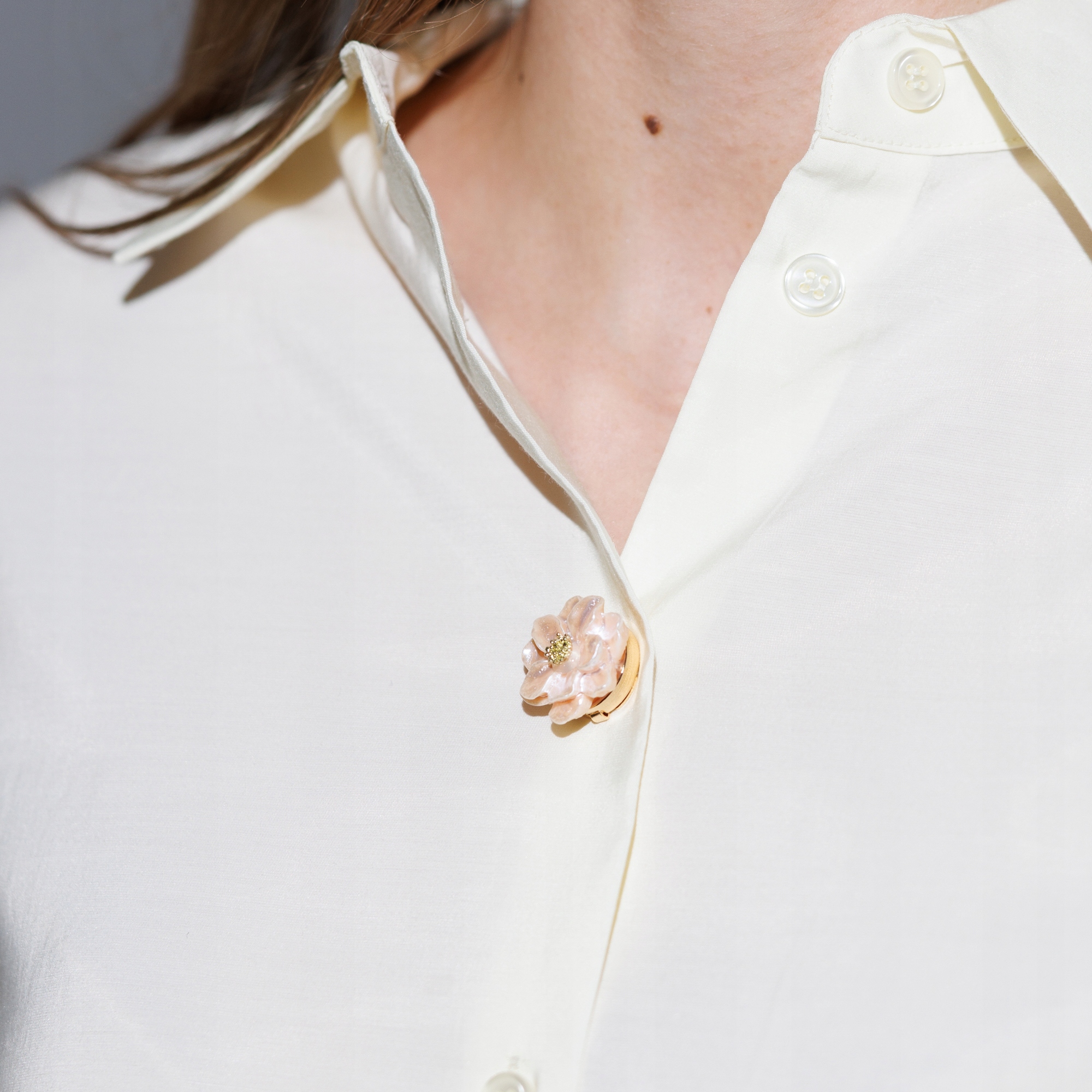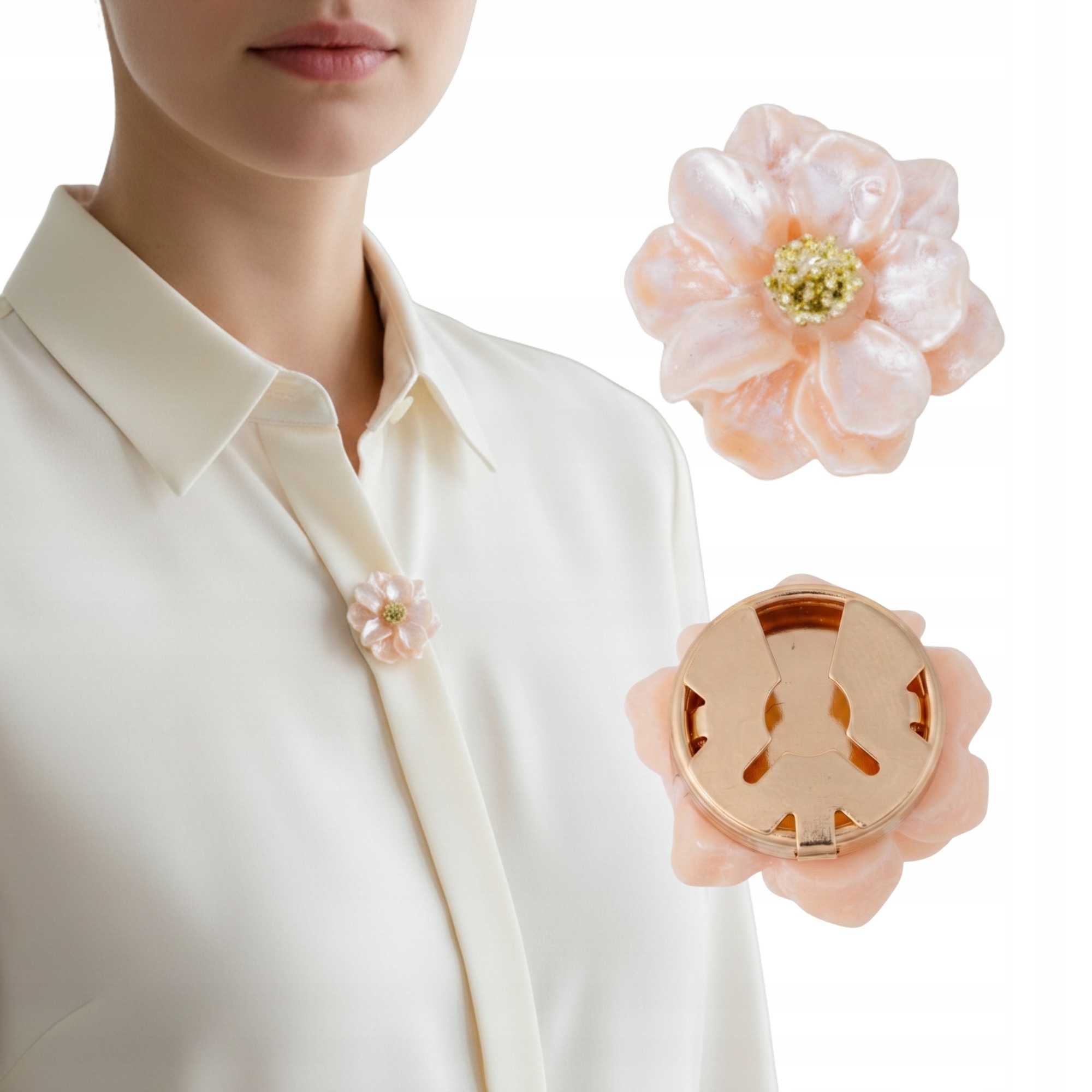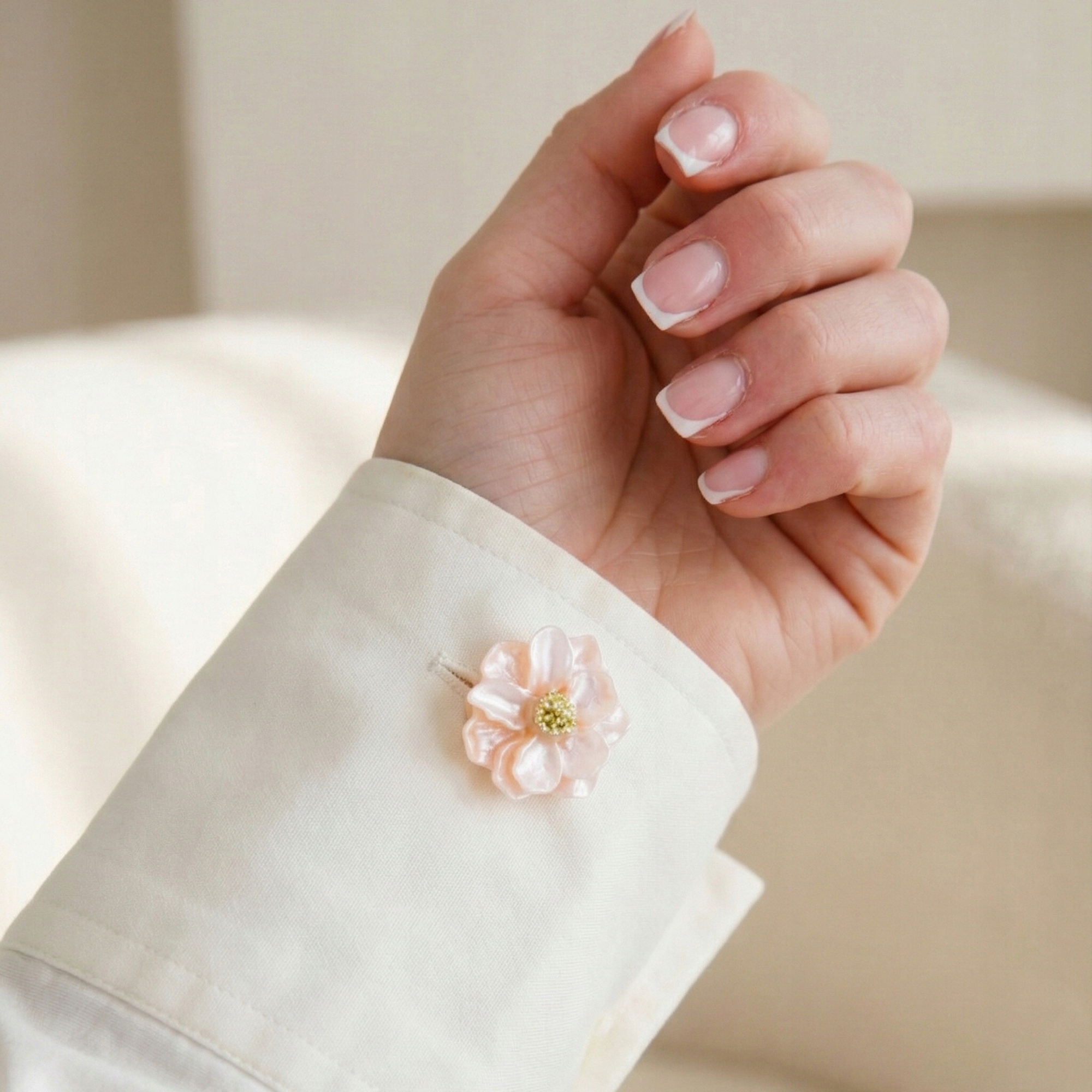 Stylowy detal, który zmienia zwykłą koszulę w elegancką stylizację. Ozdobna nakładka na guzik w kształcie delikatnego kwiatu w pastelowym różu to subtelny, ale efektowny dodatek do koszul, bluzek i mankietów.