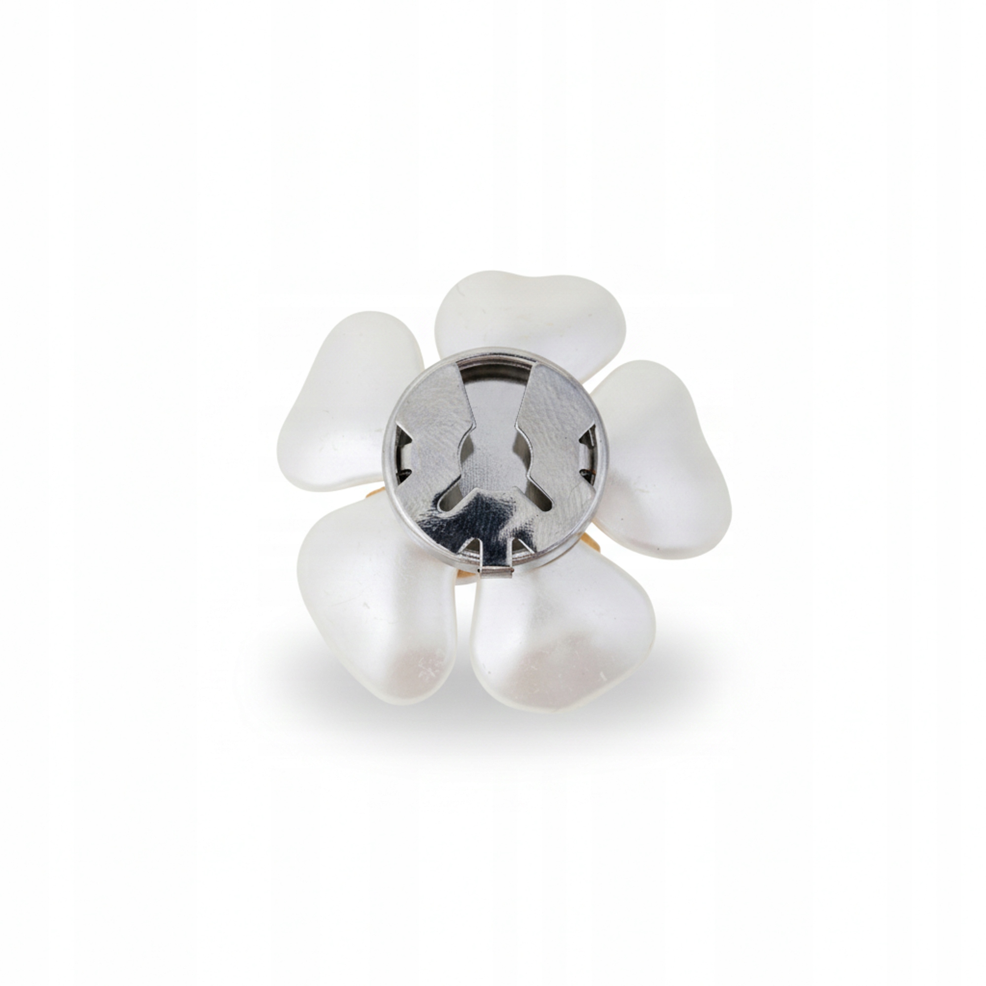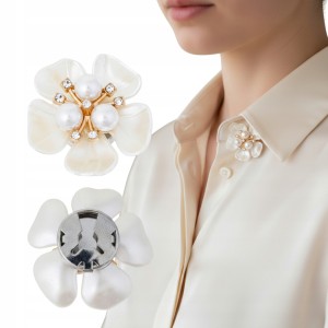 Wyjątkowa ozdoba, która zamienia zwykłą koszulę w stylową, elegancką stylizację. Nakładka na guzik w kształcie kwiatu z perłami i subtelnymi kryształkami tworzy biżuteryjny efekt – bez szycia i bez uszkadzania tkaniny.