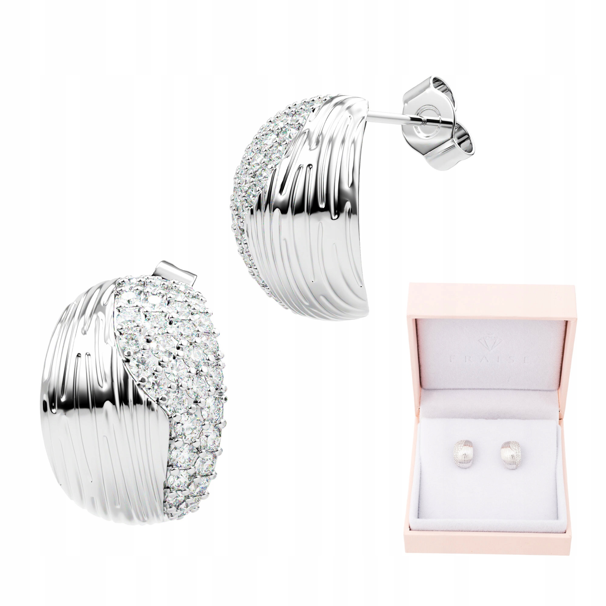 Eleganckie kolczyki srebro 925 Półkola Cyrkonie Luksusowy połysk FRAISE