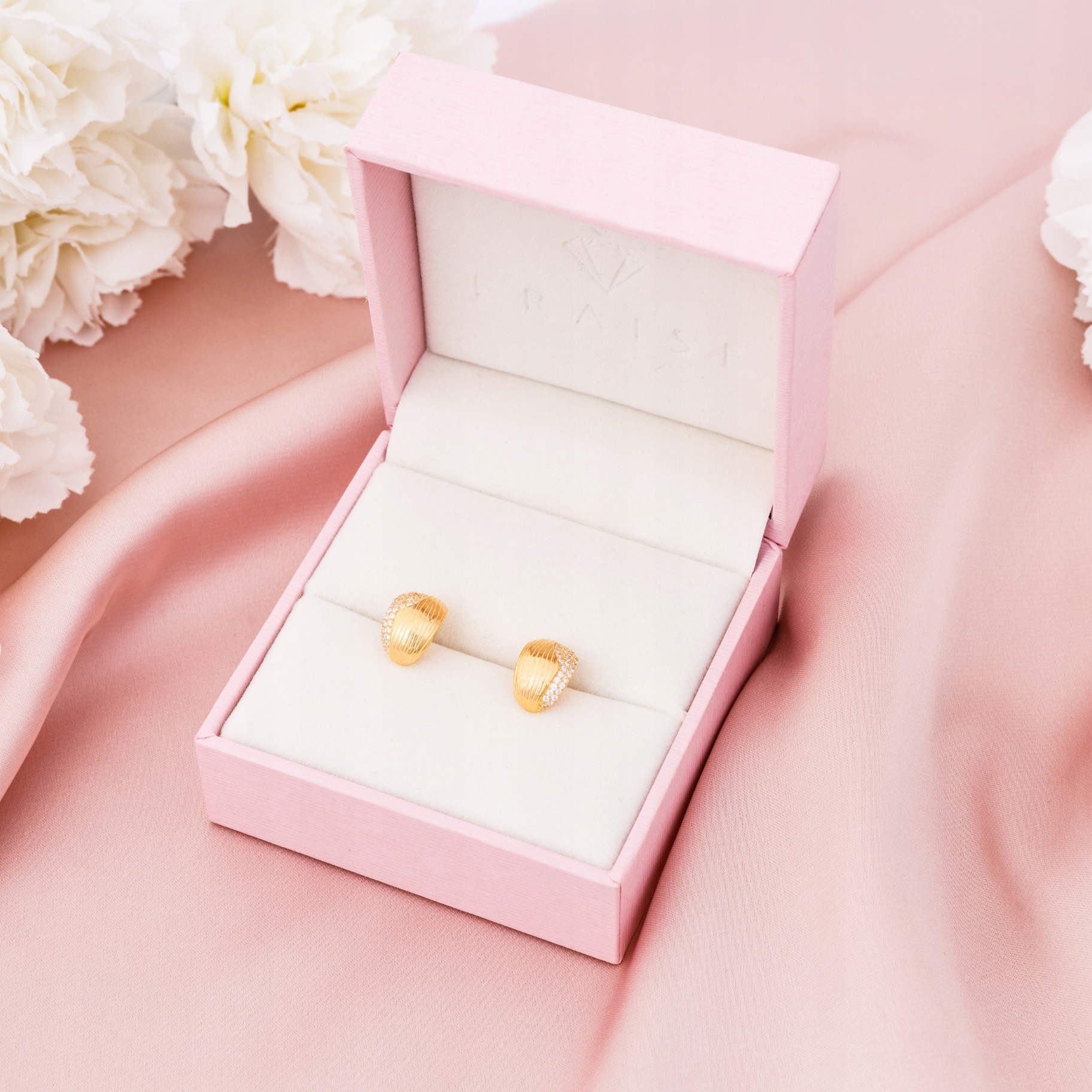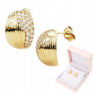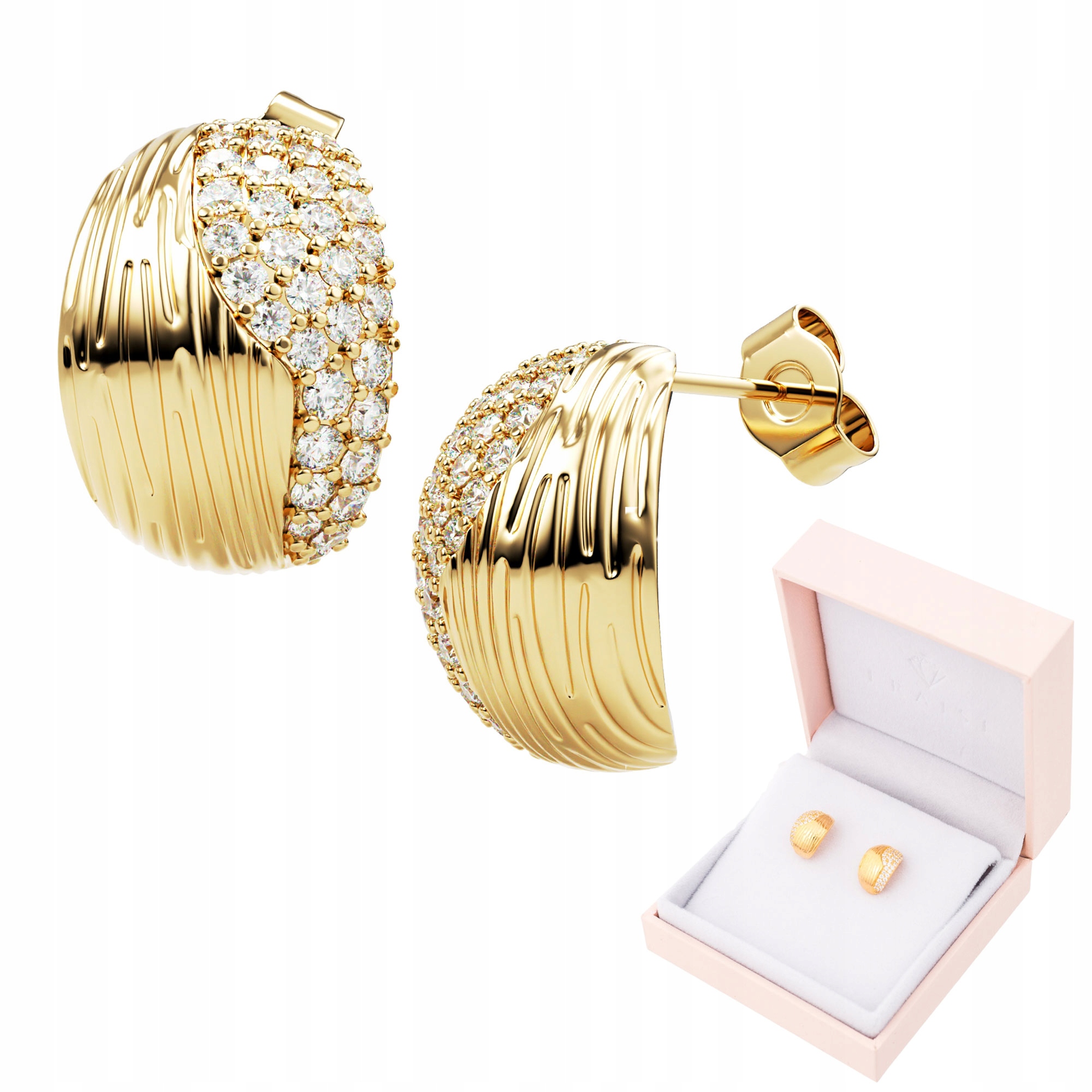 Pozłacane kolczyki srebro 925 • Półkola • Cyrkonie • Luksusowy design FRAISE