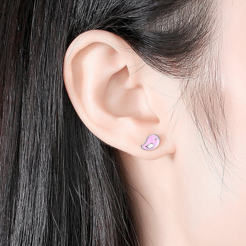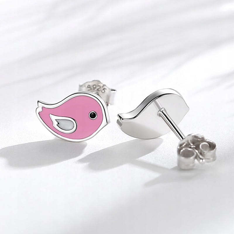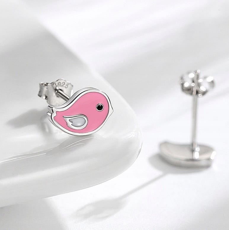 Fraise kolczyki Ptaszki różowe Srebro S925