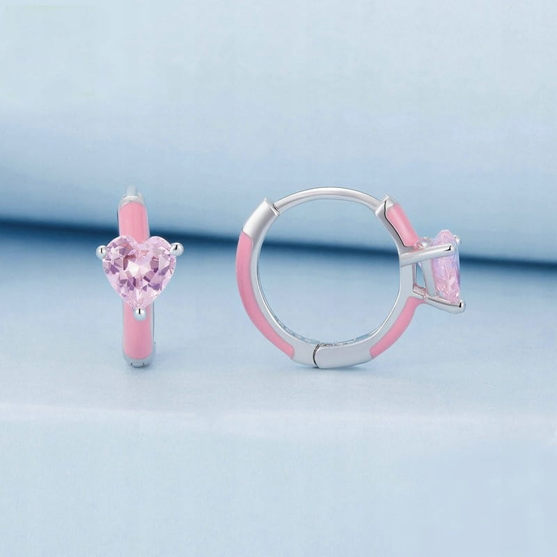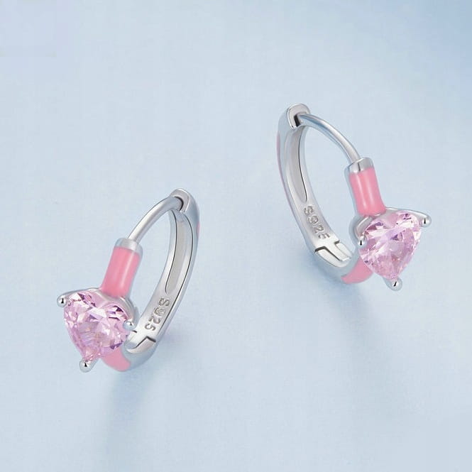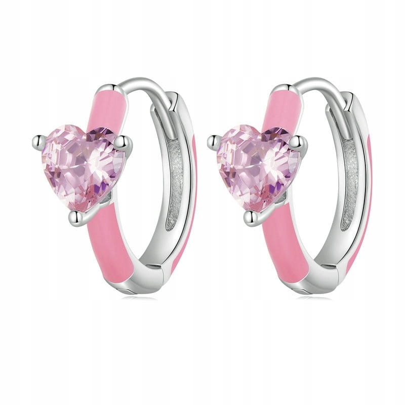Fraise kolczyki różowe srebrne S925 serduszka z cyrkonią