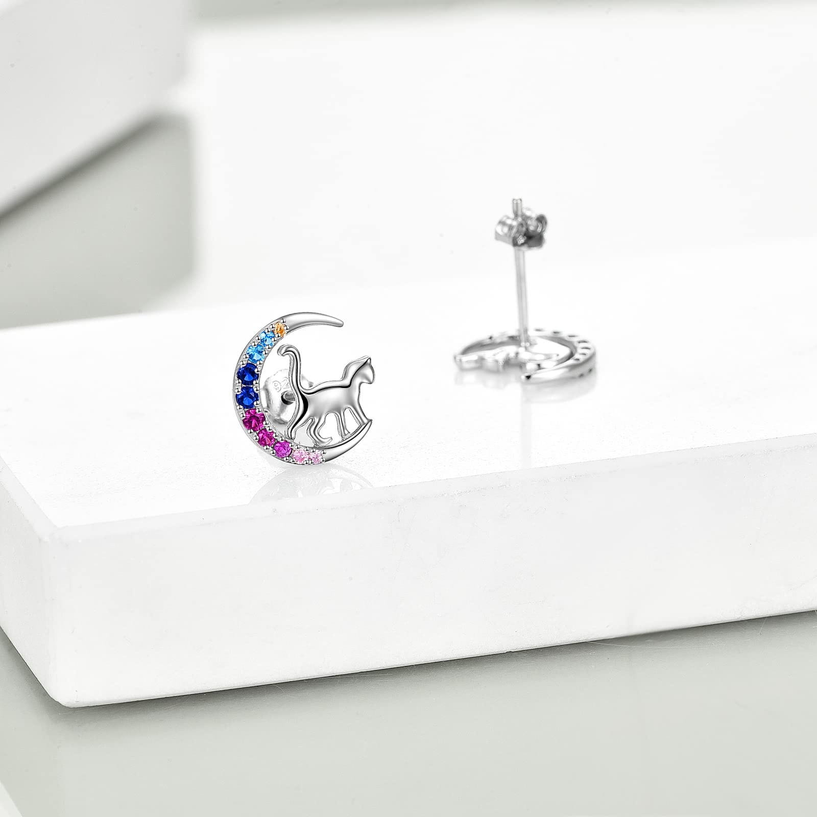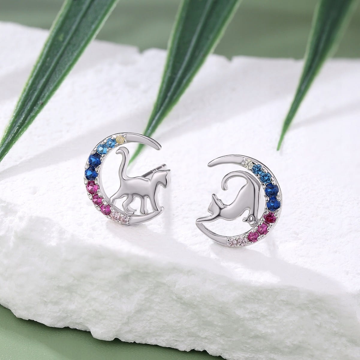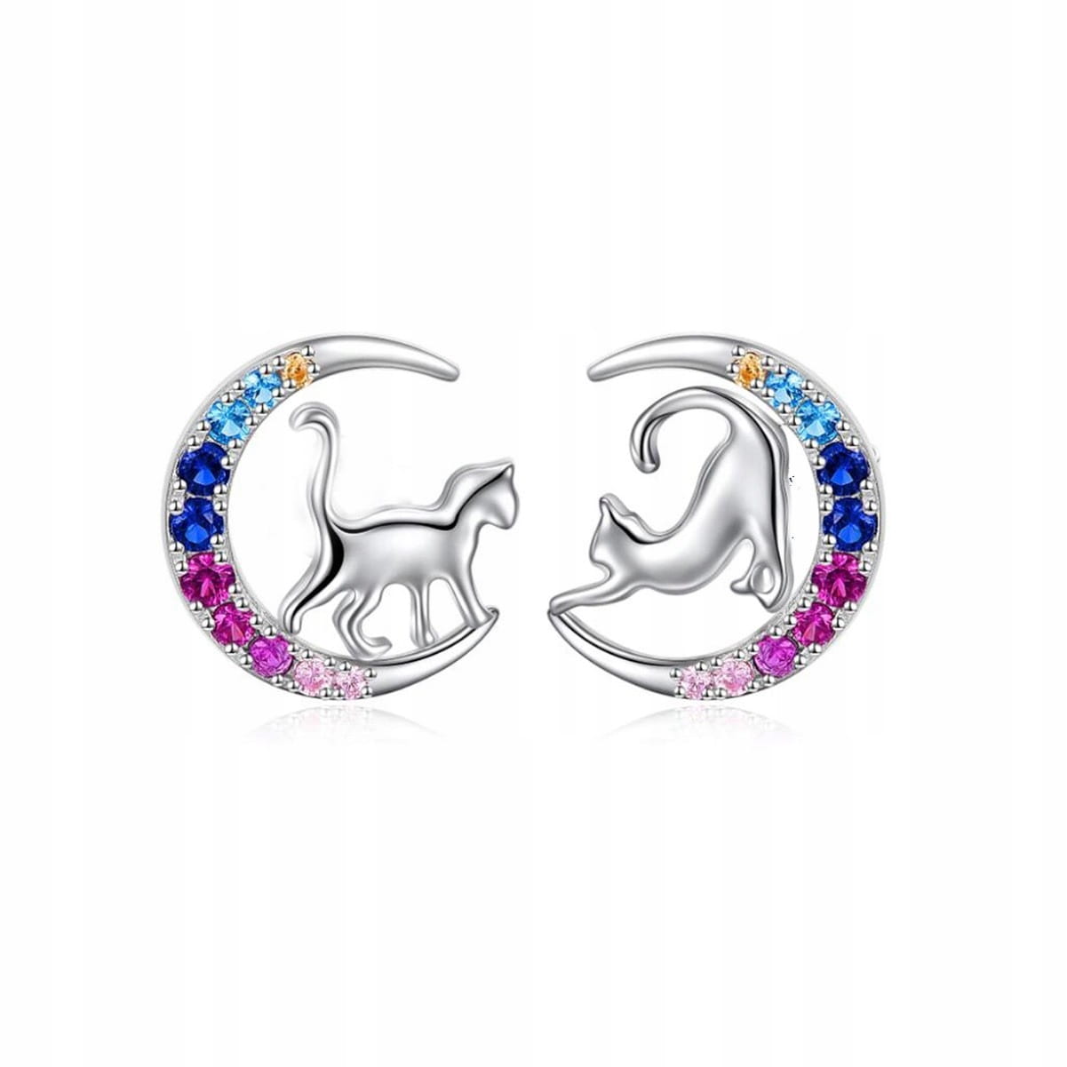 Piękne kolczyki przedstawiające Kota na księżycu srebro próby 925, wysadzane kolorowymi cyrkoniami.