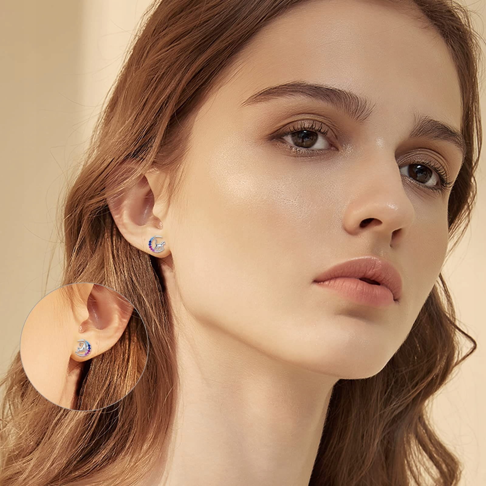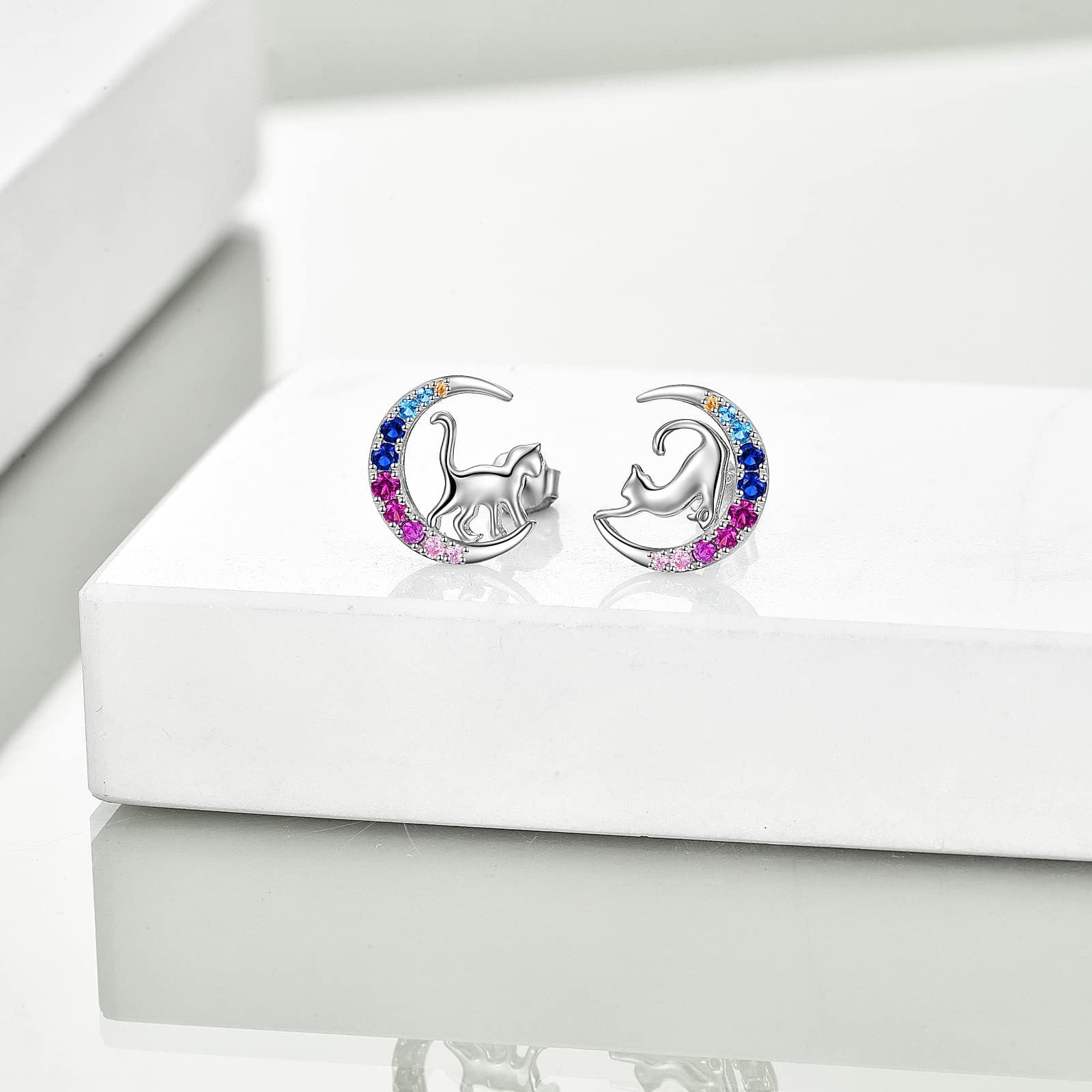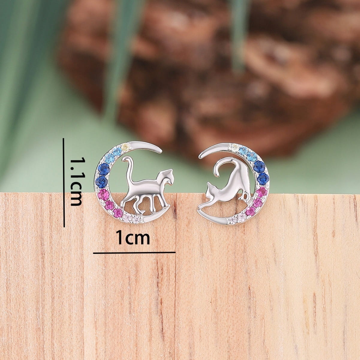 Fraise kolczyki srebrne Kot na księżycu S925 z kolorowymi cyrkoniami