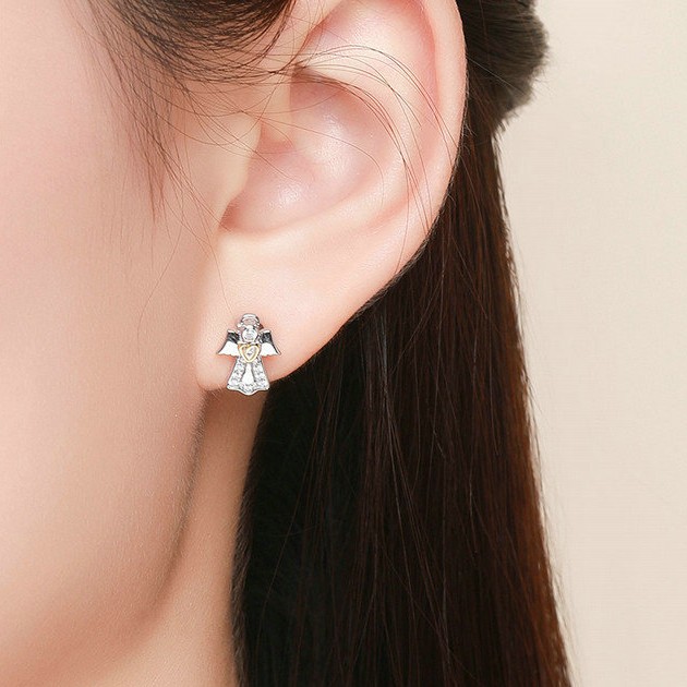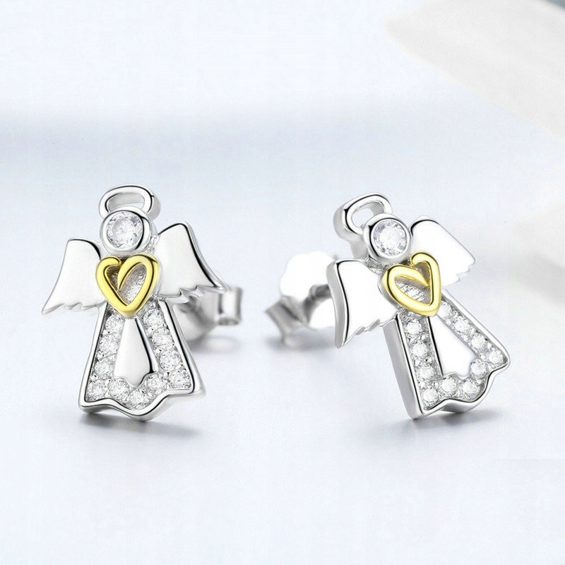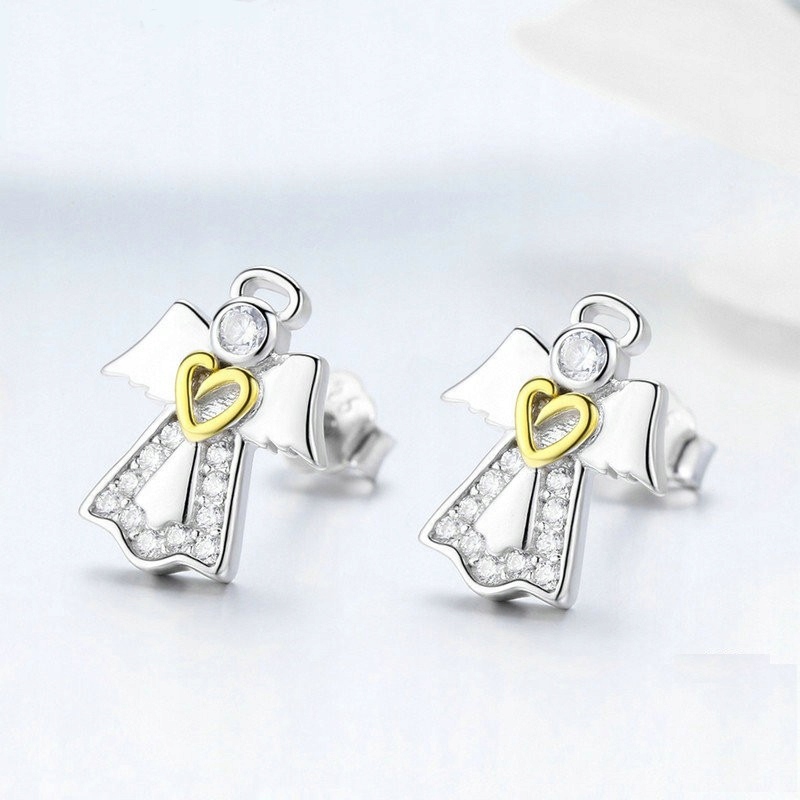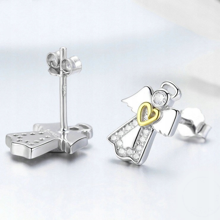 Fraise kolczyki srebrne S925 Aniołki z serduszkiem
