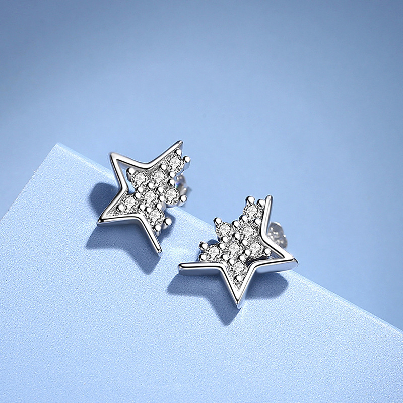 Fraise kolczyki srebrne S925 Gwiazdki z cyrkoniami